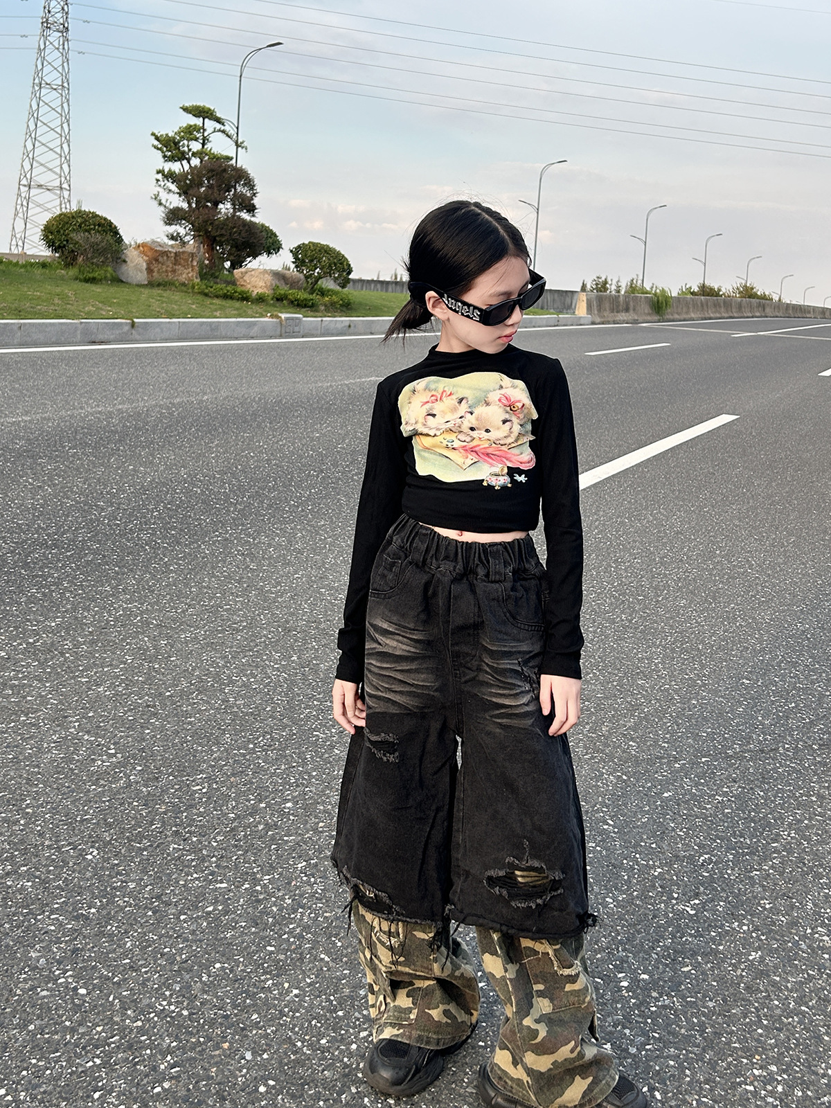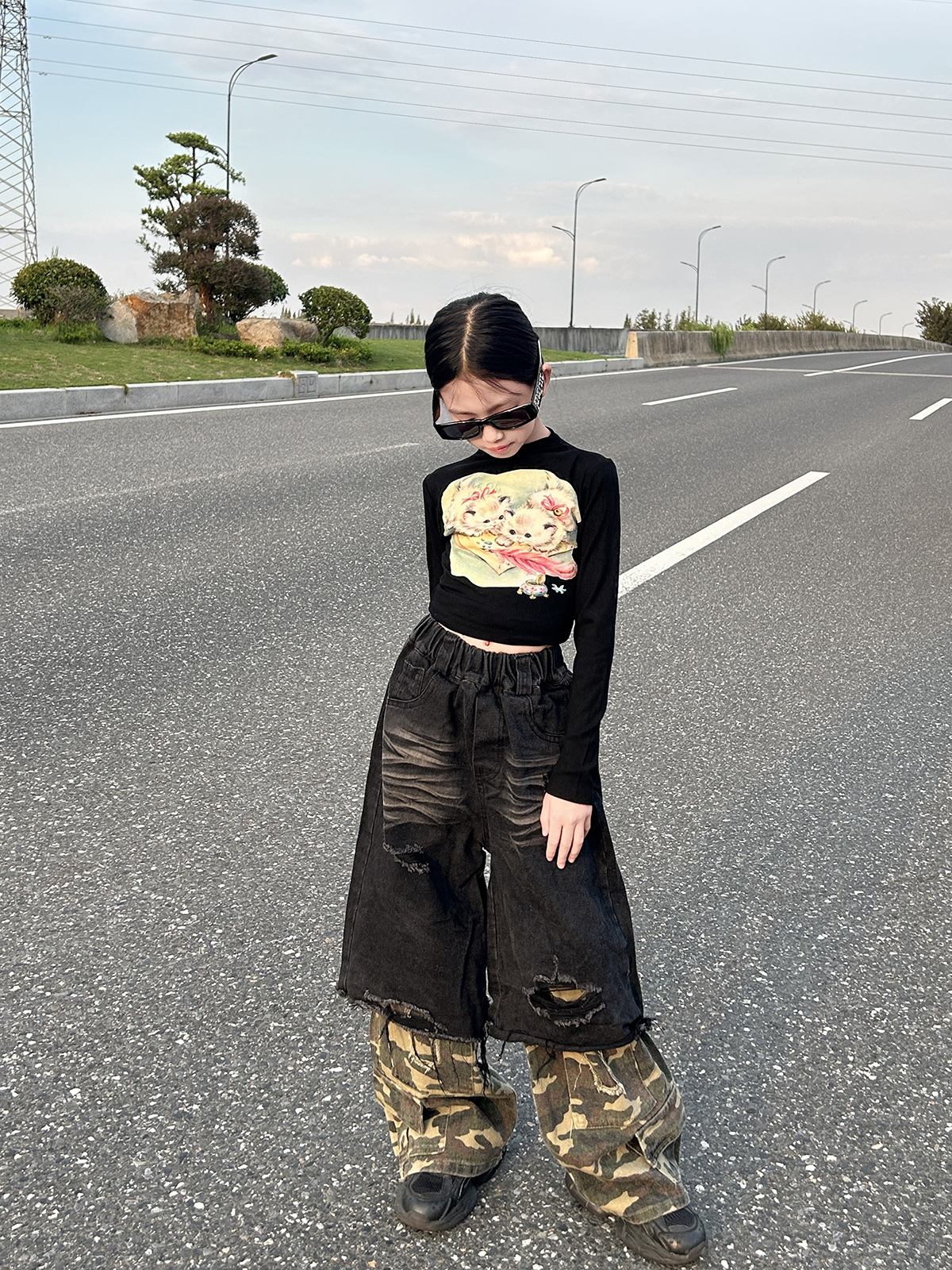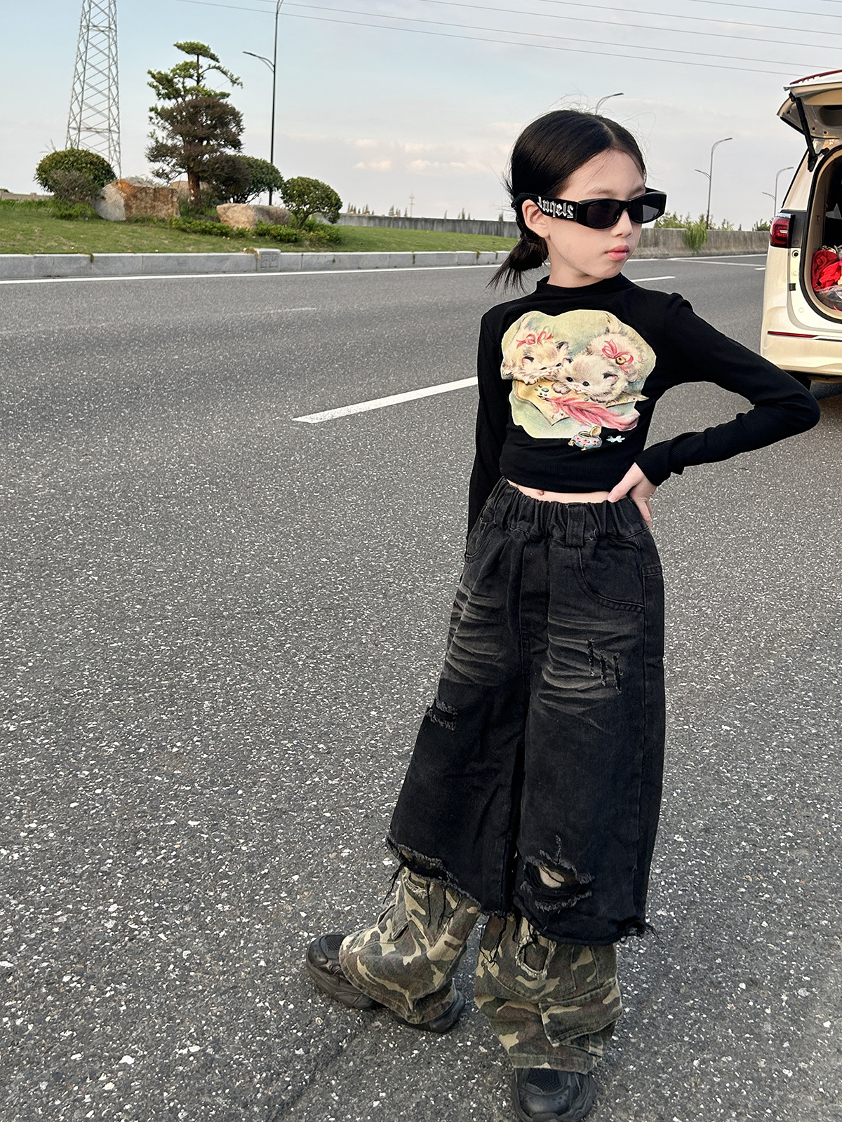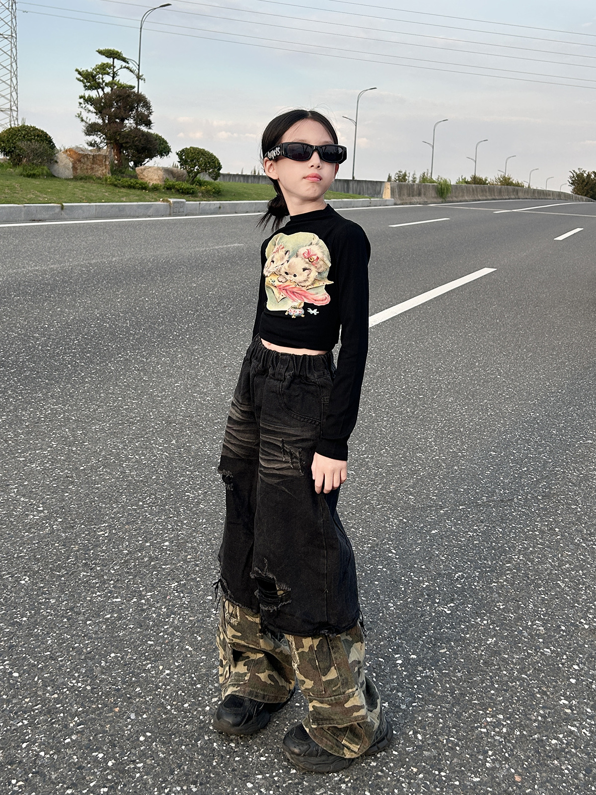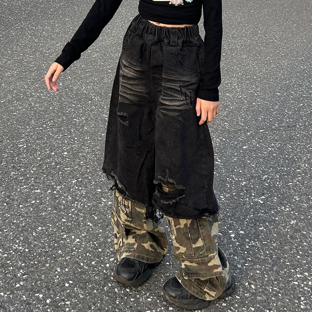 여자 중공업 데님 접합 가을 바지 여자 위장 어린이 가을 다목적 중대형 어린이 긴 바지스토어 가기