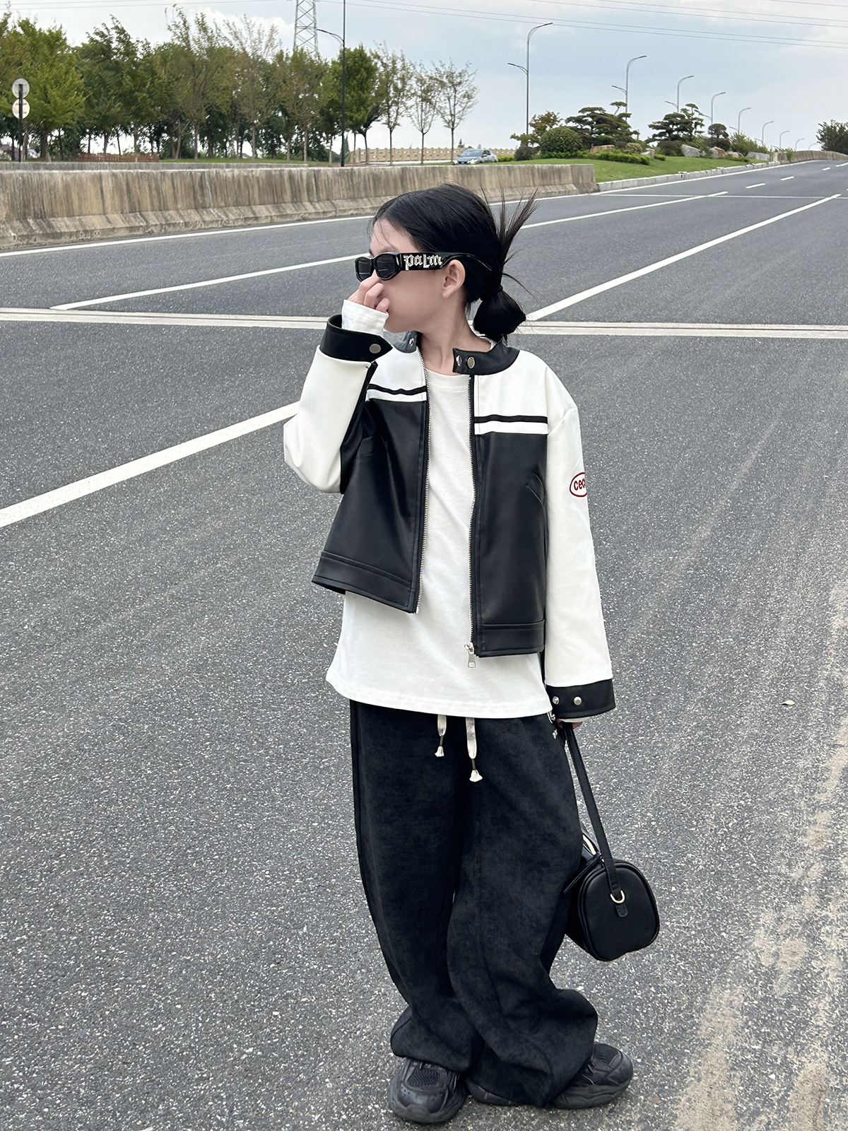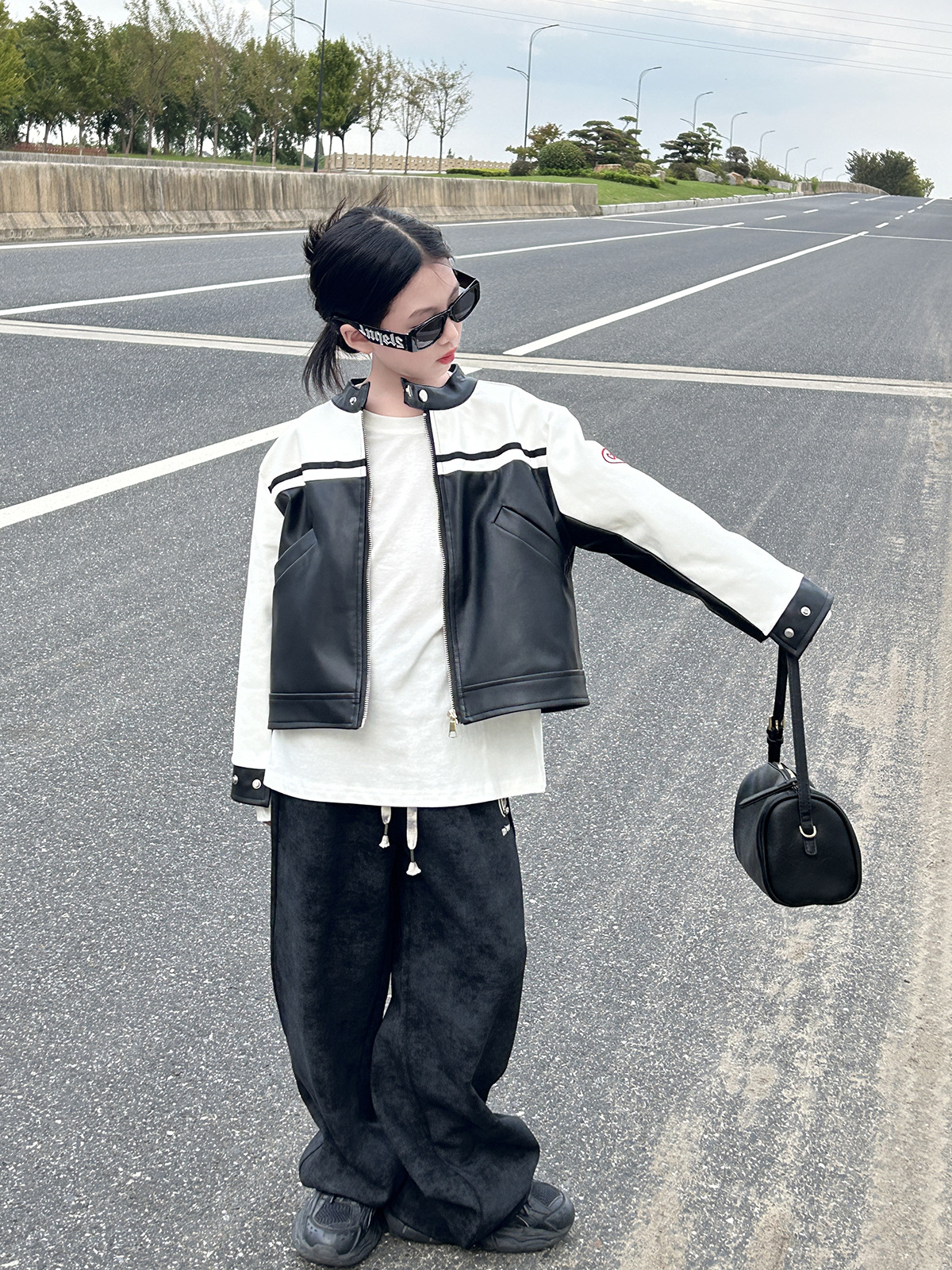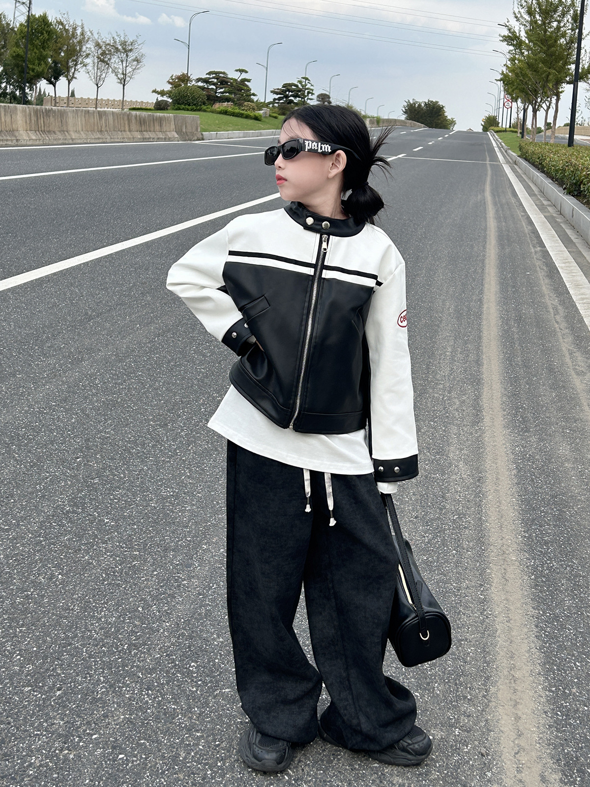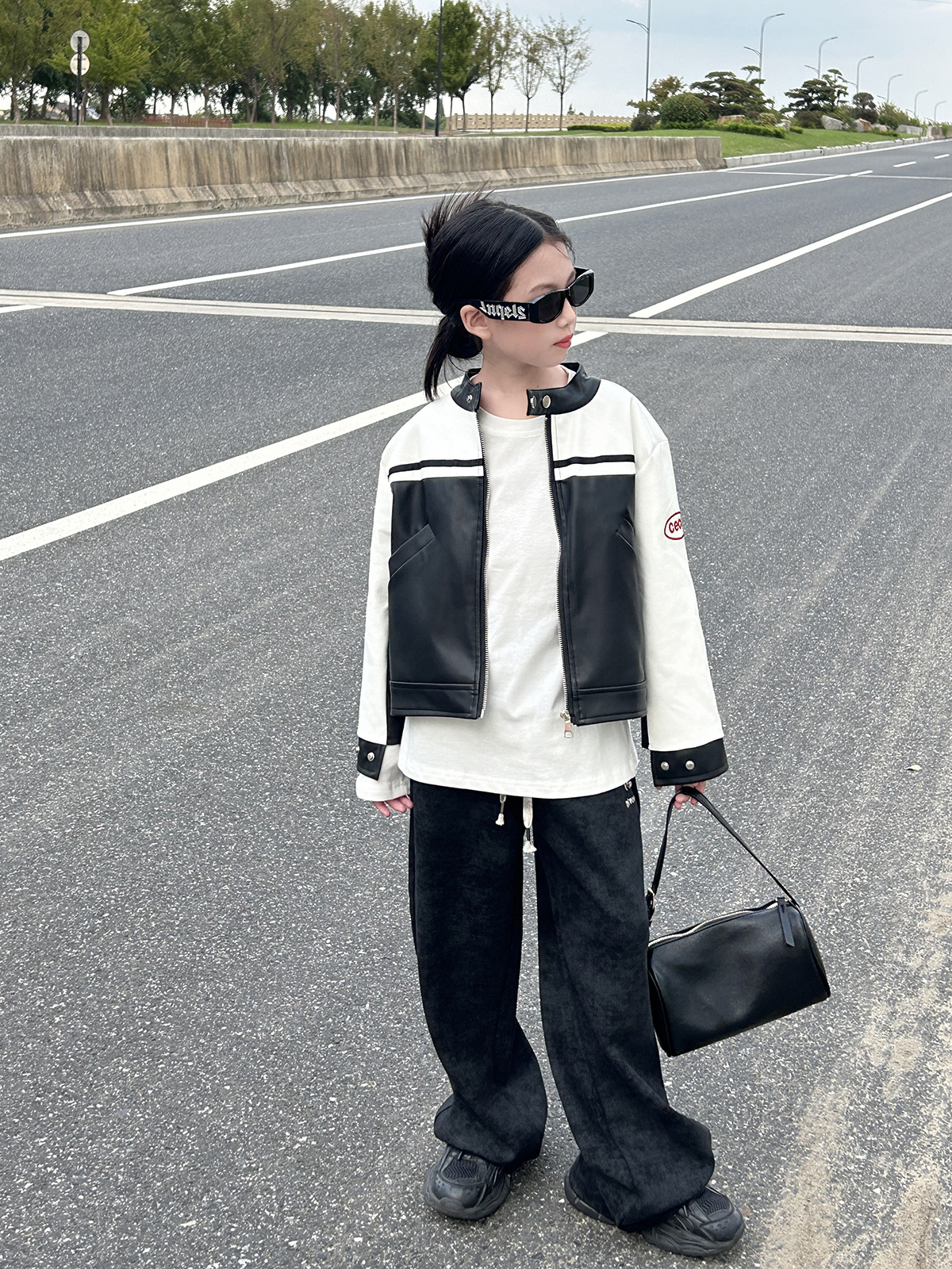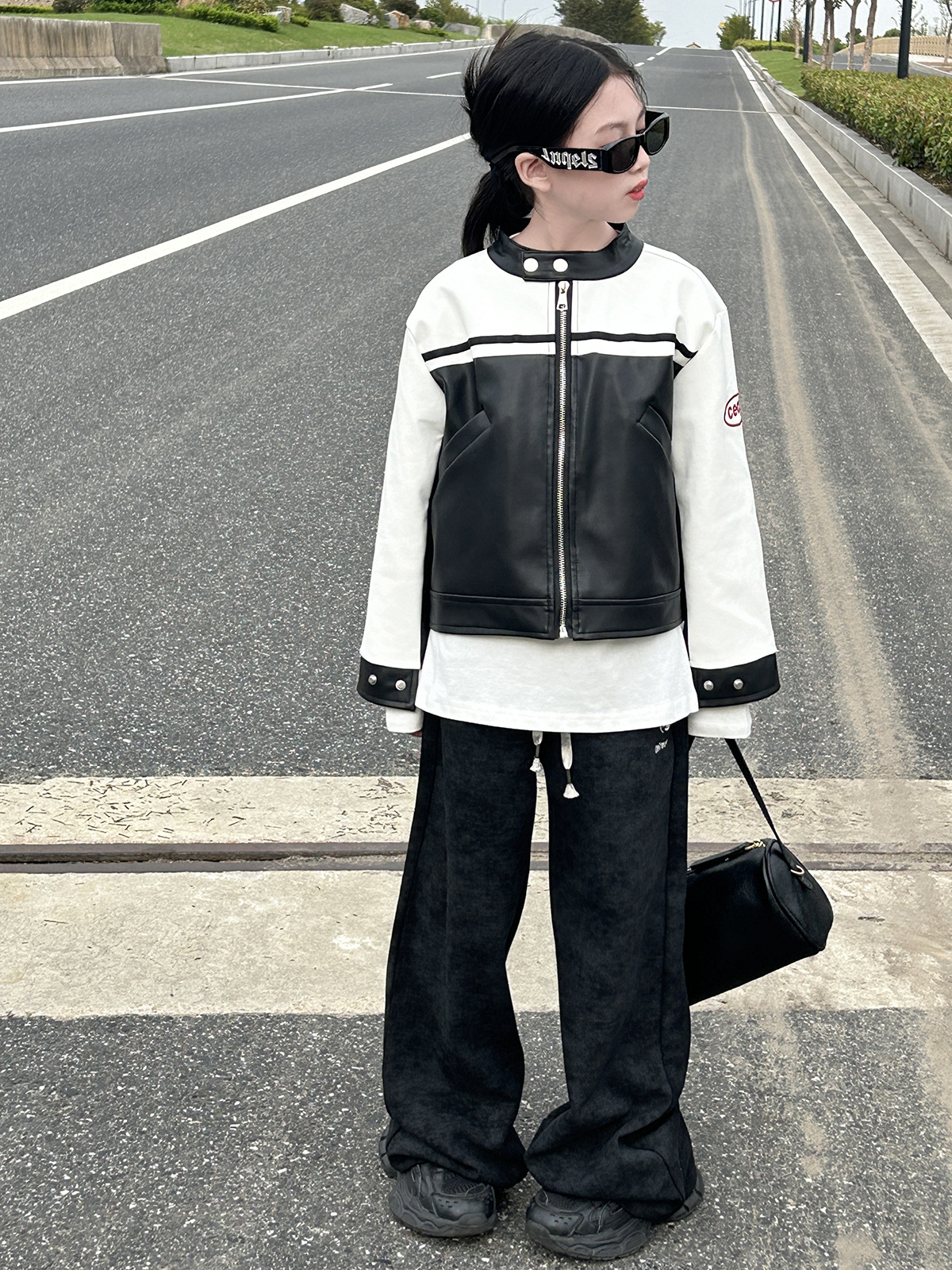 • 흑백 패치워크 가죽 재킷