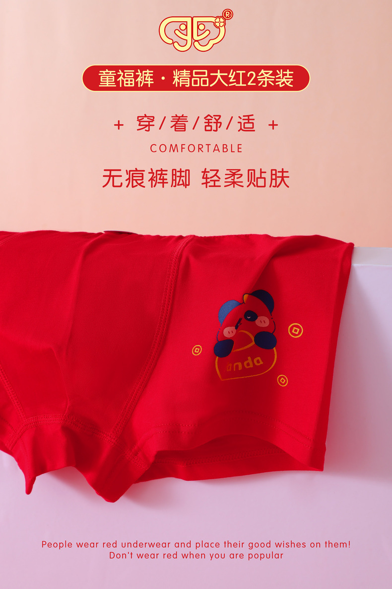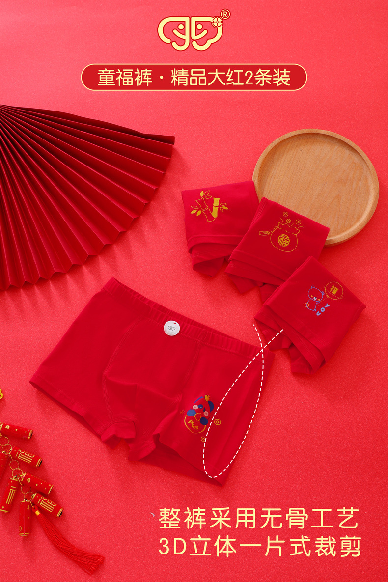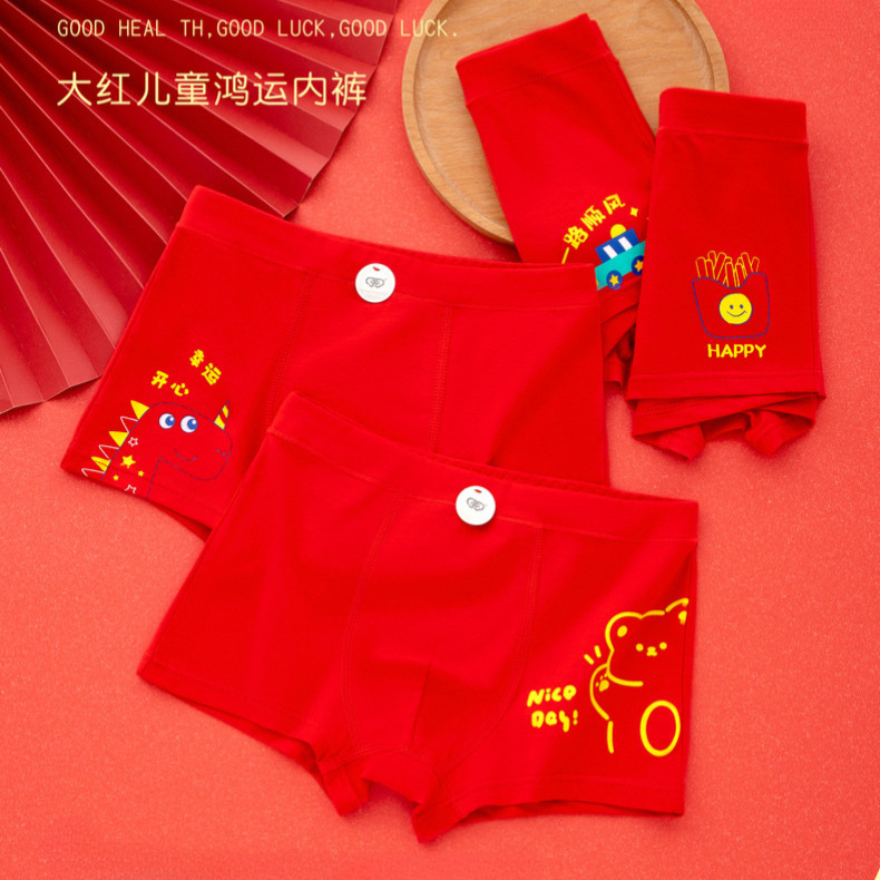 어린이 속옷 남학생 연봉 세균면 빨간색 중소 어린이 반바지 플랫 코너 큰 어린이 A 레드 어린이 푸 바지