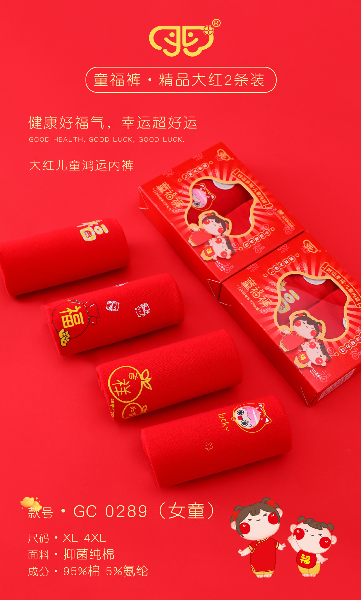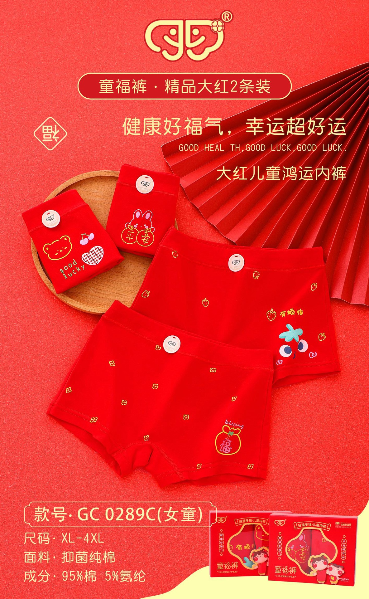 어린이 속옷 여아 항균 빅 레드 중소형 어린이 반바지 플랫 코너 큰 어린이 클래스 A 빨간 어린이 바지스토어 가기