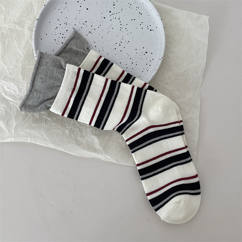 24 가을 새 스타일 양말 한국 스타일 느슨한 입 대비 컬러 스트라이프 여성 중간 길이 양말 스포츠 캐주얼 코튼 여성용 양말 통기성스토어 가기