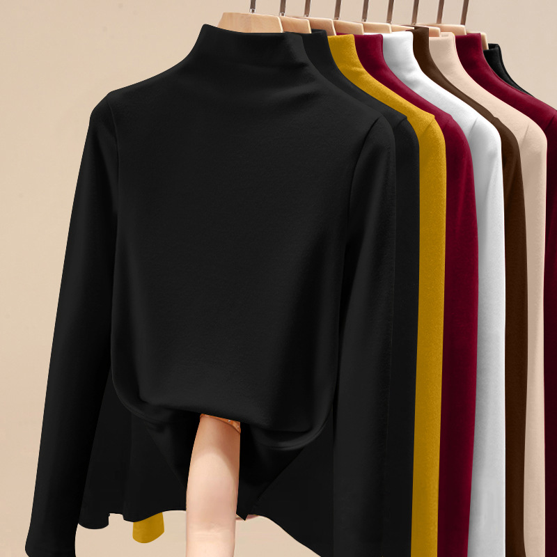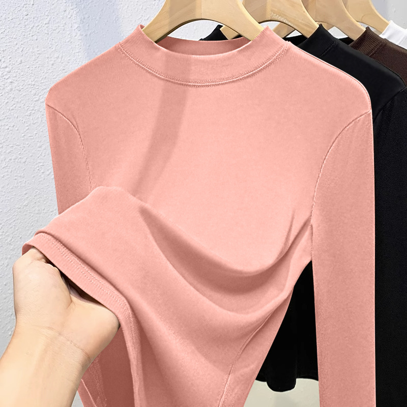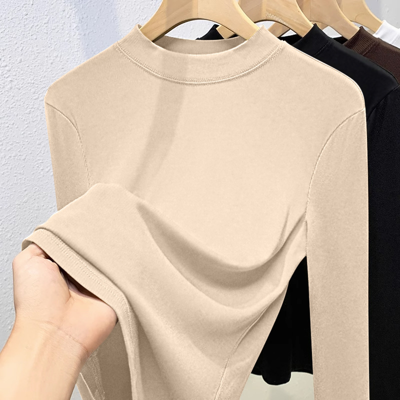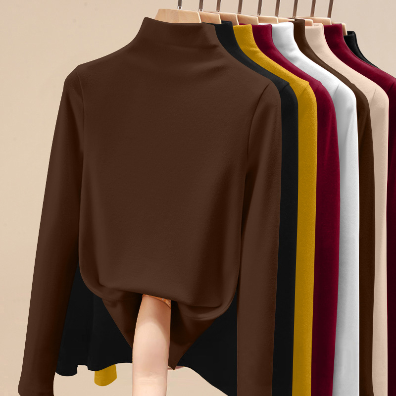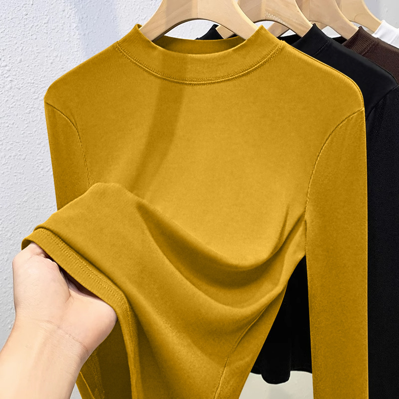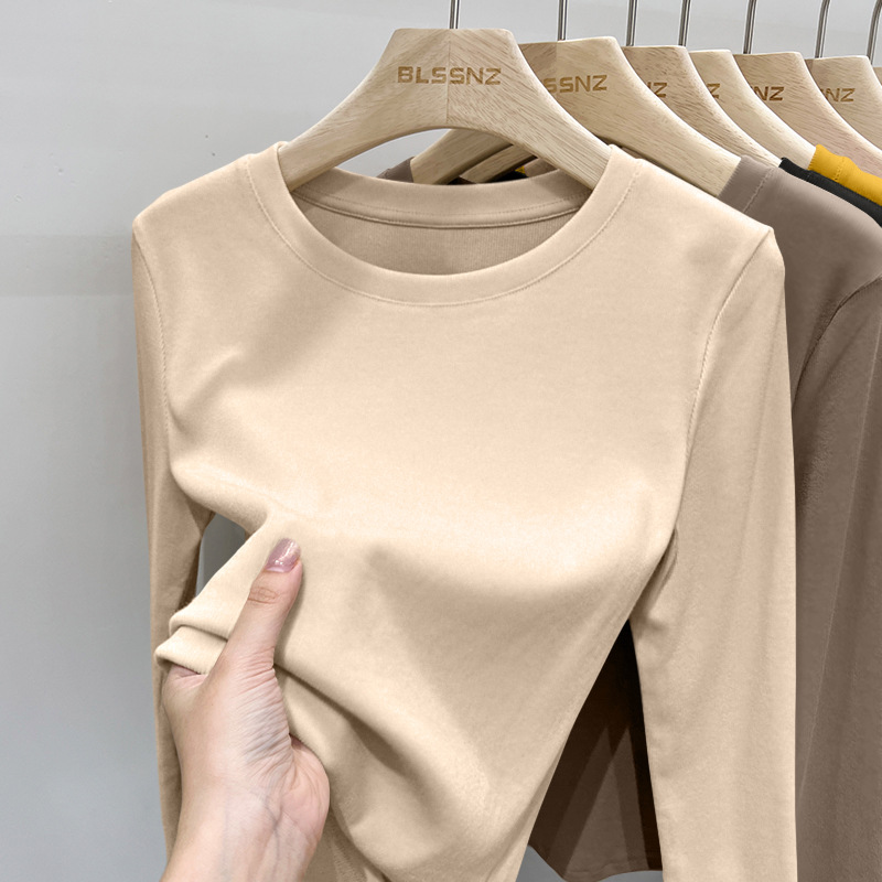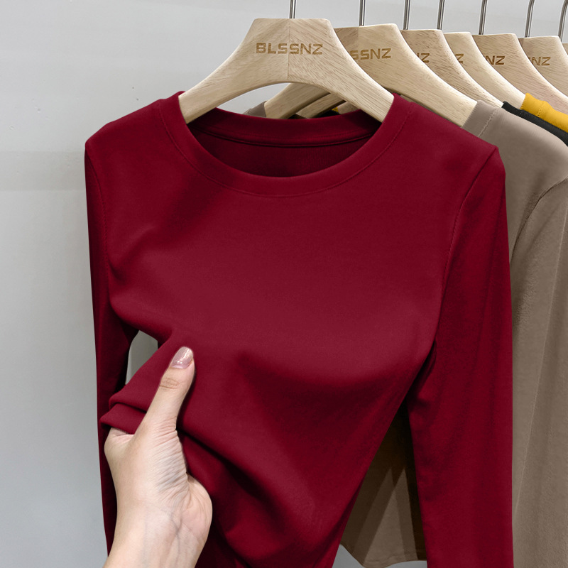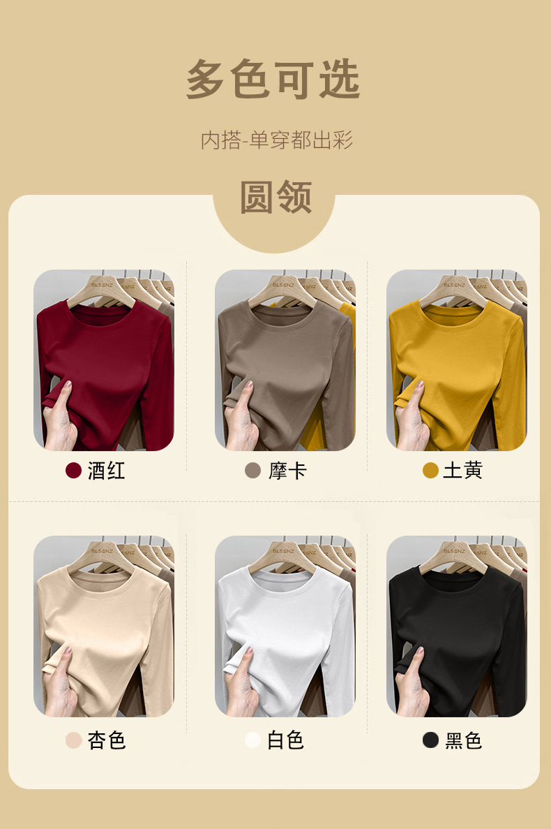 스레드 벨벳 바닥 셔츠 새로운 라운드 넥 긴 소매 티셔츠 여성의 간단한 올 매치 가을과 겨울 기모 냉장 따뜻한 재킷
