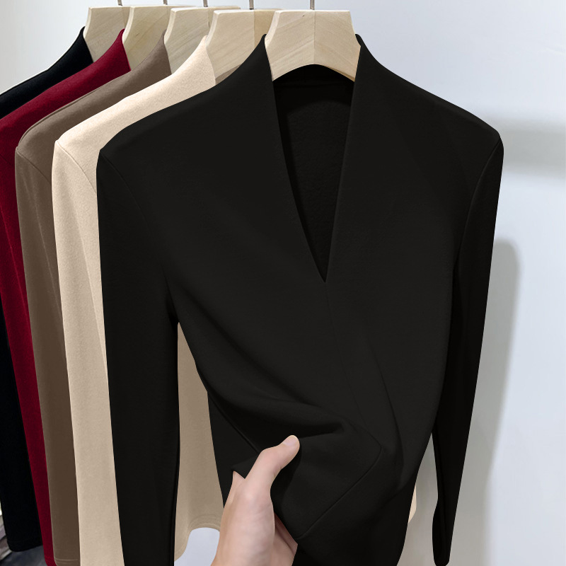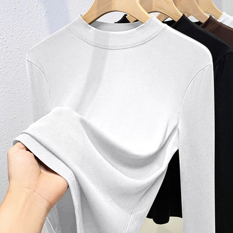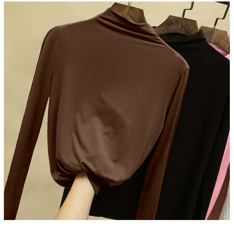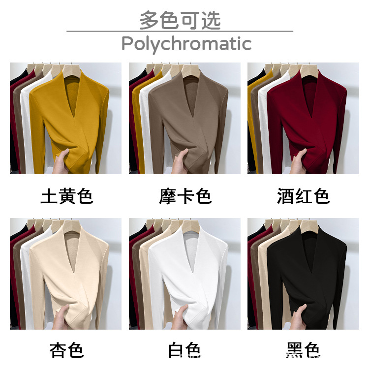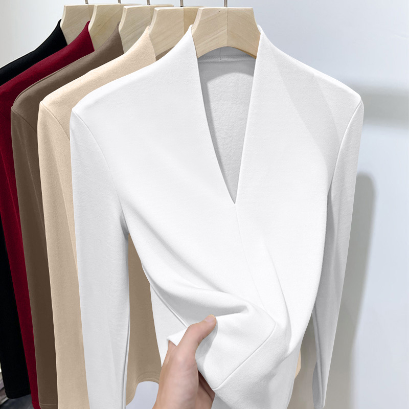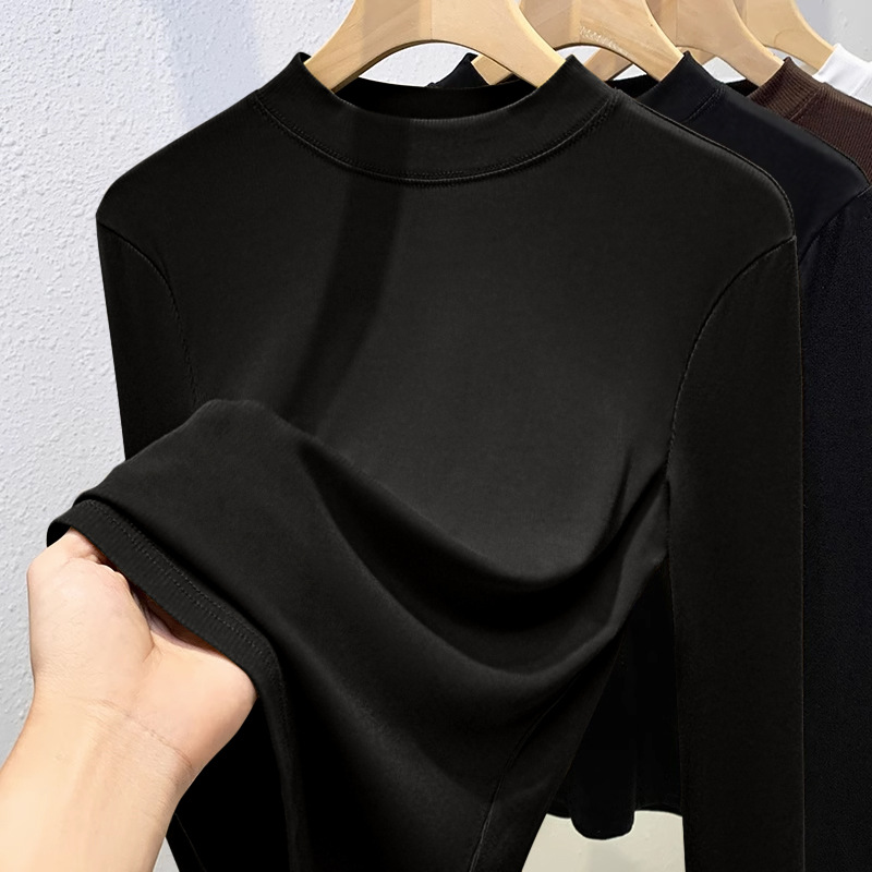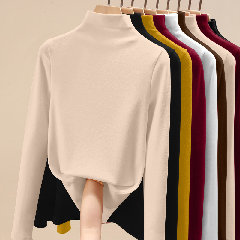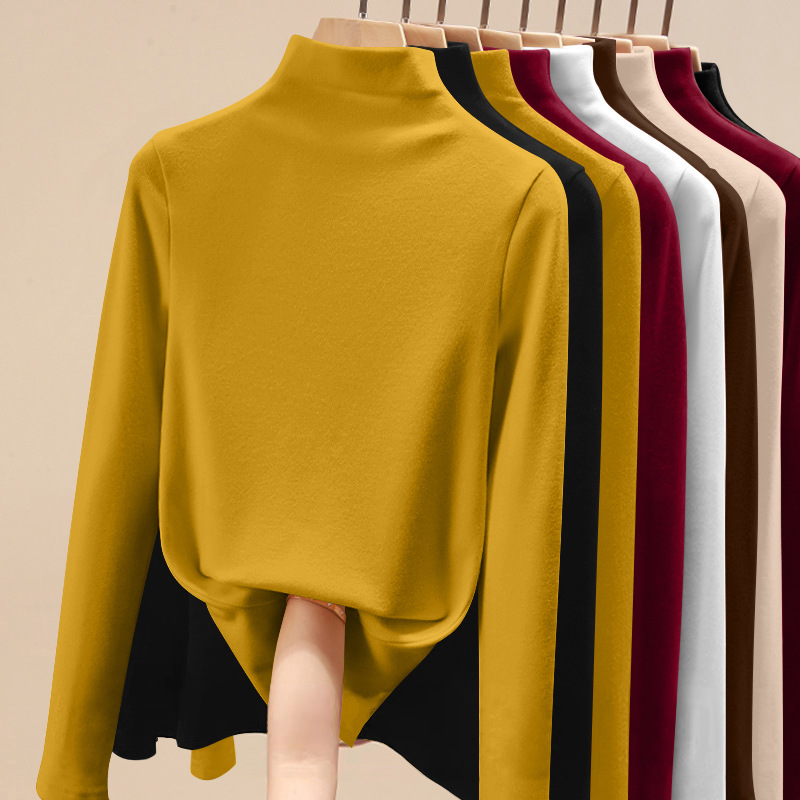 스레드 벨벳 바닥 셔츠 새로운 라운드 넥 긴 소매 티셔츠 여성의 간단한 올 매치 가을과 겨울 기모 냉장 따뜻한 재킷