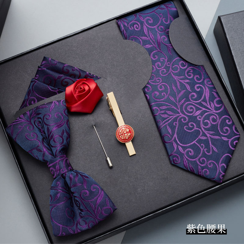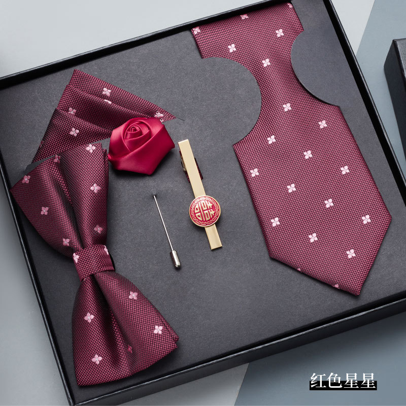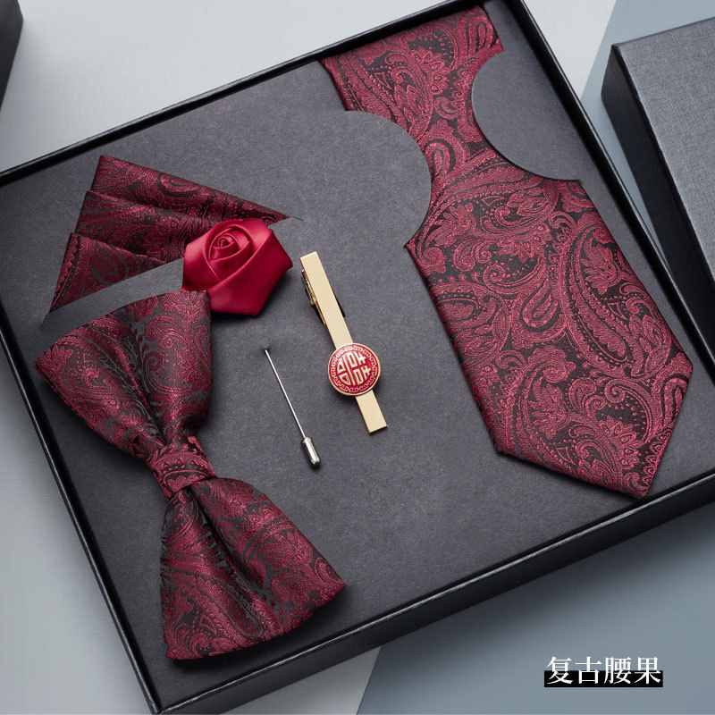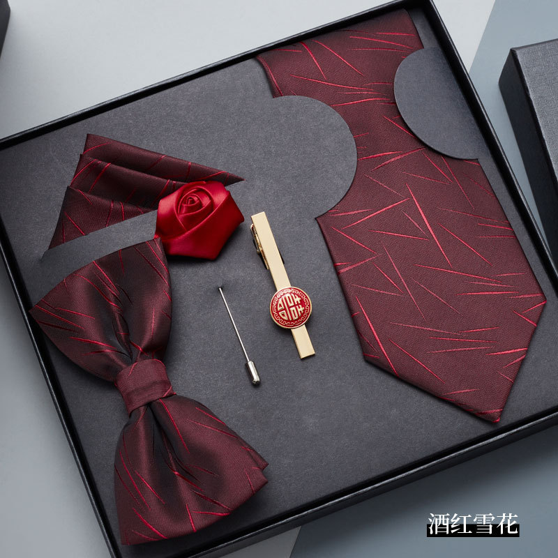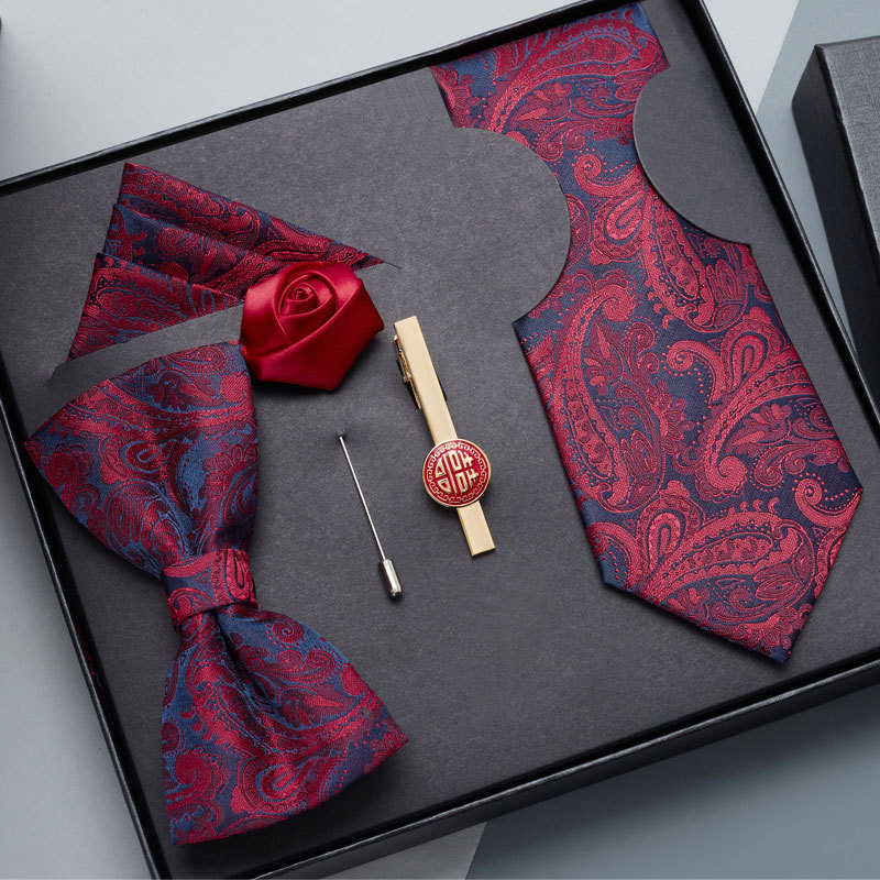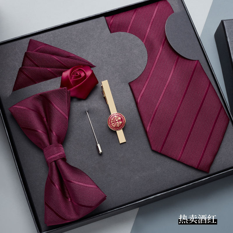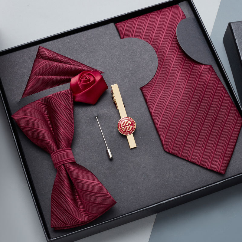 • 5피스 빅 선물 상자 세트(지퍼 매듭 없음) 8cm 인기 판매 버건디 세트