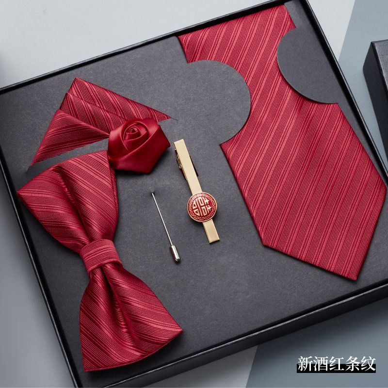 • 5피스 빅 기프트 박스 세트(지퍼 매듭 없음) 8cm 뉴 버건디 스트라이프 세트
