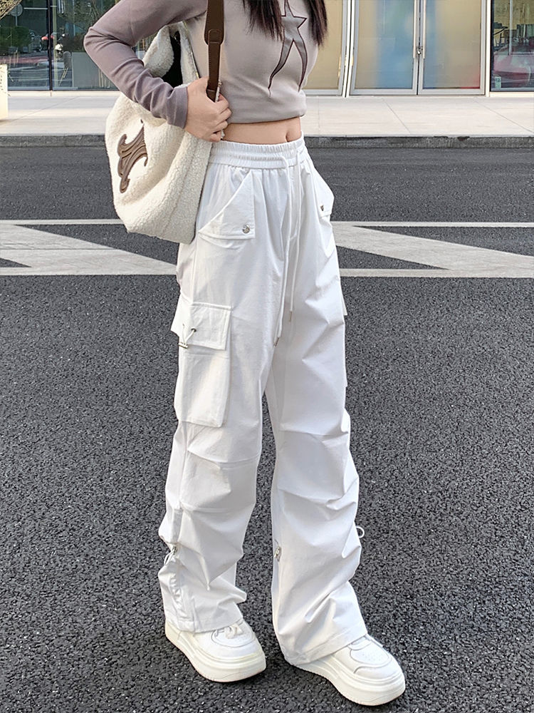 아메리칸 스타일 넓은 다리 낙하산 크레인 바지 여성 여름 얇은 높은 허리 느슨한 모든 경기 유행 충전 바지 캐주얼 긴 바지스토어 가기