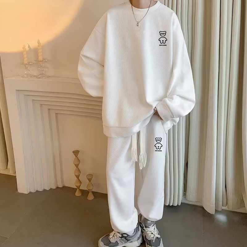 와플 세트 남성 스포츠 레저 가을 긴 소매 바지 Yuppie 남성 콜로션 잘 생긴 십대 옷