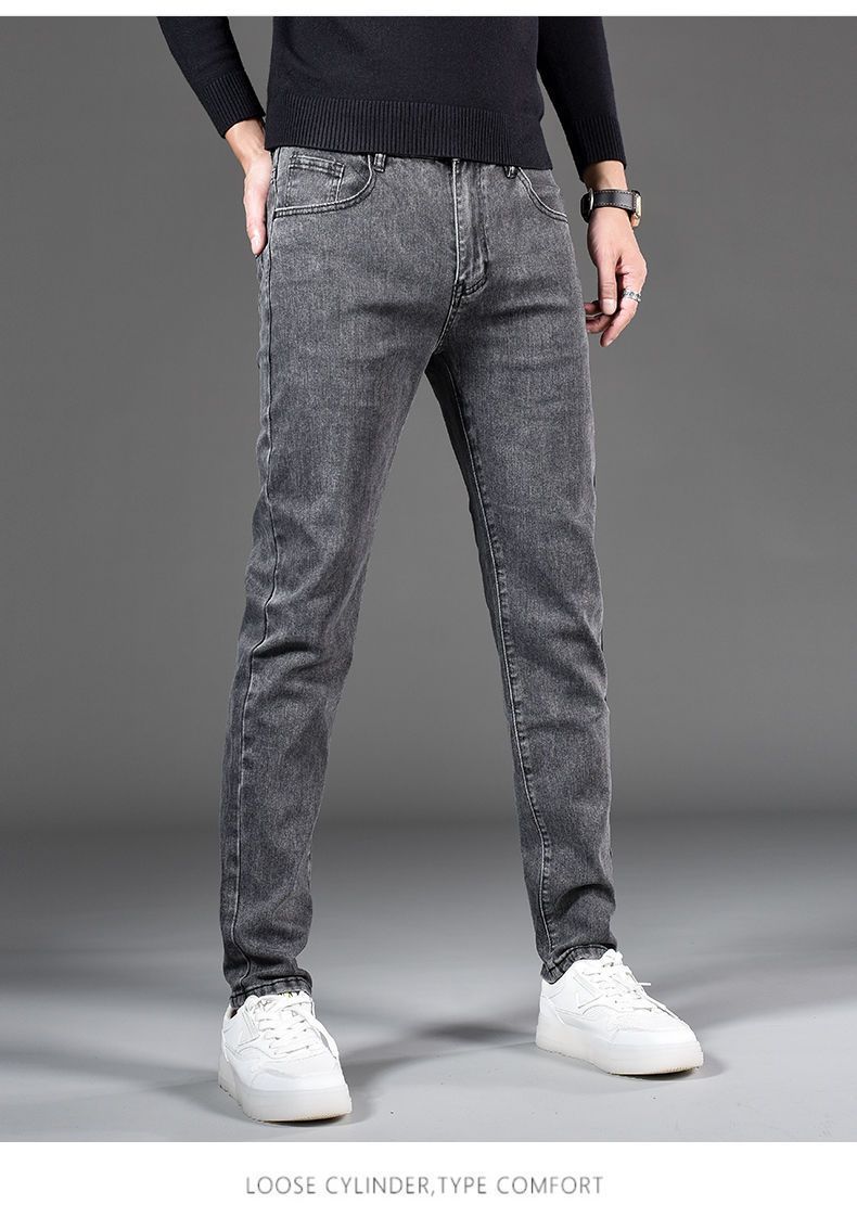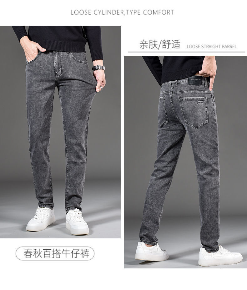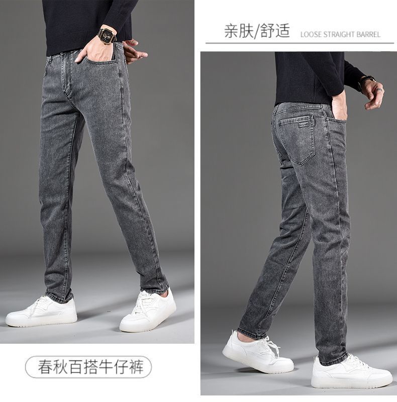 남성용 클리어런스 청바지 2024 봄, 가을 새로운 슬림핏 트렌디한 젊은 및 중년 회색 남성 캐주얼 바지스토어 가기