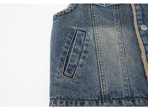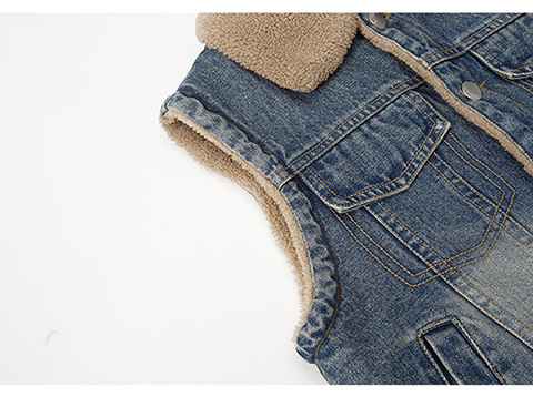 소년 조끼 겨울 두꺼운 2024 소년 조끼 한국 스타일 소년 조끼 유행 양가죽 데님 조끼스토어 가기