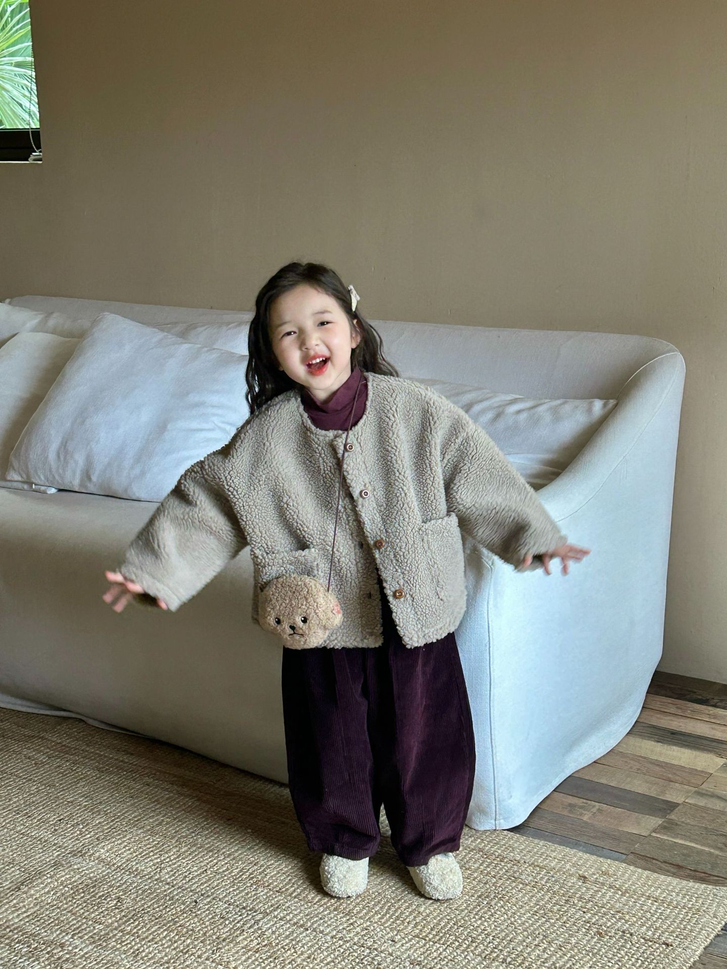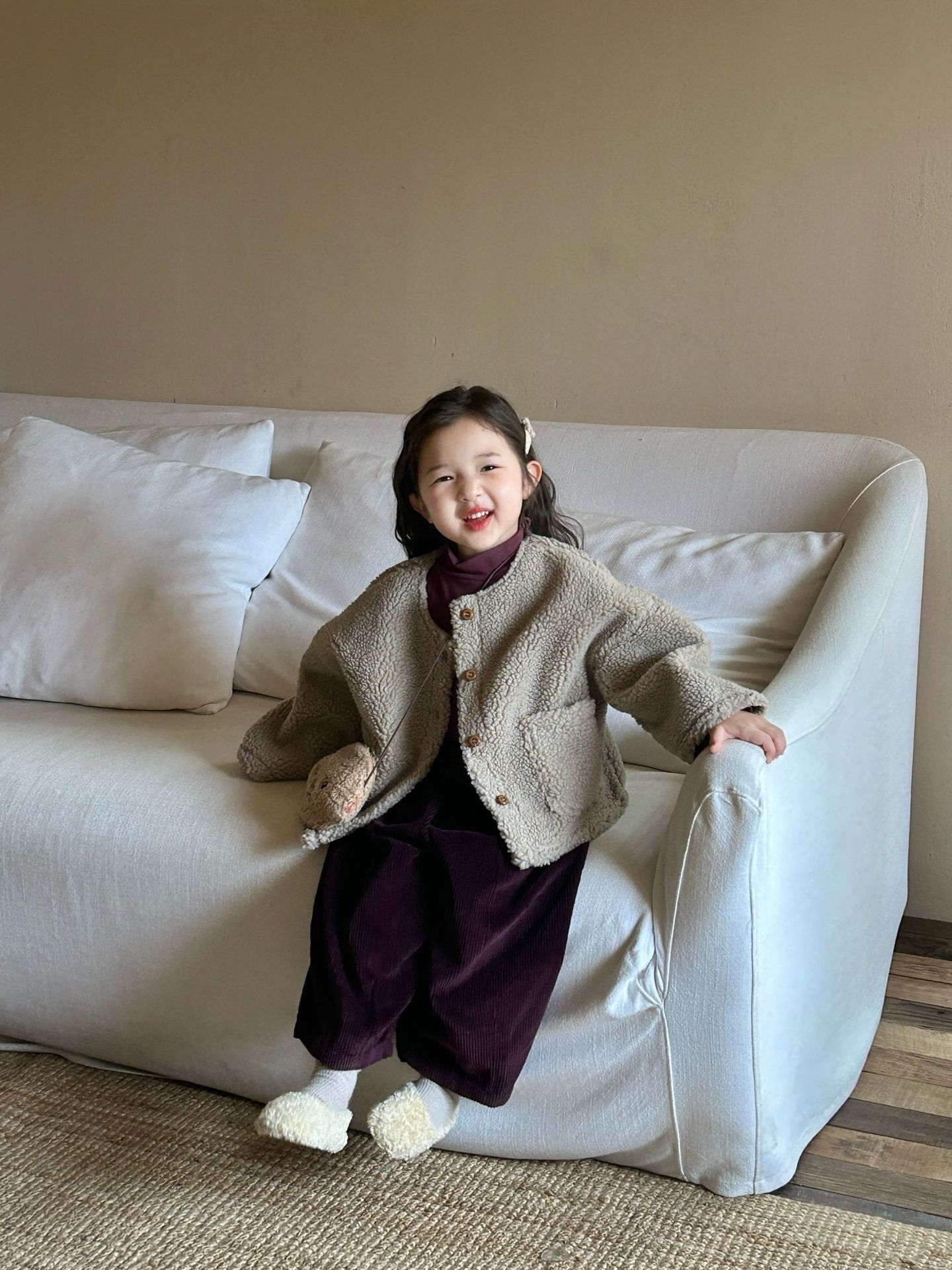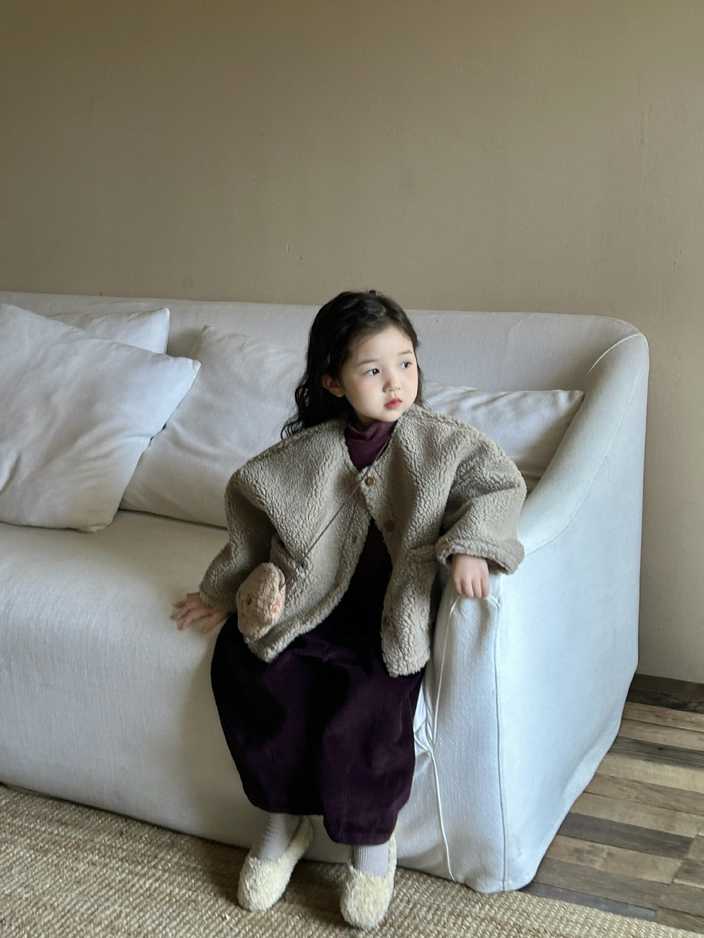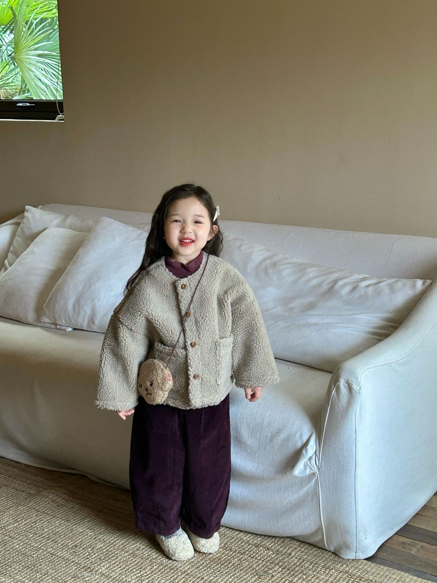 세트 여자 양모 스웨이드 코트 아기 두꺼운 코트 어린이 코트의 2024 겨울 새로운 한국어 버전스토어 가기