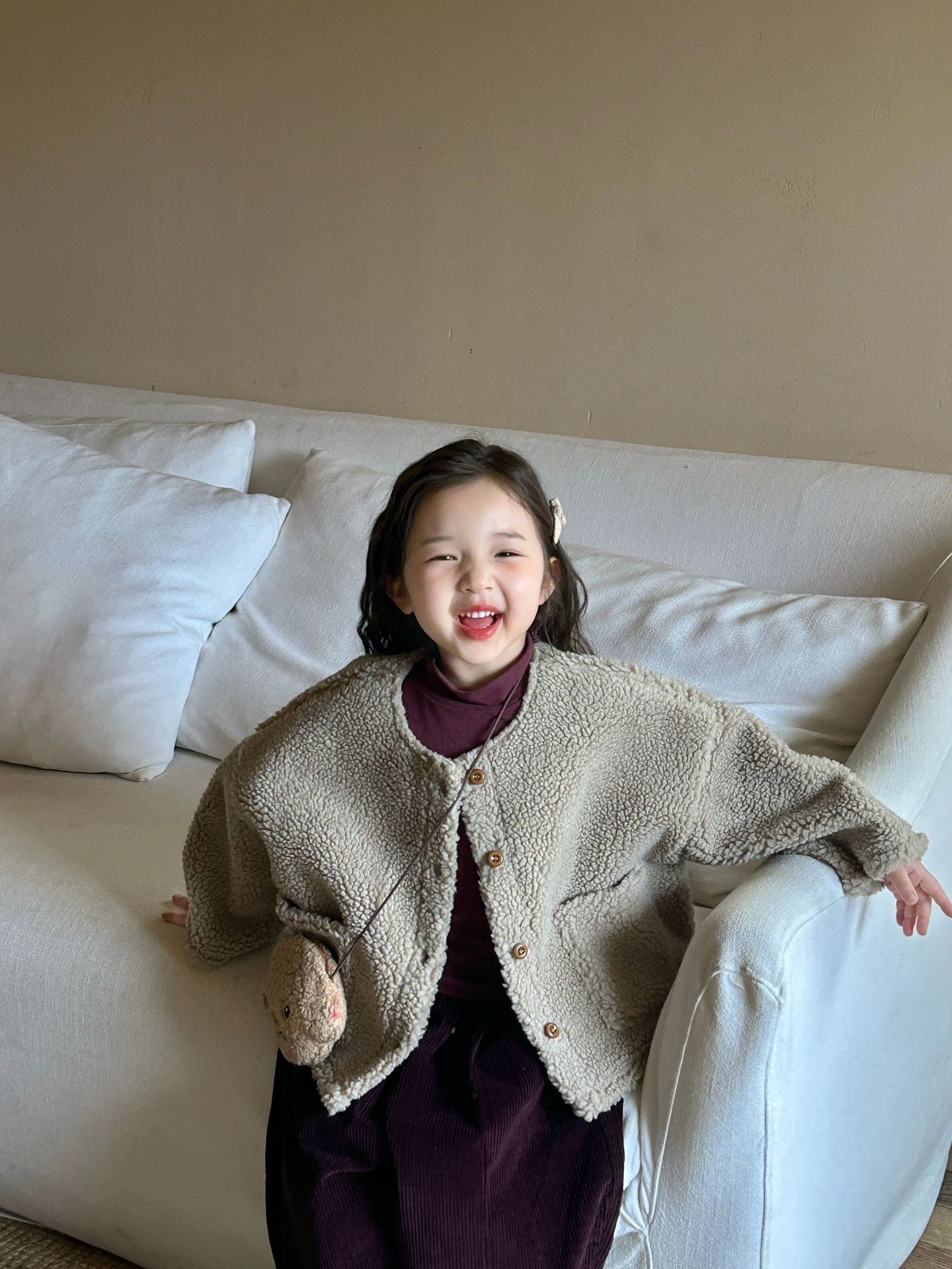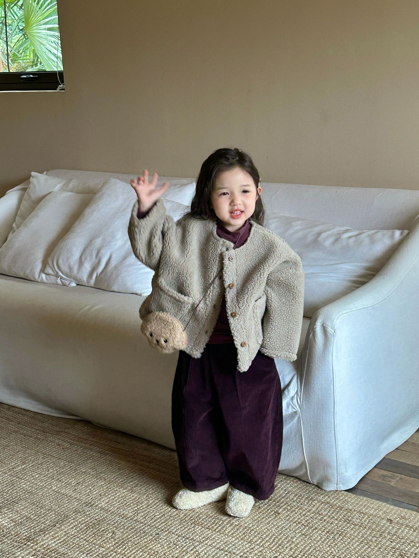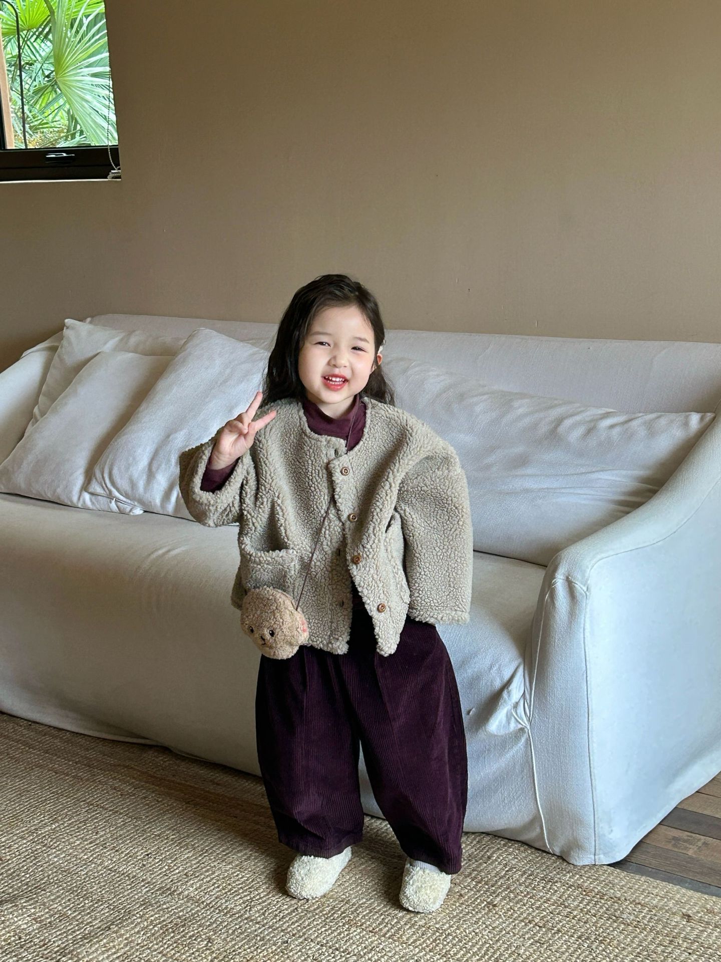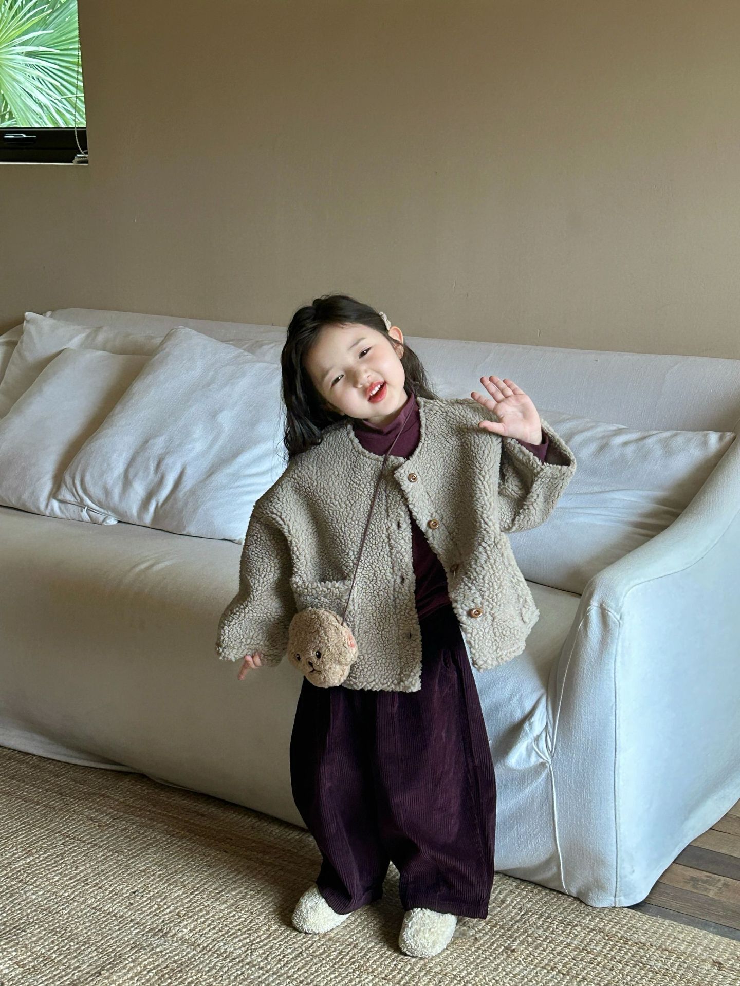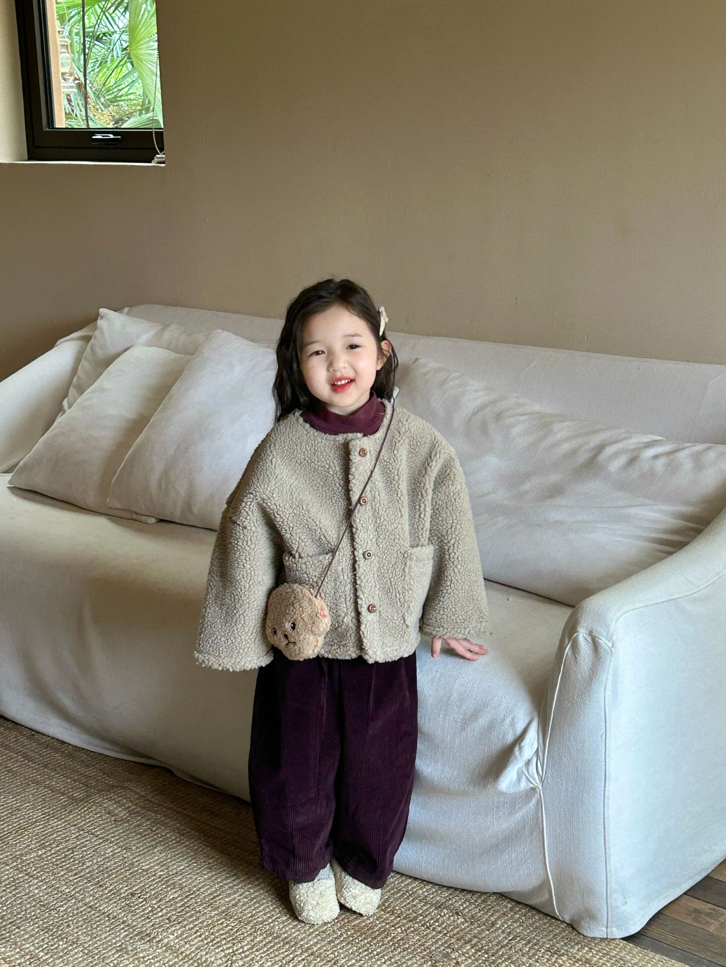 세트 여자 양모 스웨이드 코트 아기 두꺼운 코트 어린이 코트의 2024 겨울 새로운 한국어 버전스토어 가기