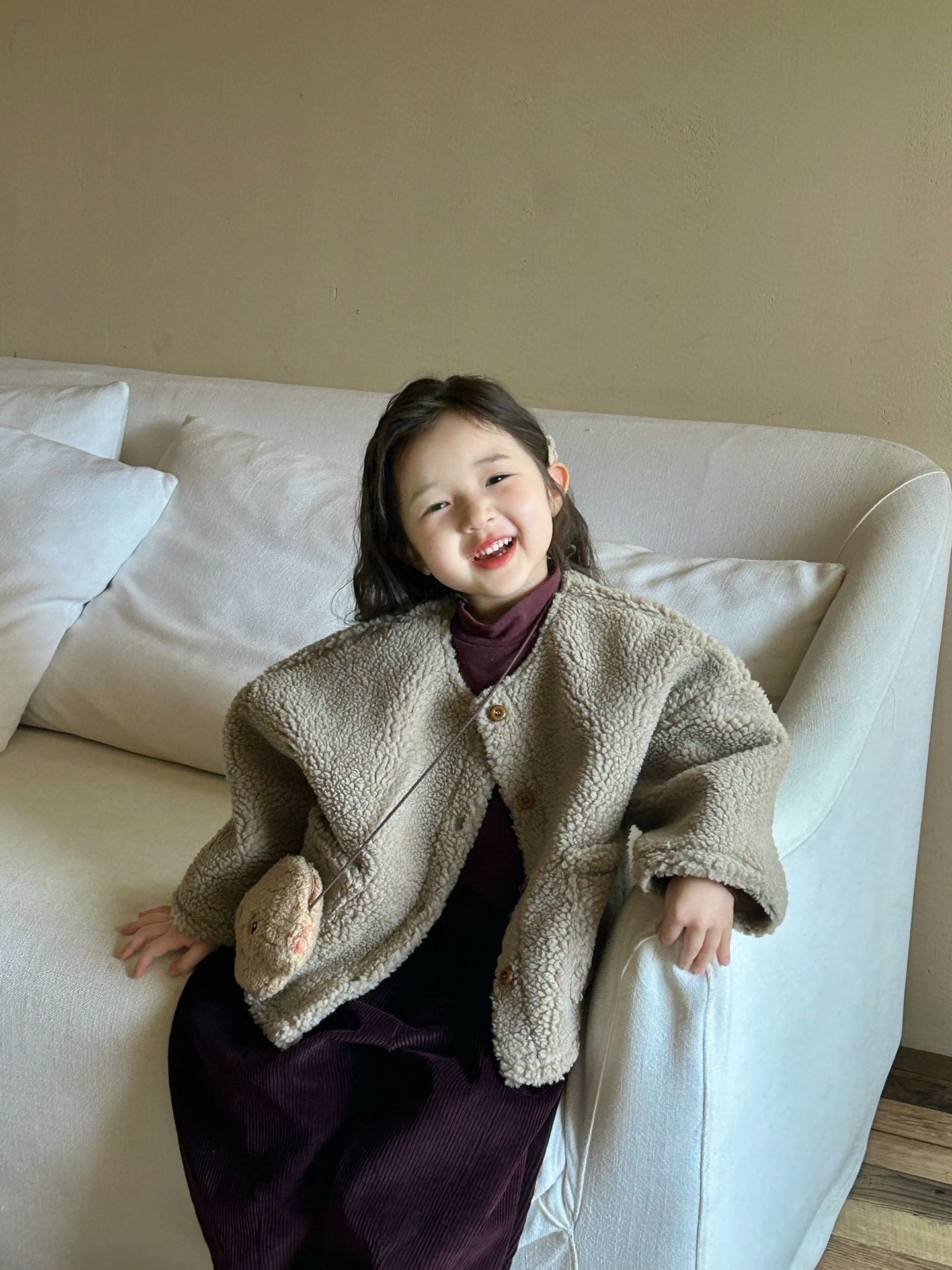 세트 여자 양모 스웨이드 코트 아기 두꺼운 코트 어린이 코트의 2024 겨울 새로운 한국어 버전
