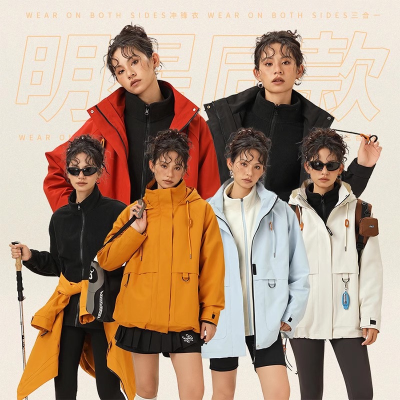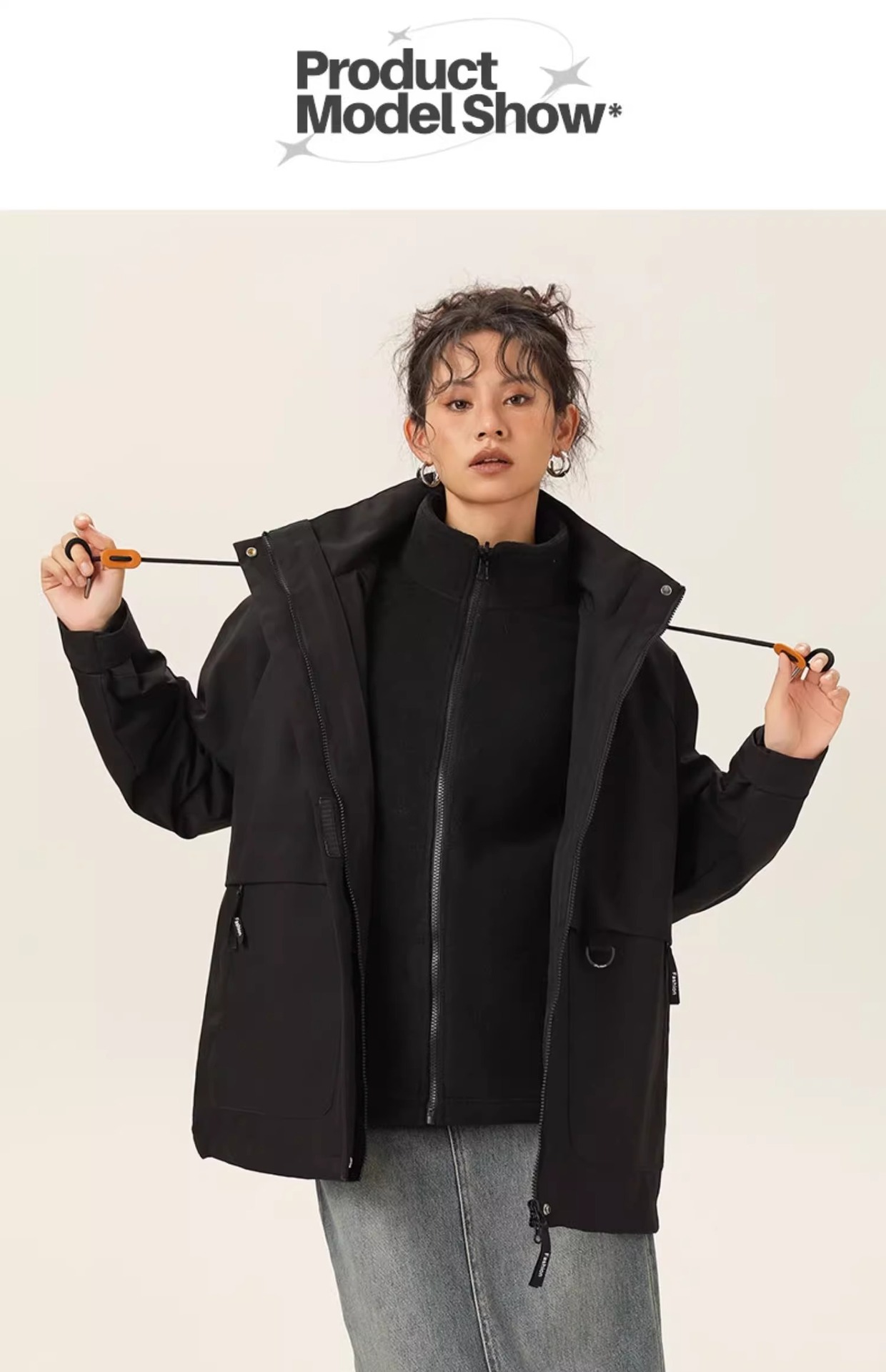 NASA Huang Yimei 동일 스타일 3 대 1 야외 충전 재킷 남성 봄, 가을 및 겨울 작업 재킷 여성 등산 옷