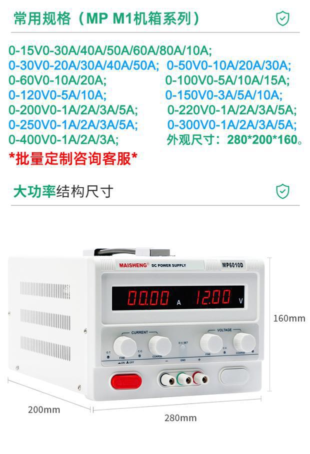 Maisheng 150V120V100V 노화 유지 보수 60A50A30A20A10A5A3A2 조정 가능한 DC 조절 전원 공급 장치스토어 가기