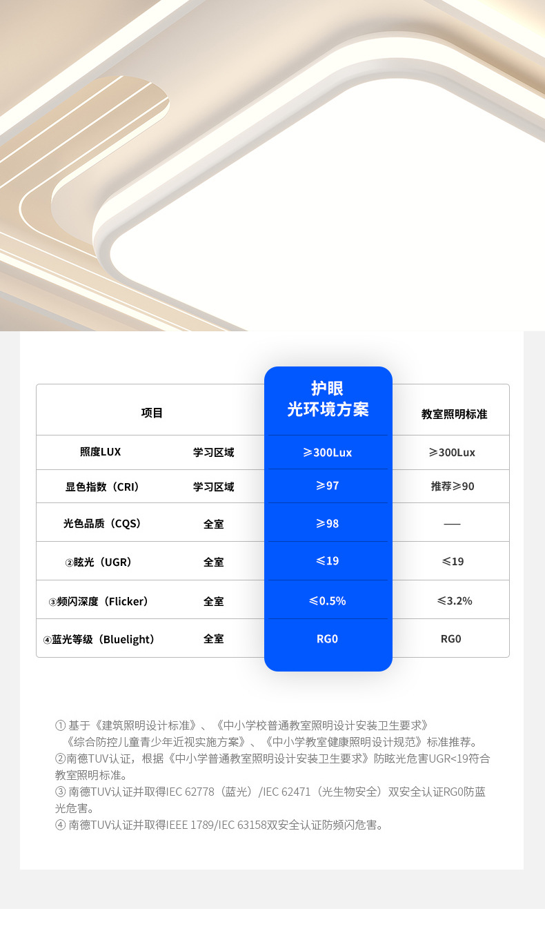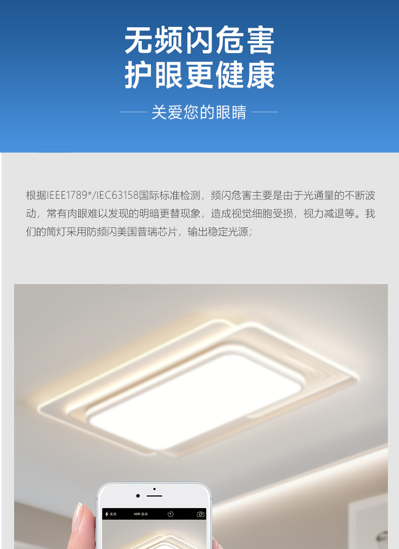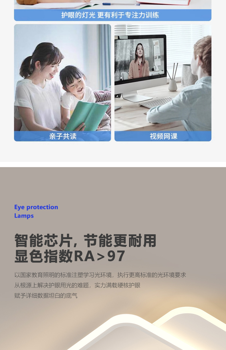 크림 스타일 현대 간단한 전체 스펙트럼 눈 보호 실내 천장 램프