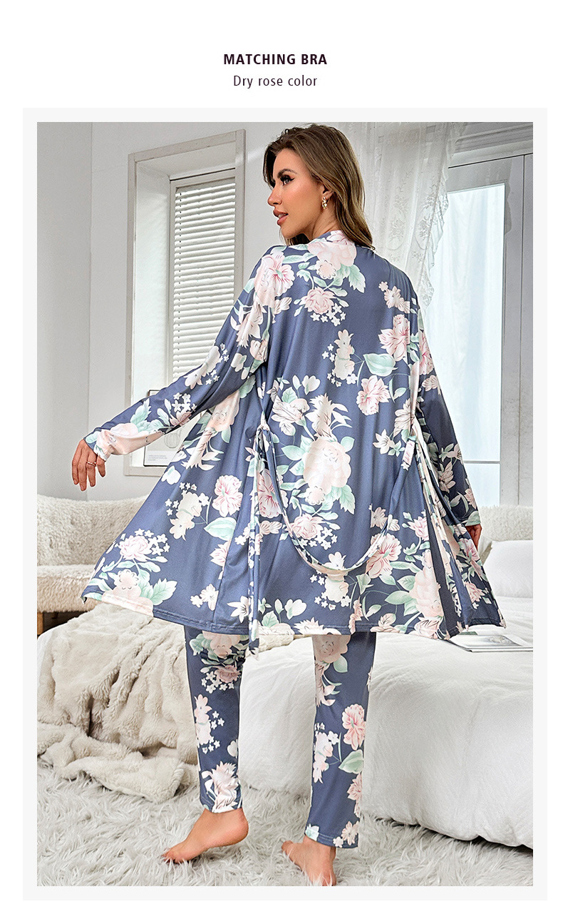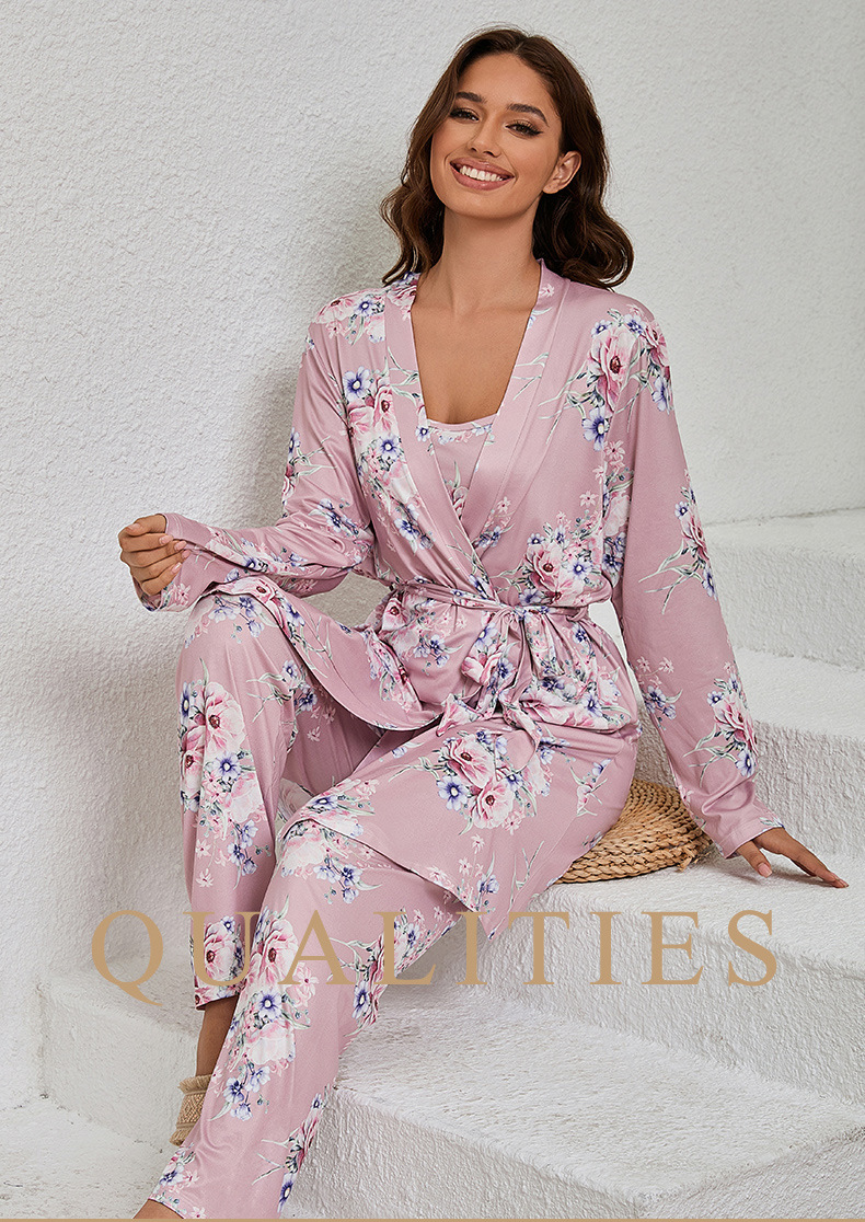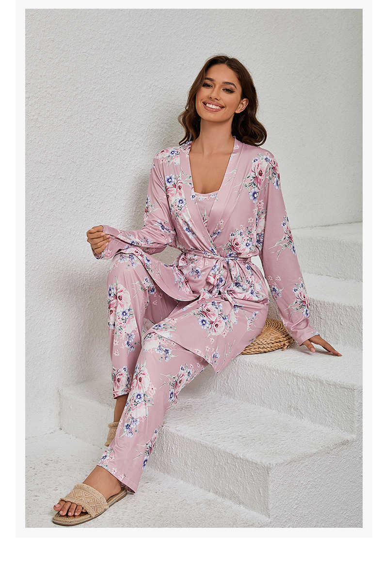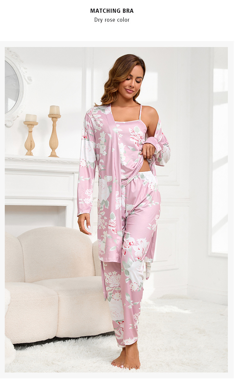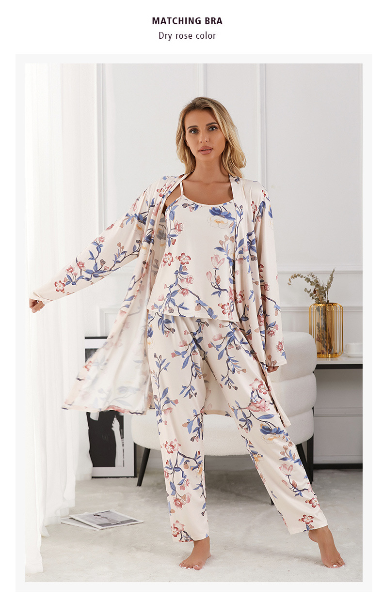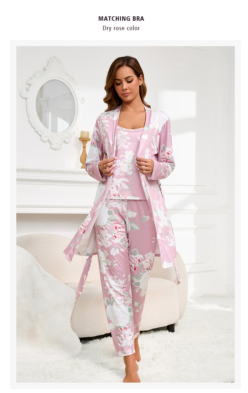 파자마 여성용 코튼 나이트 가운 슬링 나이트 가운 3 종 세트 아마존 유럽 및 미국 가을 홈 의류