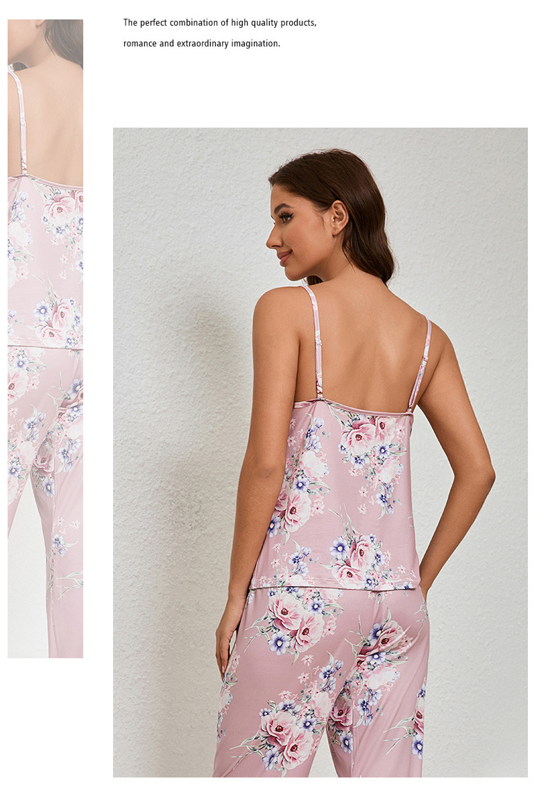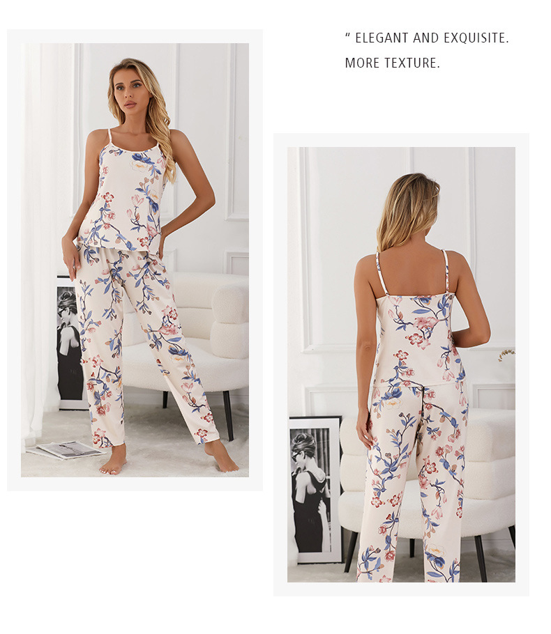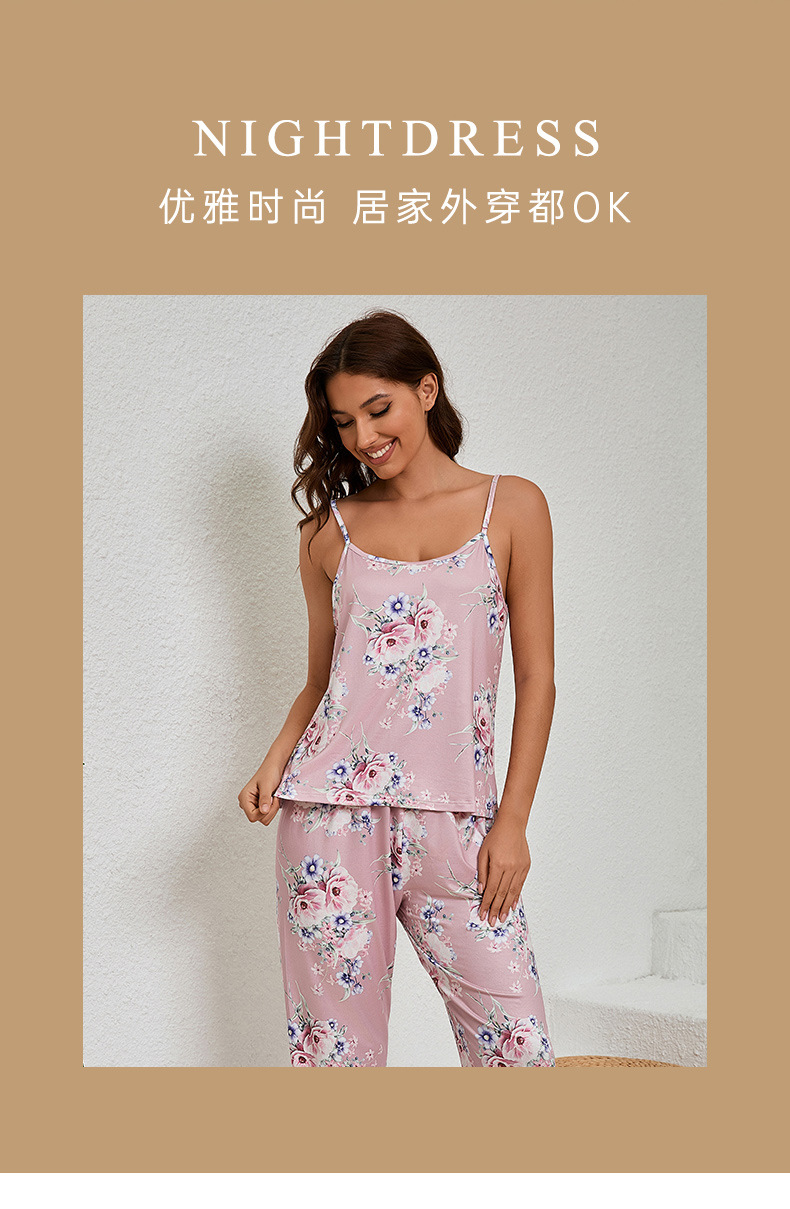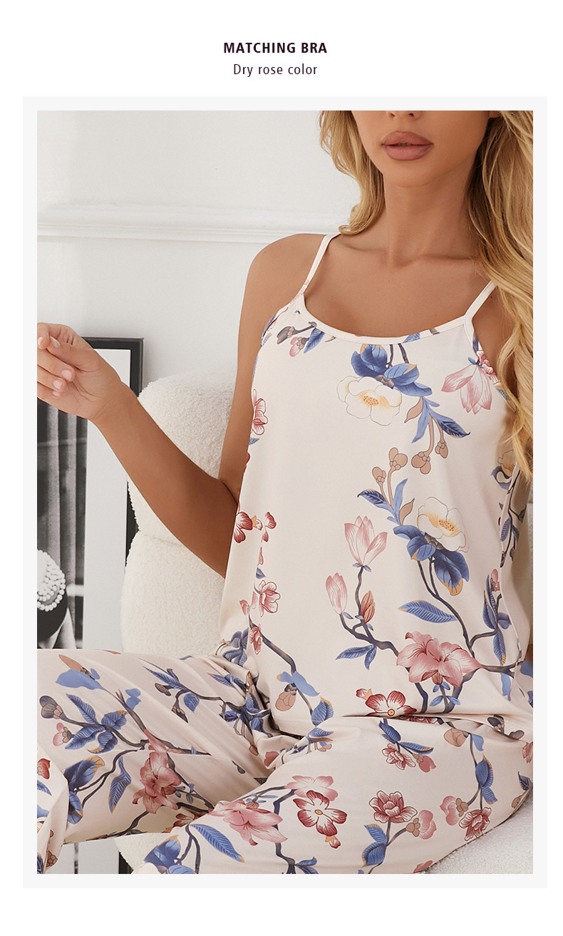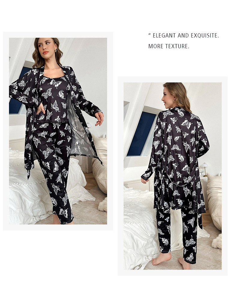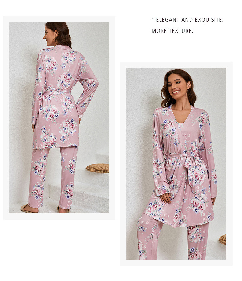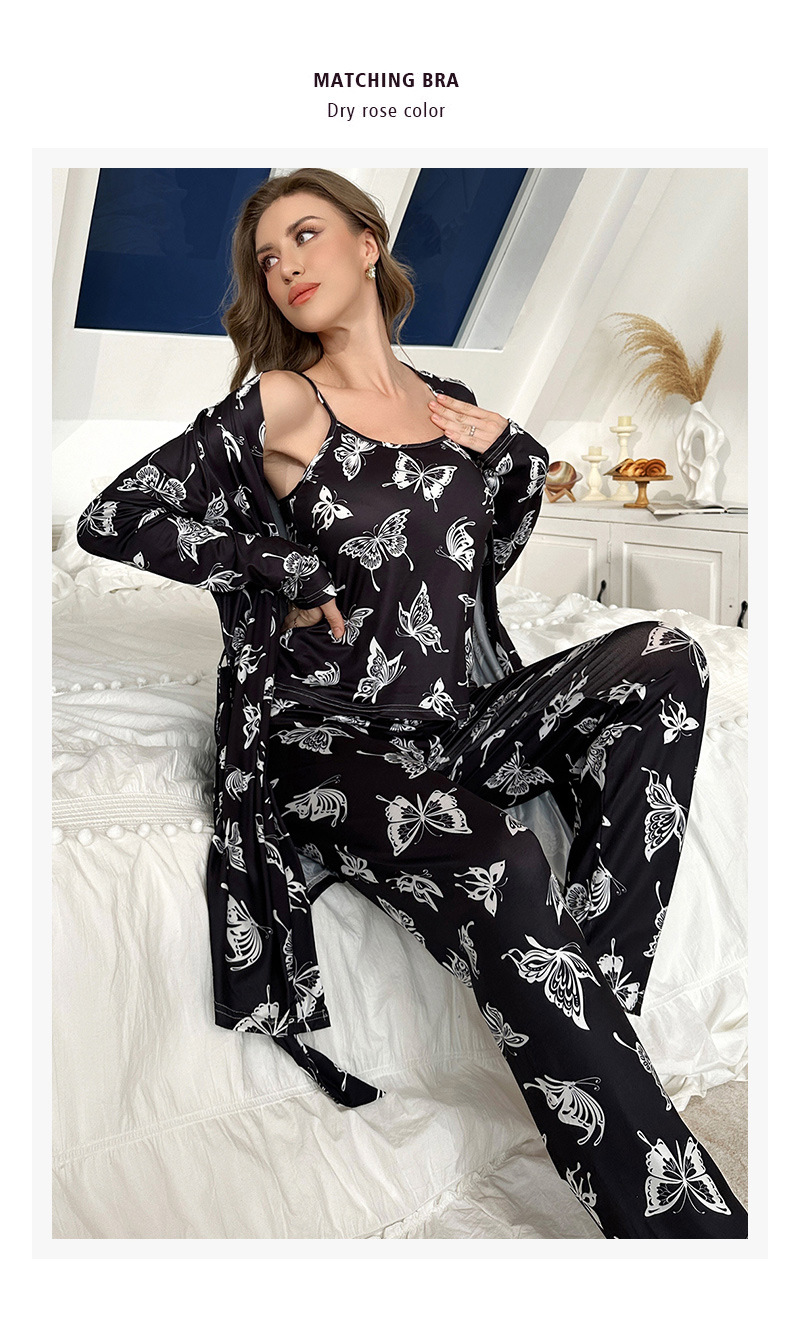 파자마 여성용 코튼 나이트 가운 슬링 나이트 가운 3 종 세트 아마존 유럽 및 미국 가을 홈 의류