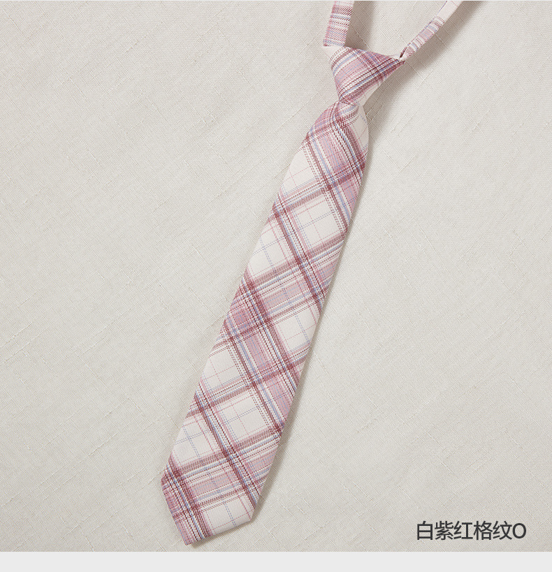 • JK 화이트 퍼플 레드 체크 무늬 O넥타이