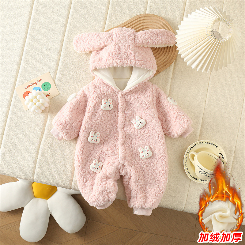 신생아 옷 겨울 두꺼운 따뜻한 점프 수트 보름달 아기 소녀의 만화 모직 스웨터 1 년 된 복장스토어 가기