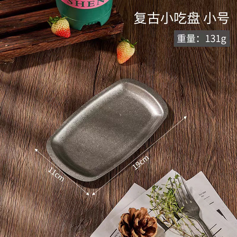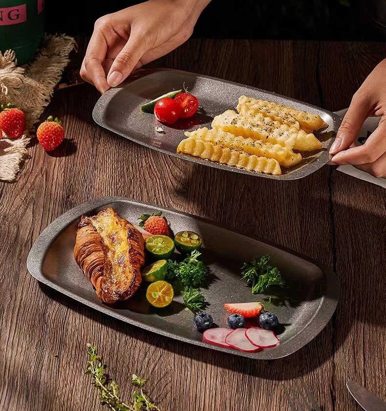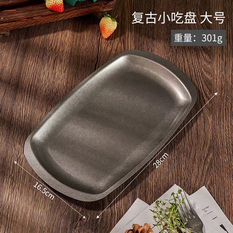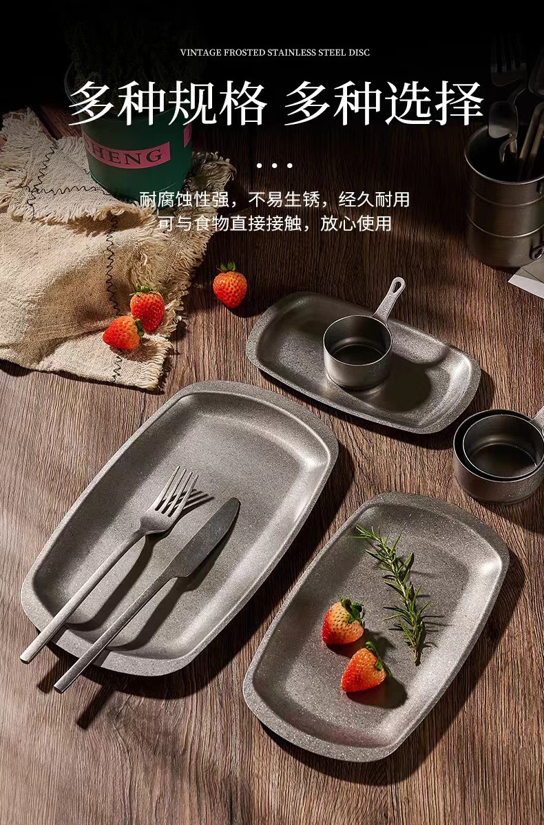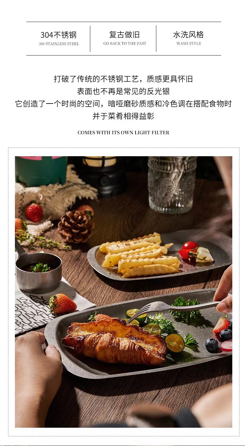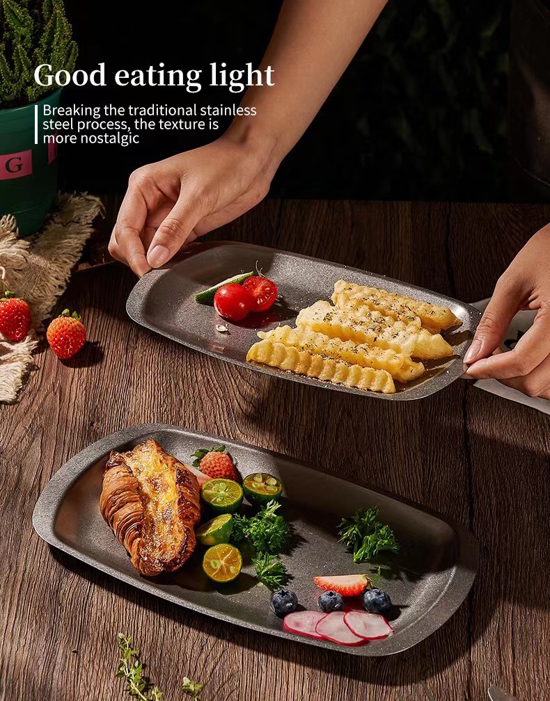 스테인리스 스틸 접시, 직사각형 접시, 상업용 바베큐 트레이, 평평한 바닥 접시, 스테이크 디저트 접시, 레트로 스타일 식기, 스낵 접시