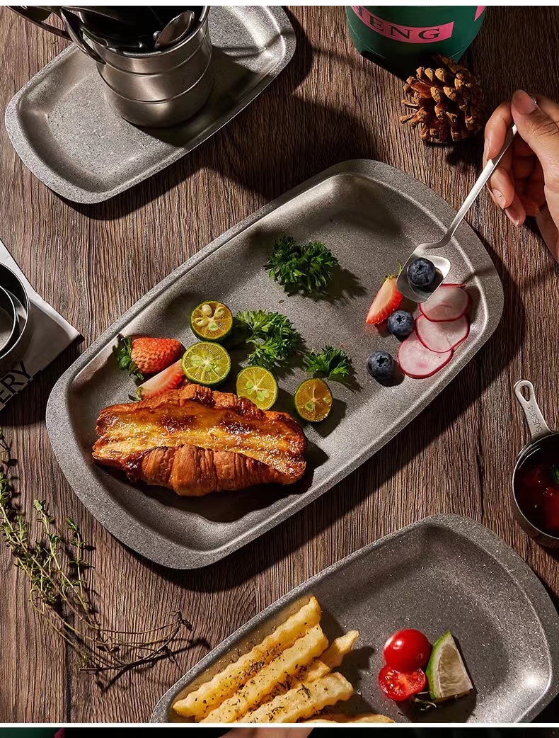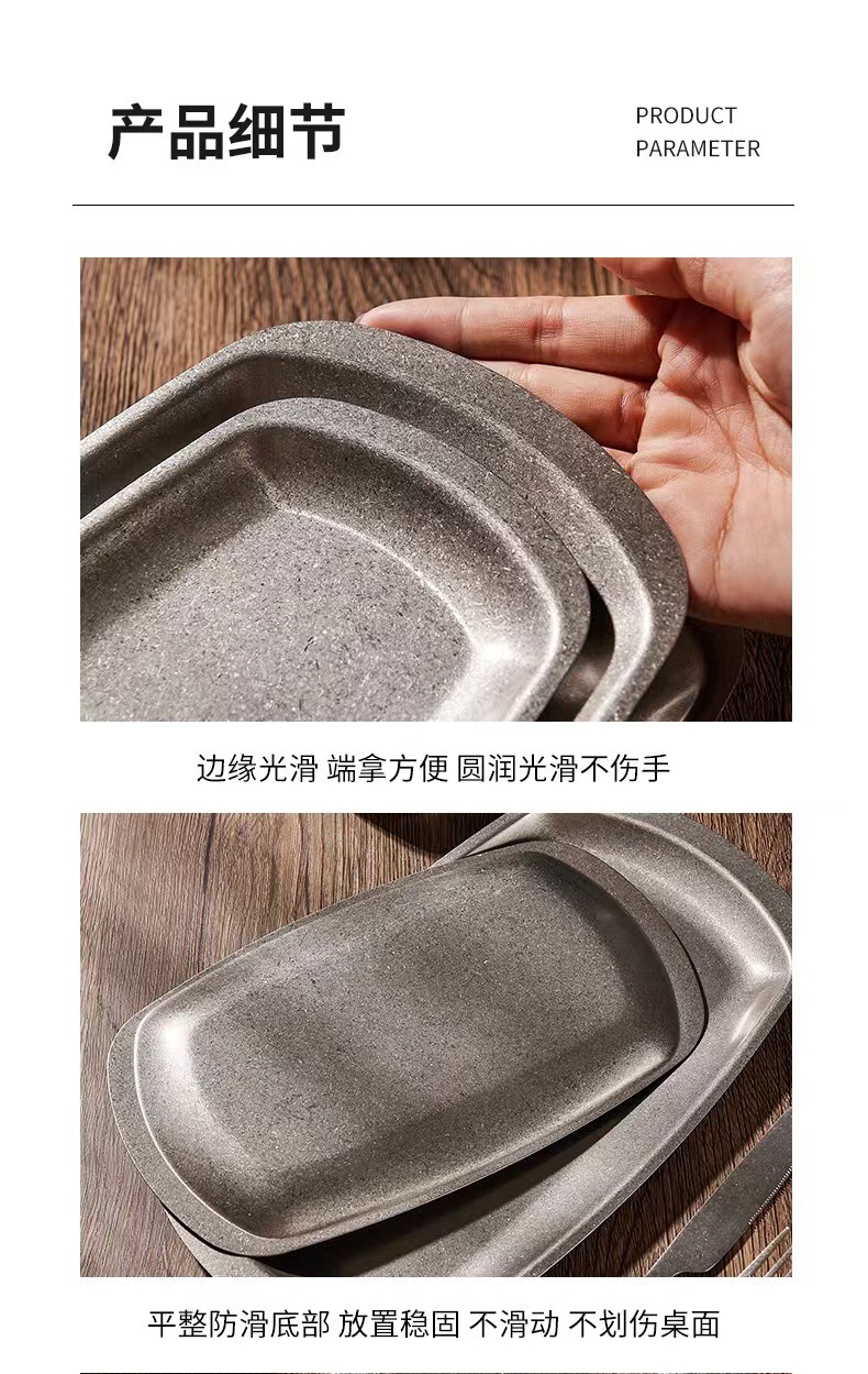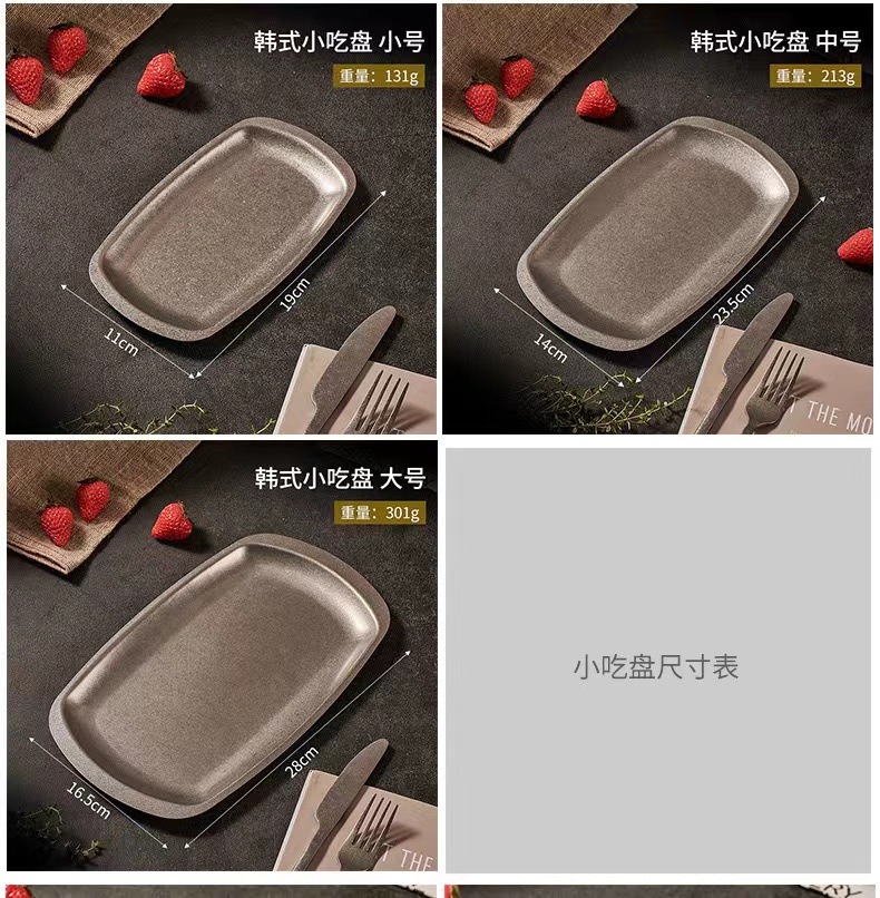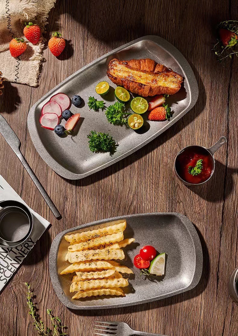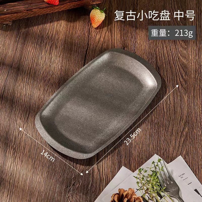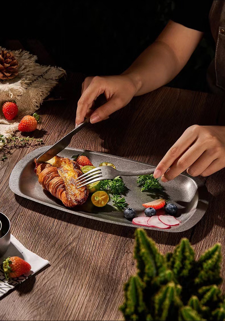 스테인리스 스틸 접시, 직사각형 접시, 상업용 바베큐 트레이, 평평한 바닥 접시, 스테이크 디저트 접시, 레트로 스타일 식기, 스낵 접시