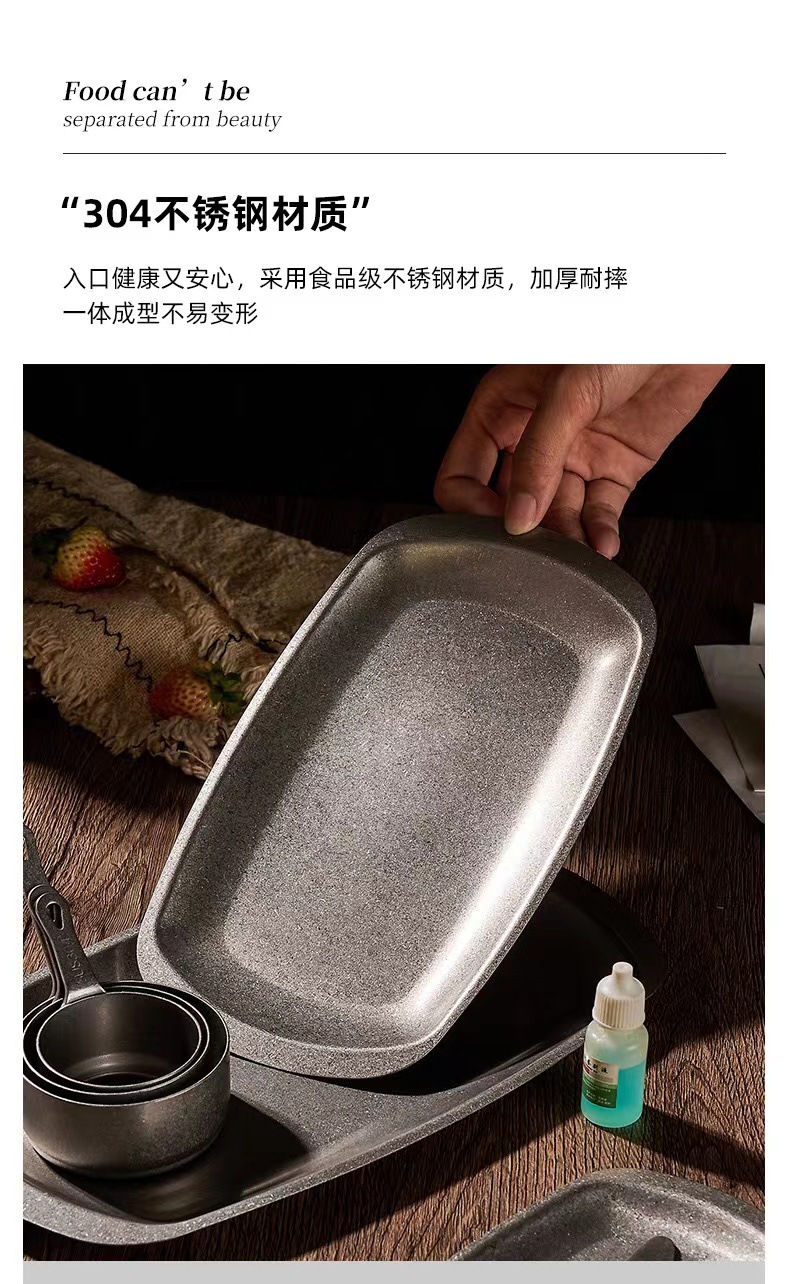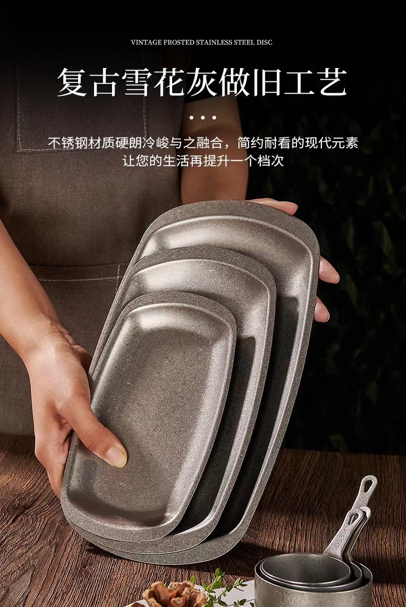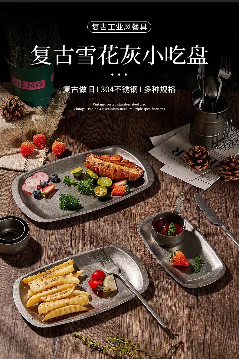 스테인리스 스틸 접시, 직사각형 접시, 상업용 바베큐 트레이, 평평한 바닥 접시, 스테이크 디저트 접시, 레트로 스타일 식기, 스낵 접시스토어 가기