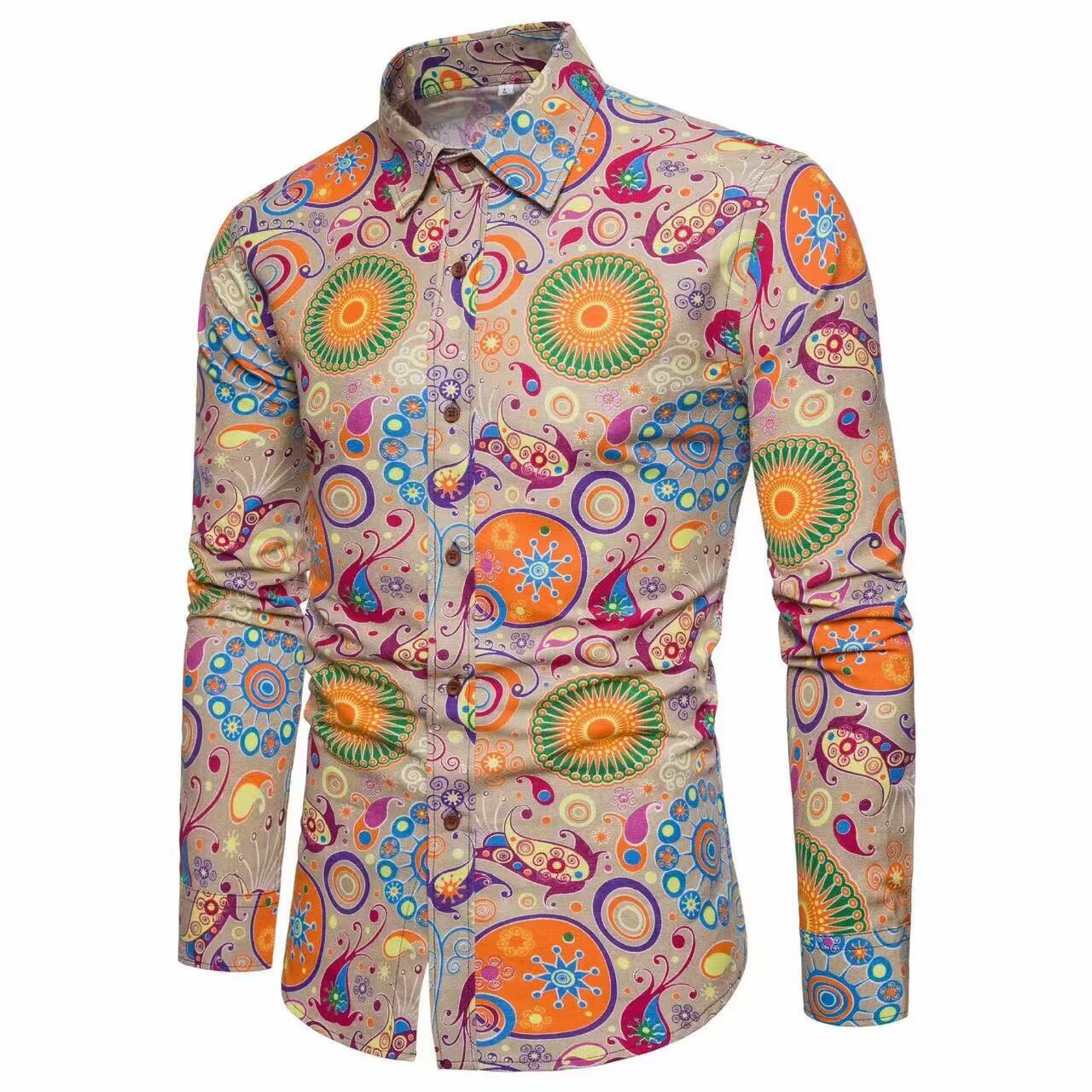 유럽과 미국의 대외 무역 남자 2024 새로운 캐주얼 성격 유행 남자 긴팔 디지털 인쇄 셔츠 셔츠 남성 의류스토어 가기