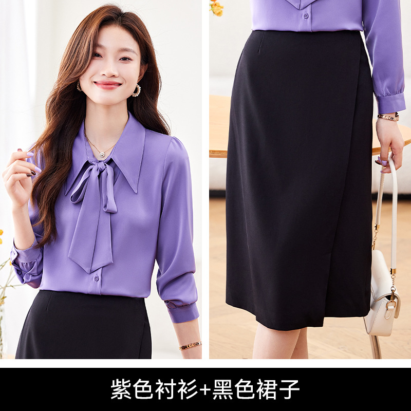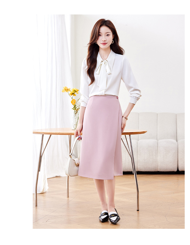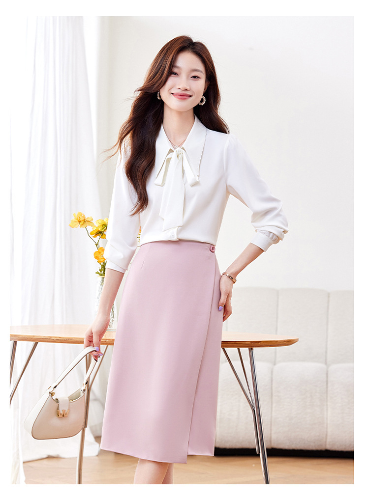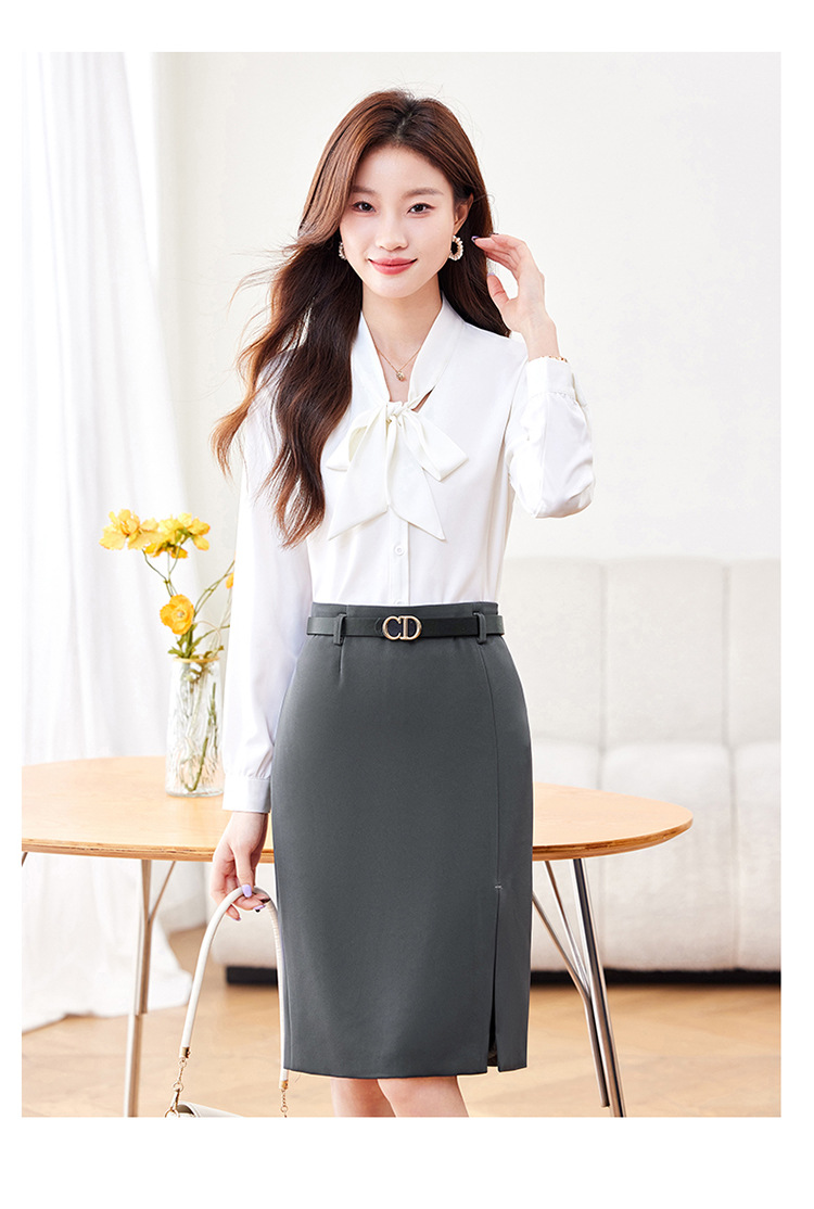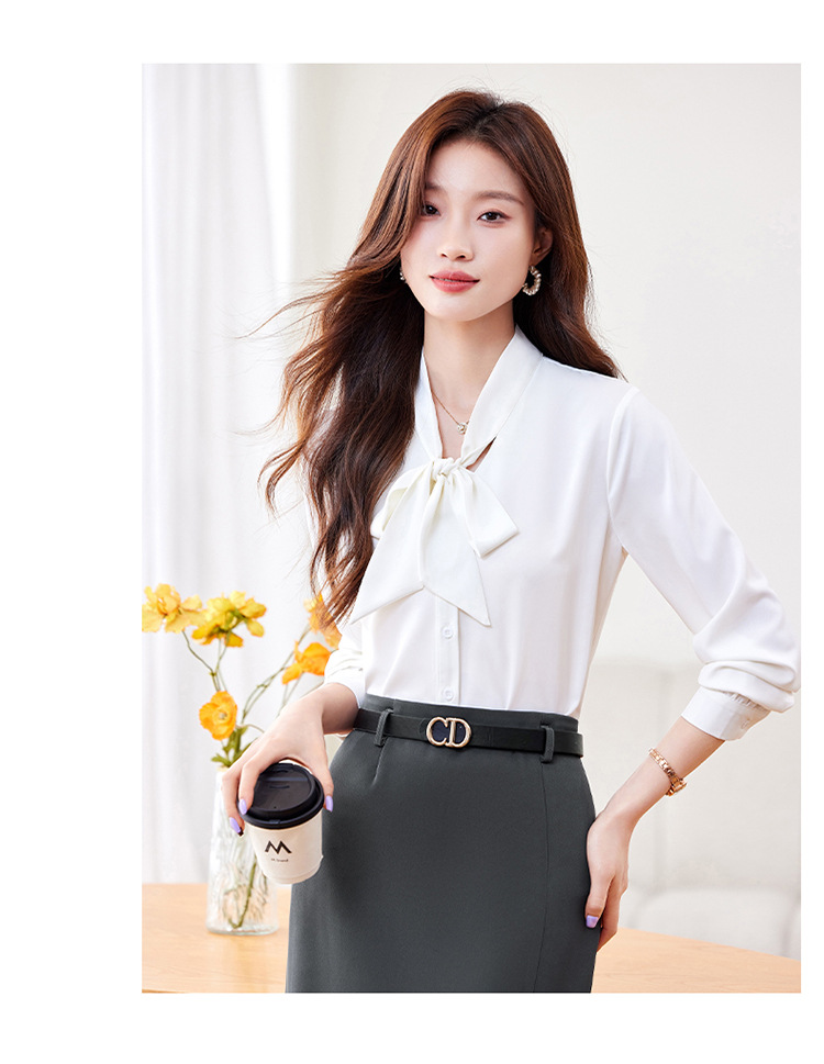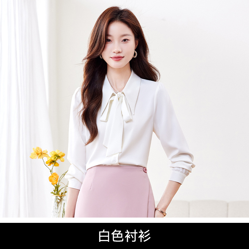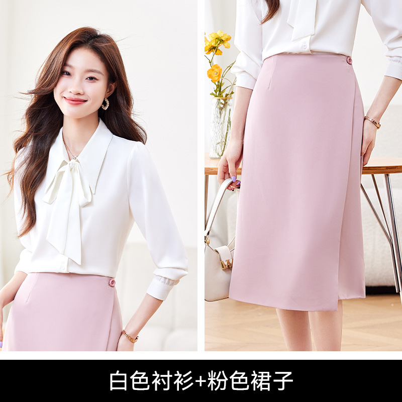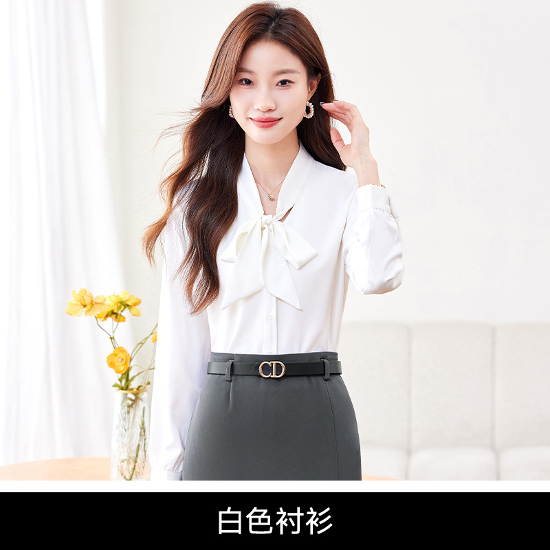 화이트 넥타이 원피스 셔츠 여성의 2024 새로운 전문 하이 엔드 기질 엉덩이 스커트 화이트 셔츠 탑