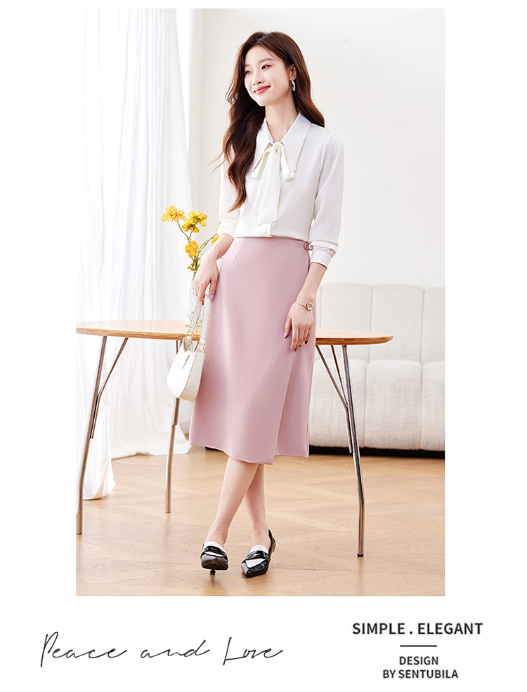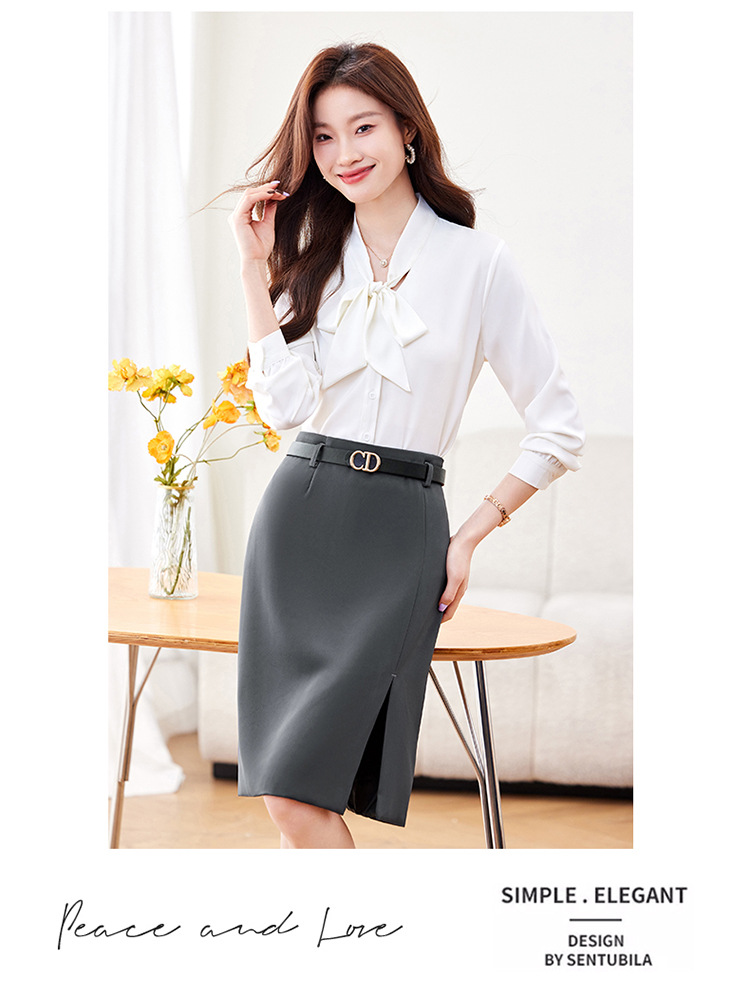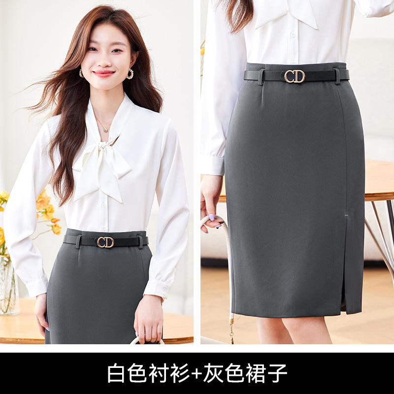 화이트 넥타이 원피스 셔츠 여성의 2024 새로운 전문 하이 엔드 기질 엉덩이 스커트 화이트 셔츠 탑스토어 가기