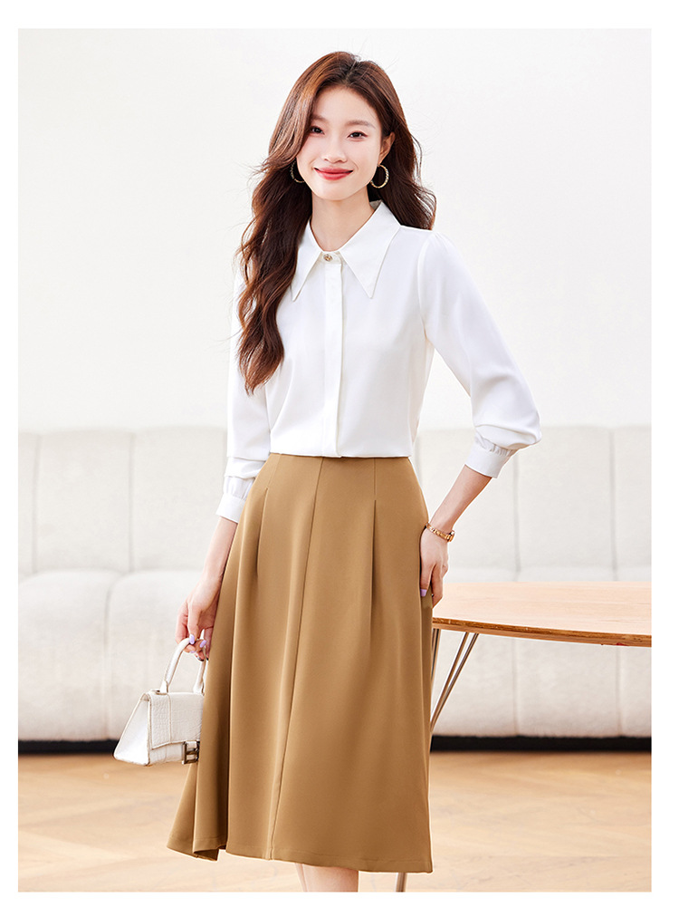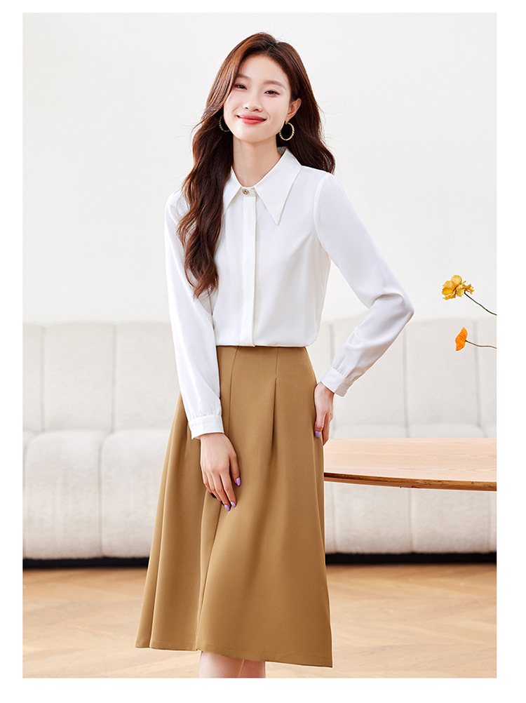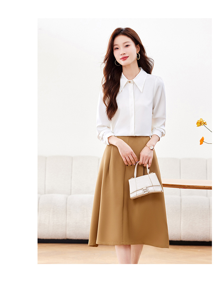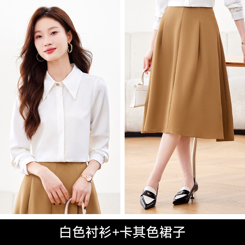 • 화이트 2201 셔츠 + 카키 701 스커트