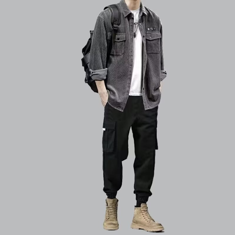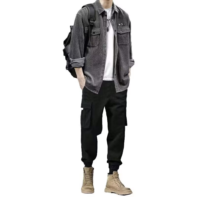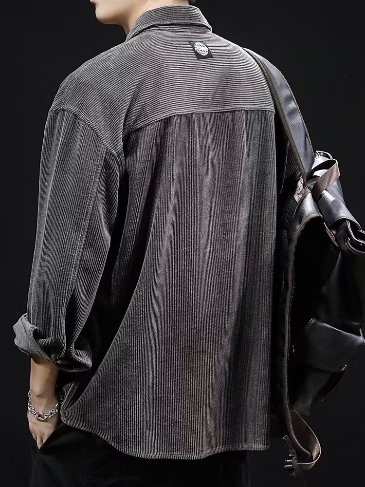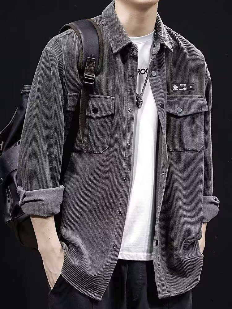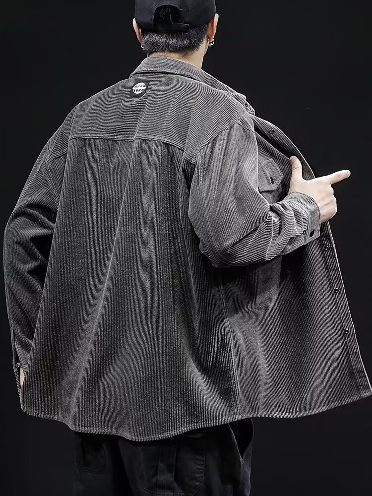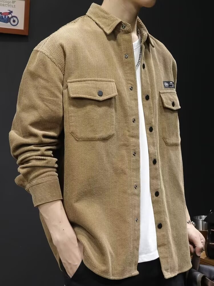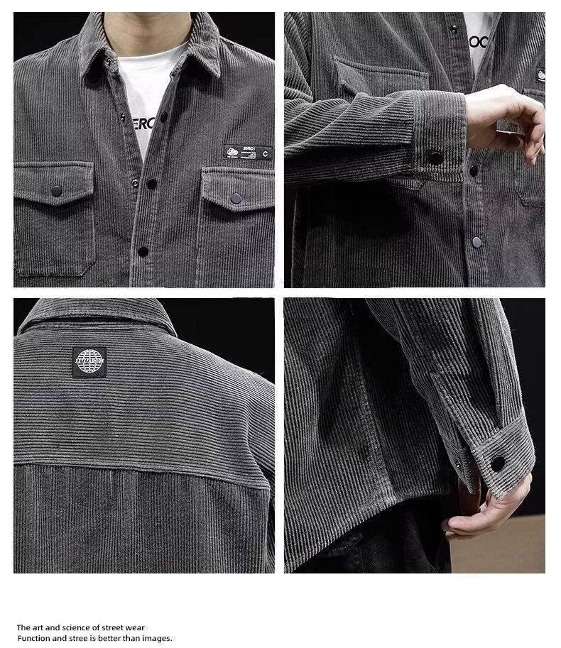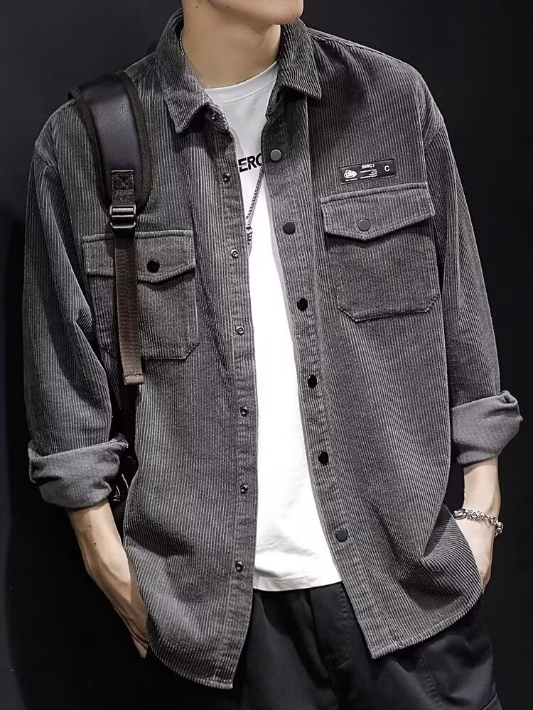 봄과 가을 틈새 코듀로이 셔츠 재킷 남성용 카디건 트렌디 브랜드 디자인 센스 옷깃 크록 셔츠 긴 소매 재킷