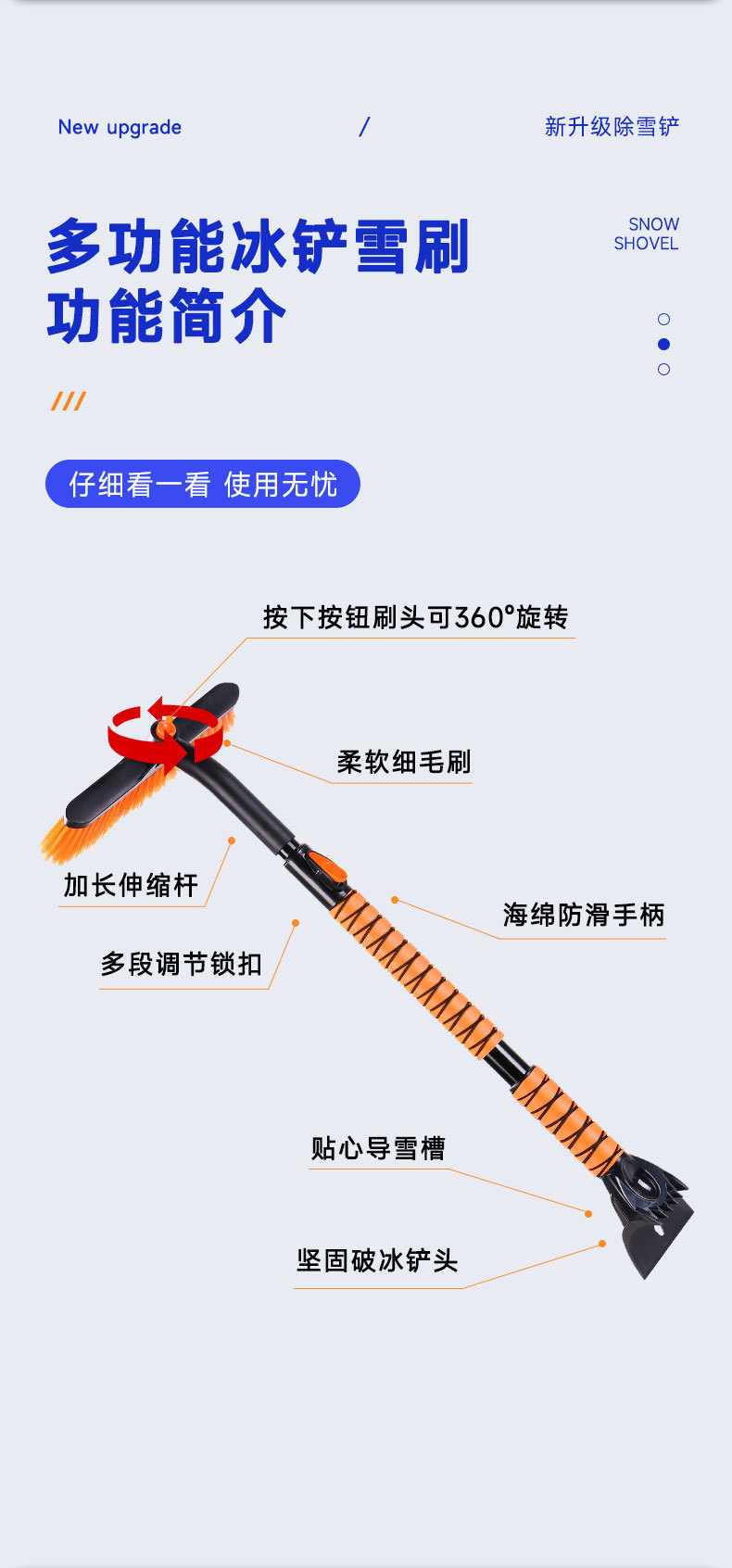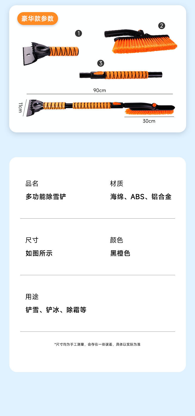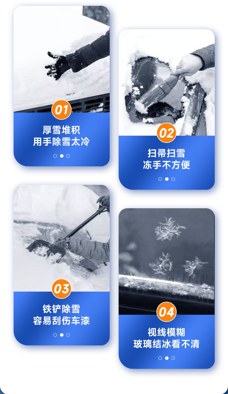 ●除了可以去除汽车上的雪和霜之外,还可以扫刷电动车,自行车以及被大雪被大雪覆盖的房子,玻璃门窗等。