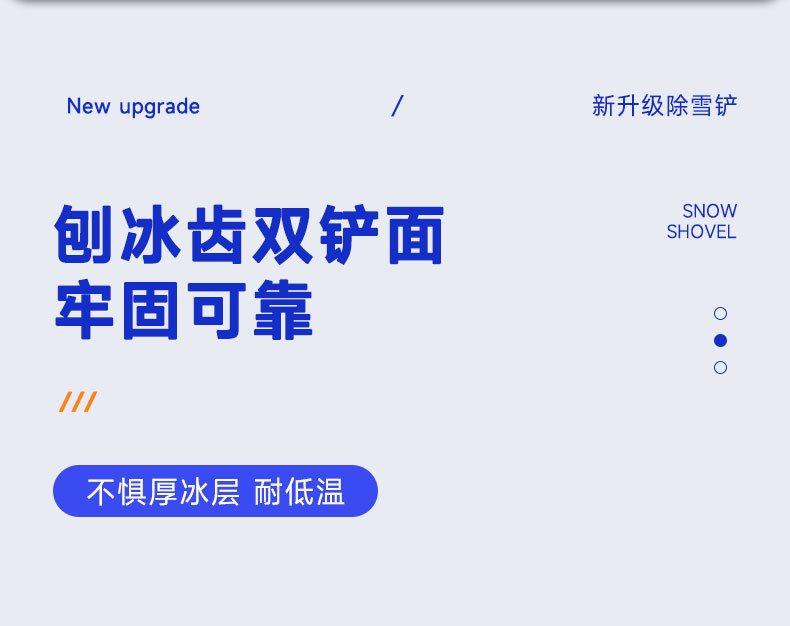 ●除雪铲头:采用ABS高强度塑料铸造成形,坚硬牢固