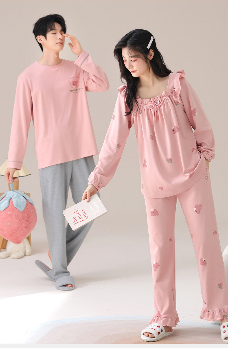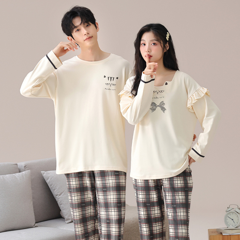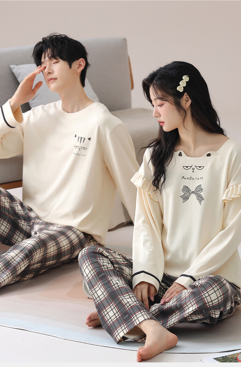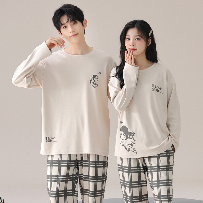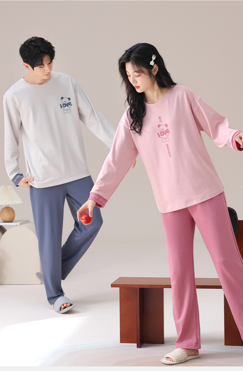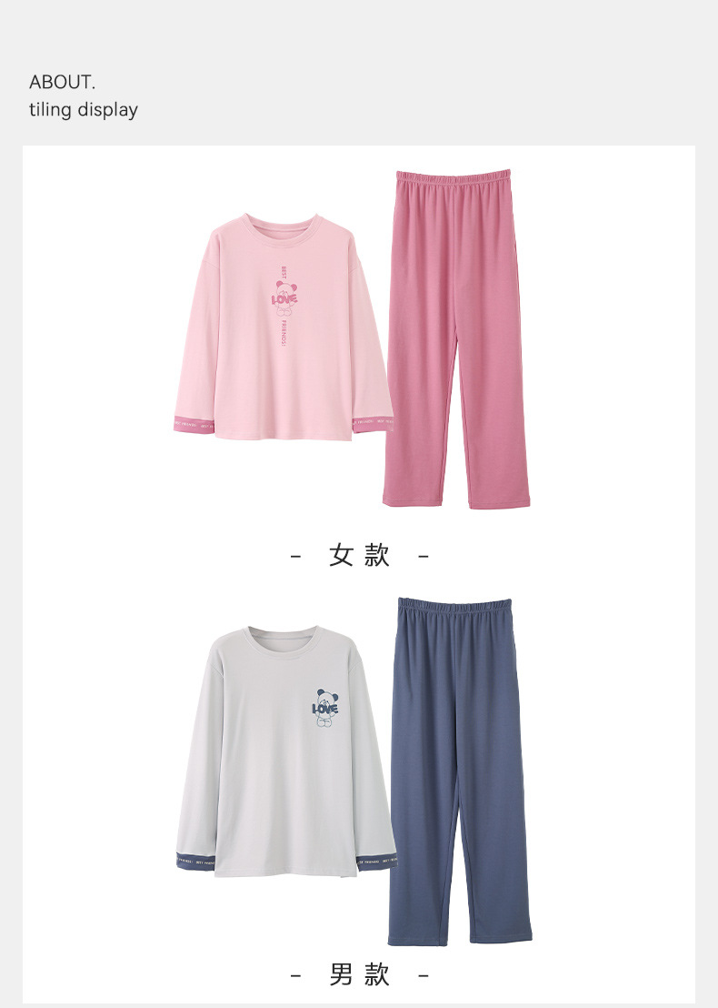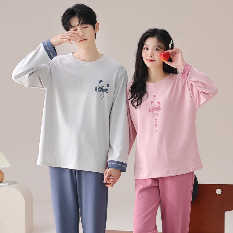 가을 커플 잠옷 여성면 풀오버 긴 소매 세트 둥근 목 봄과 가을 캐주얼 만화 면 남성 홈 옷스토어 가기