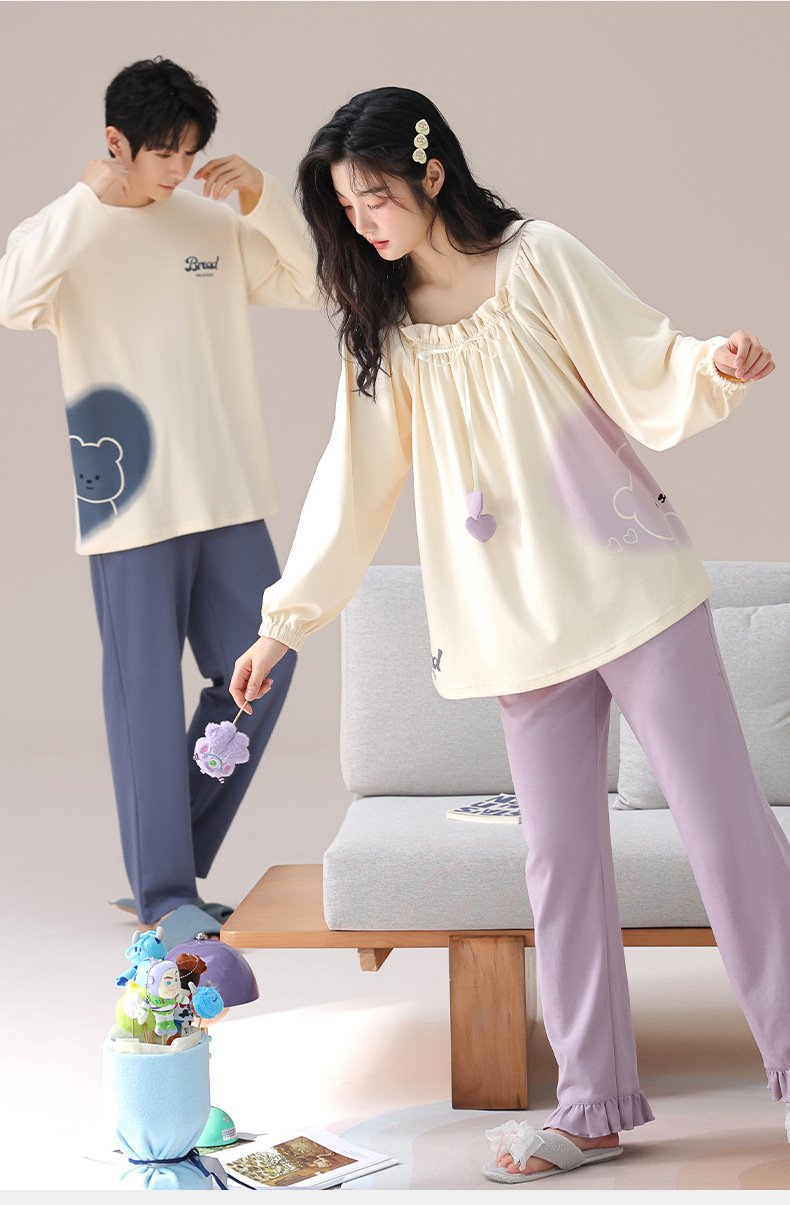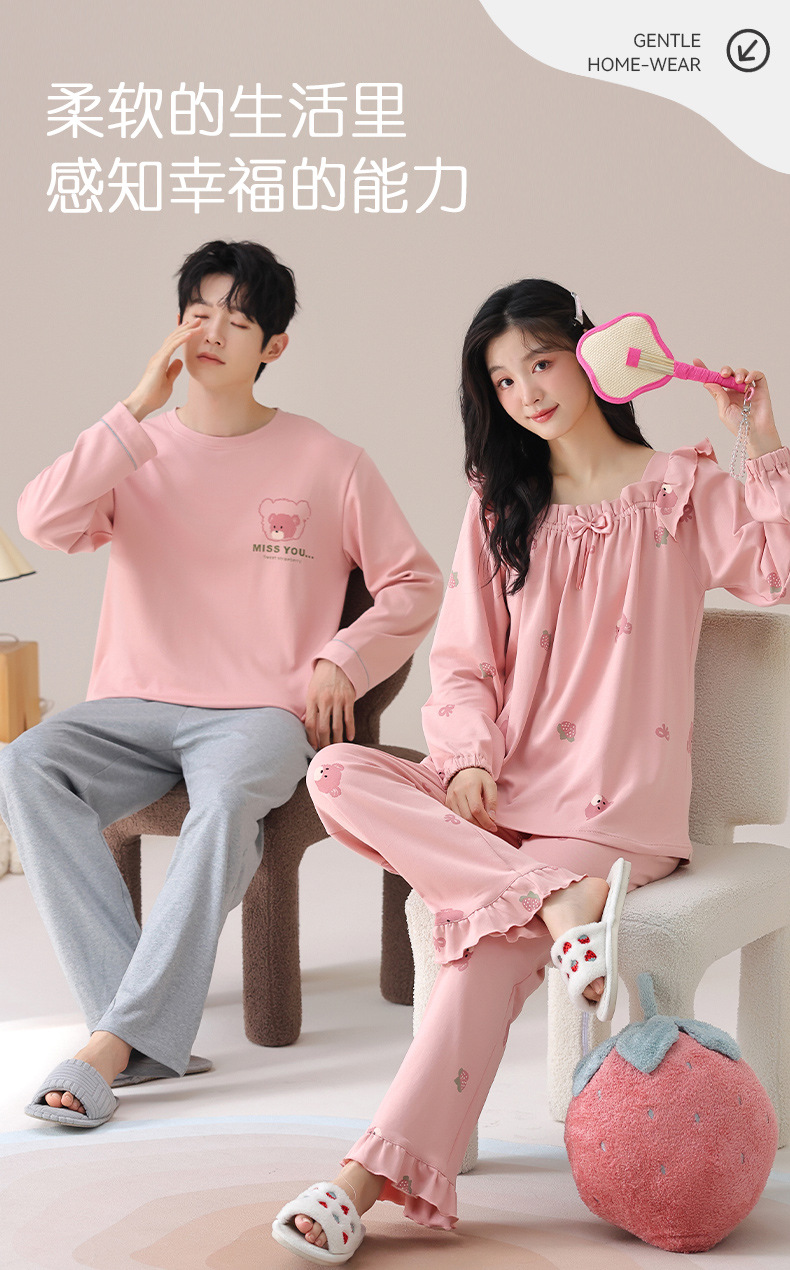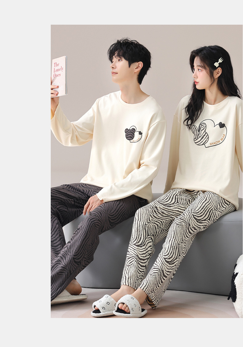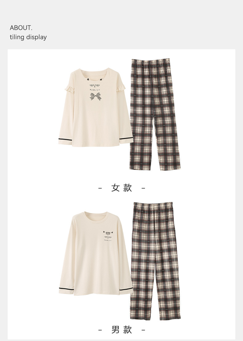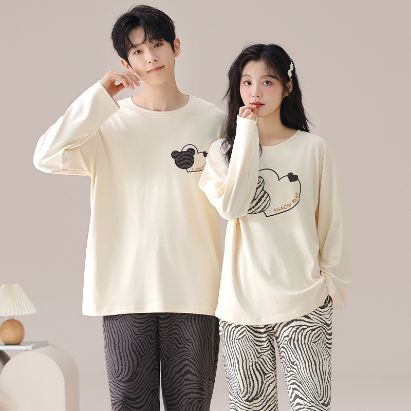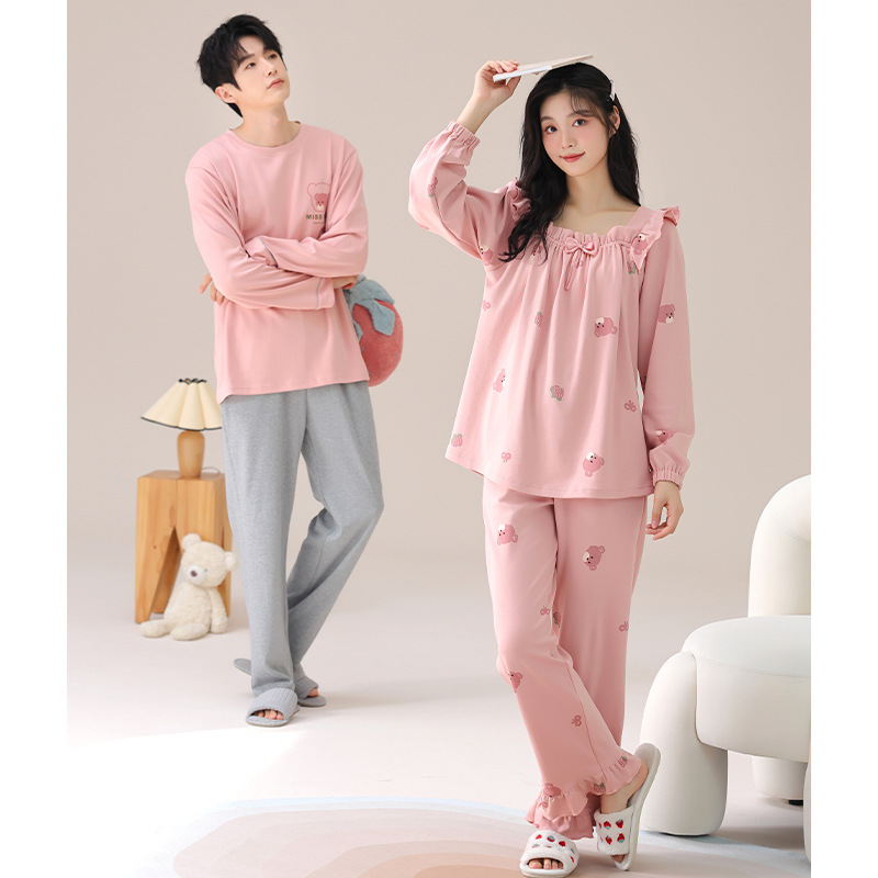 가을 커플 잠옷 여성면 풀오버 긴 소매 세트 둥근 목 봄과 가을 캐주얼 만화 면 남성 홈 옷스토어 가기
