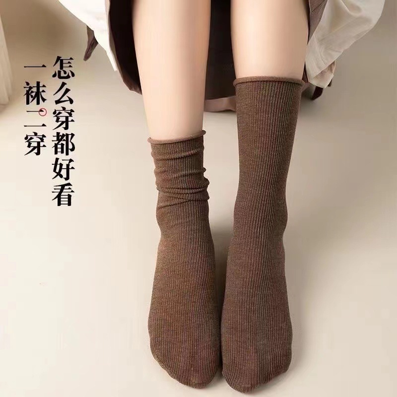 가을과 겨울 중간 배럴 수직 줄무늬 양말 여자의 올매치 모양의 뼈없는 양말 따뜻한 통기성 비 냄새 발 줄무늬 양말