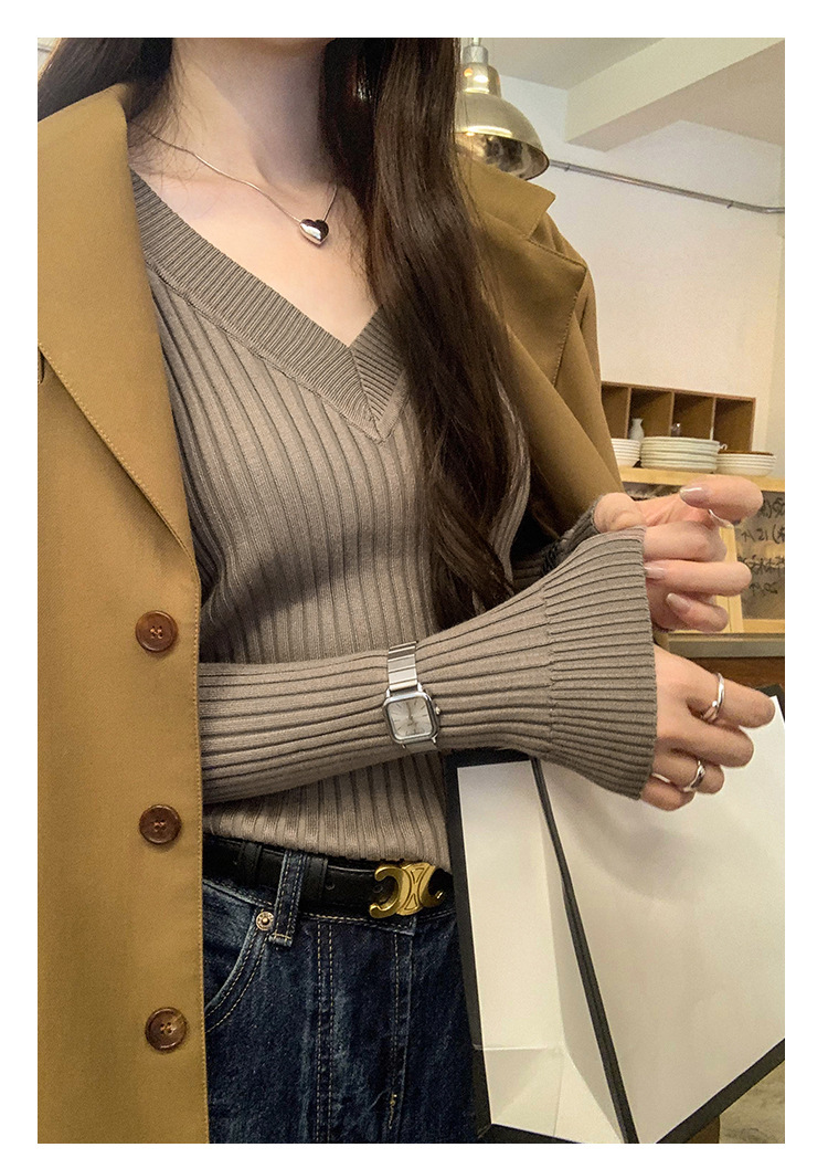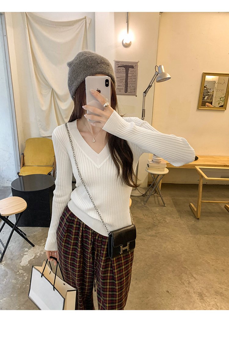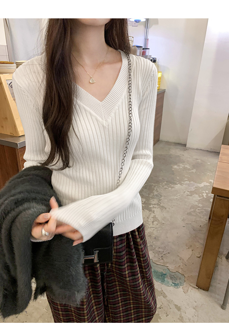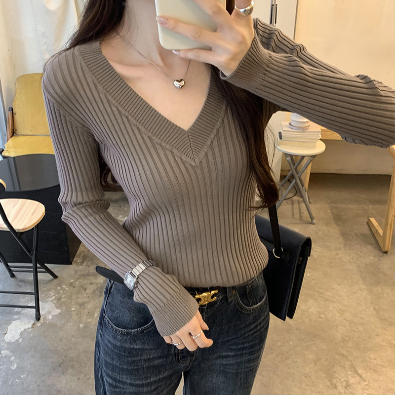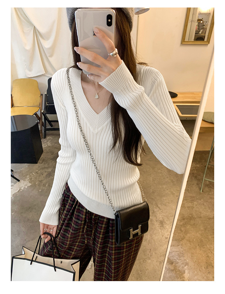 한국식 하이 엔드 슬림 핏 안티 스트립 V 넥 보텀 스웨터 여성 가을 겨울 2024 뉴 핑크 탑스토어 가기