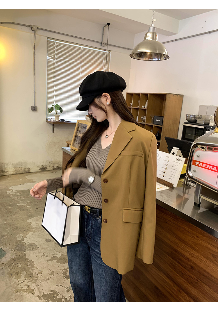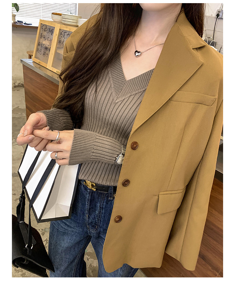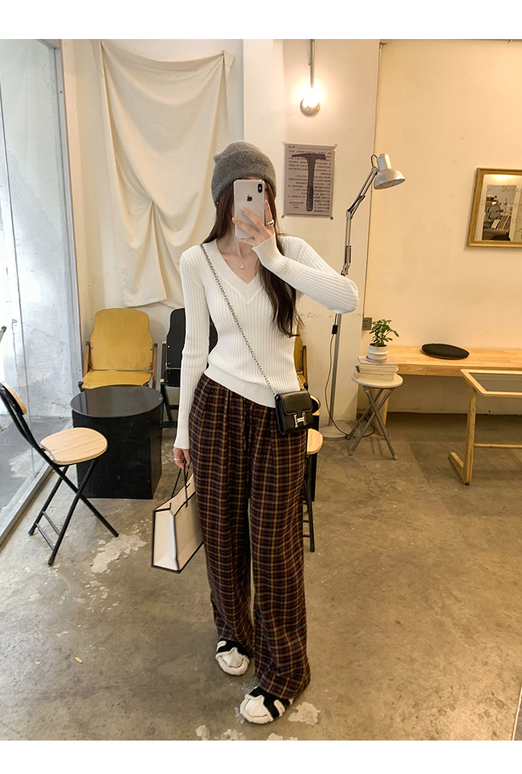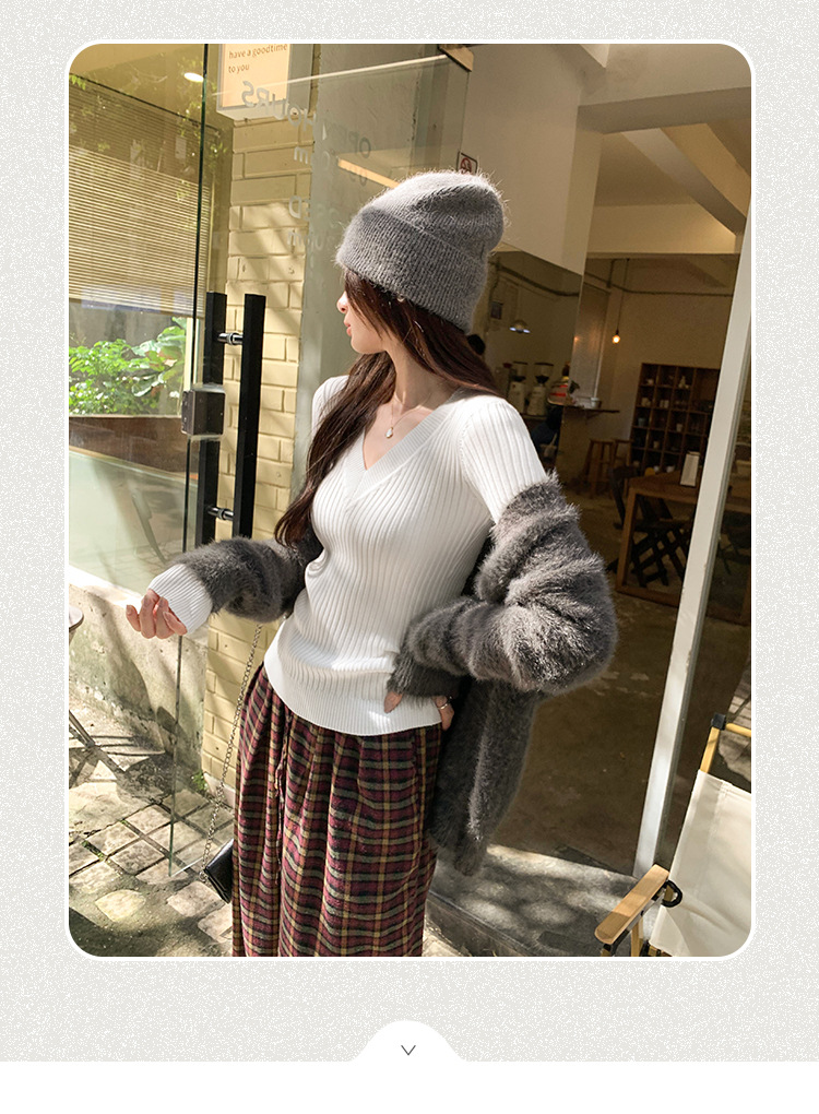 한국식 하이 엔드 슬림 핏 안티 스트립 V 넥 보텀 스웨터 여성 가을 겨울 2024 뉴 핑크 탑스토어 가기