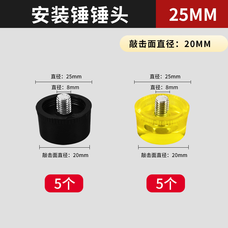 • 25mm 검정색 5개 및 노란색 해머 헤드 5개