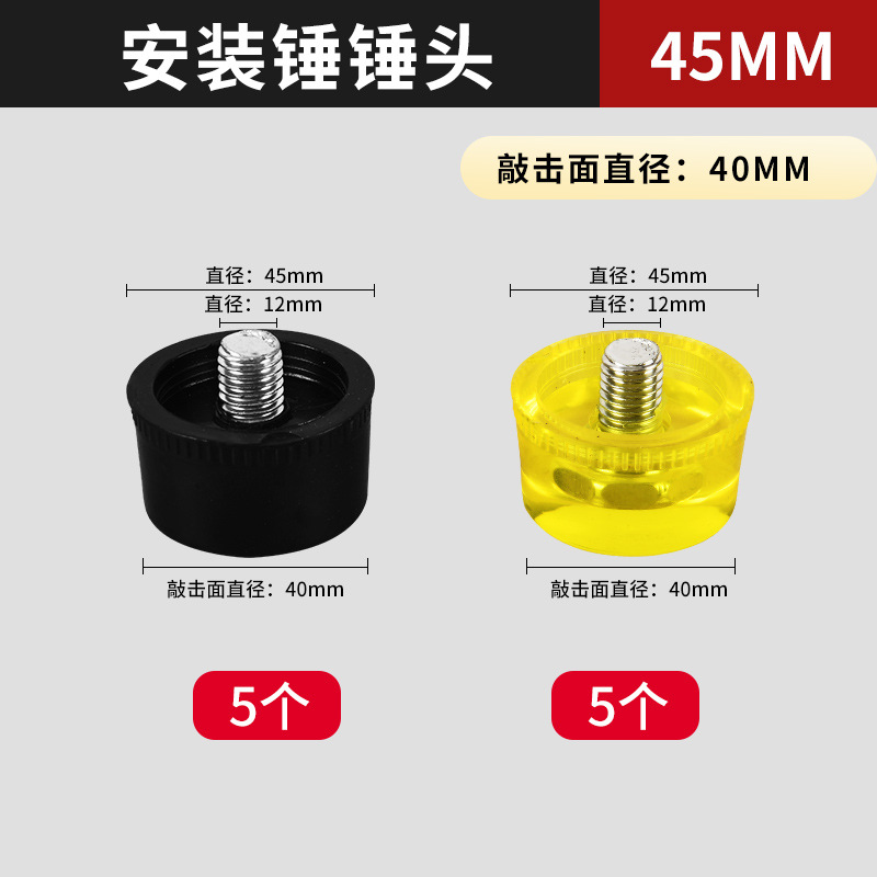 • 45mm 검정색 5개 및 노란색 해머 헤드 5개