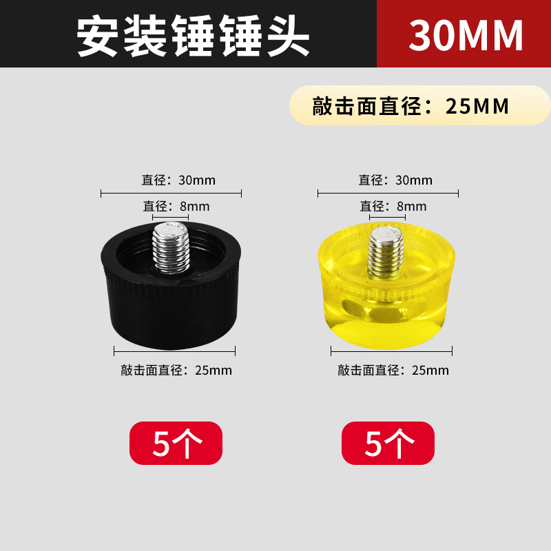 • 30mm 검정색 5개 및 노란색 해머 헤드 5개