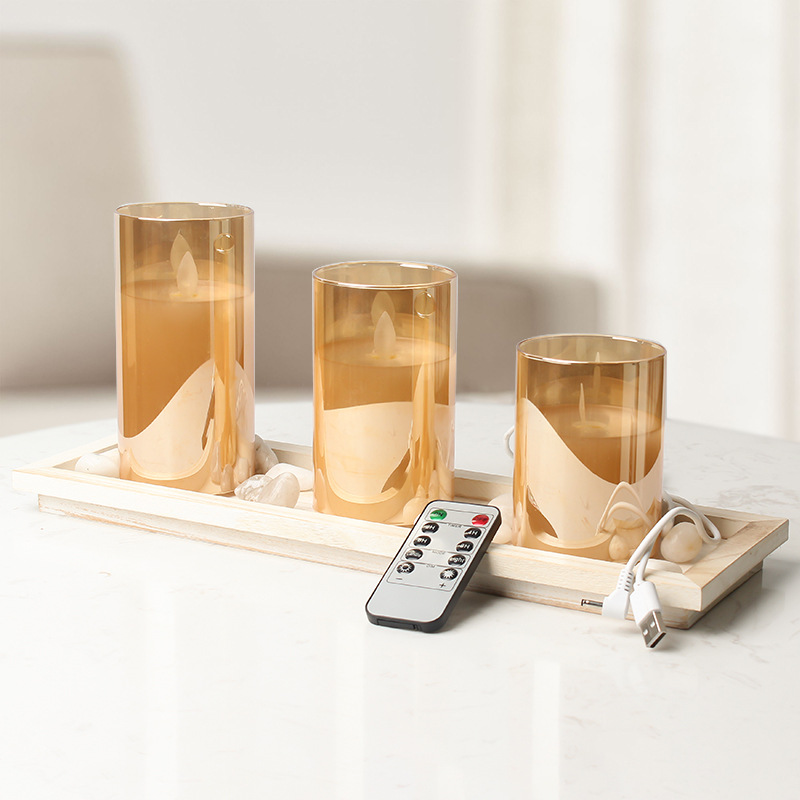 Taibao 낭만적 인 장식품 전자 양초 원격 제어 밀 양초 촛불 촛불 저녁 식사 소품 led 조명 스윙 유리