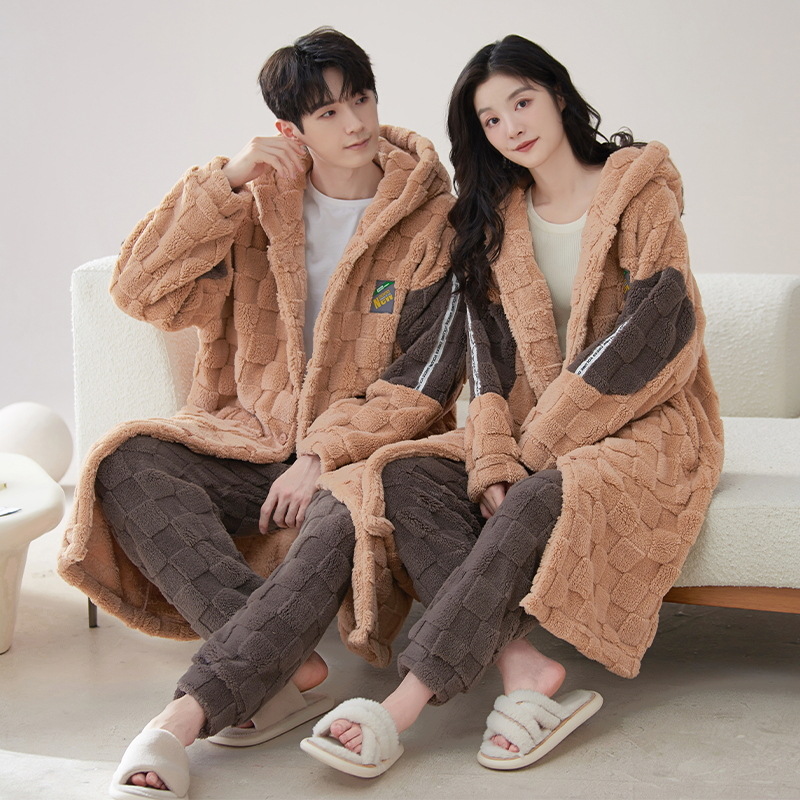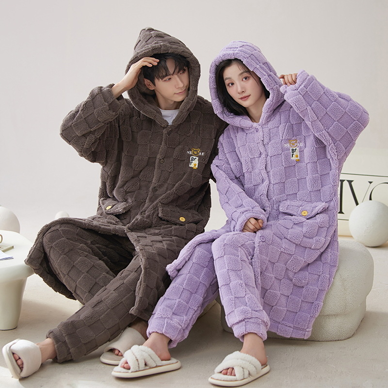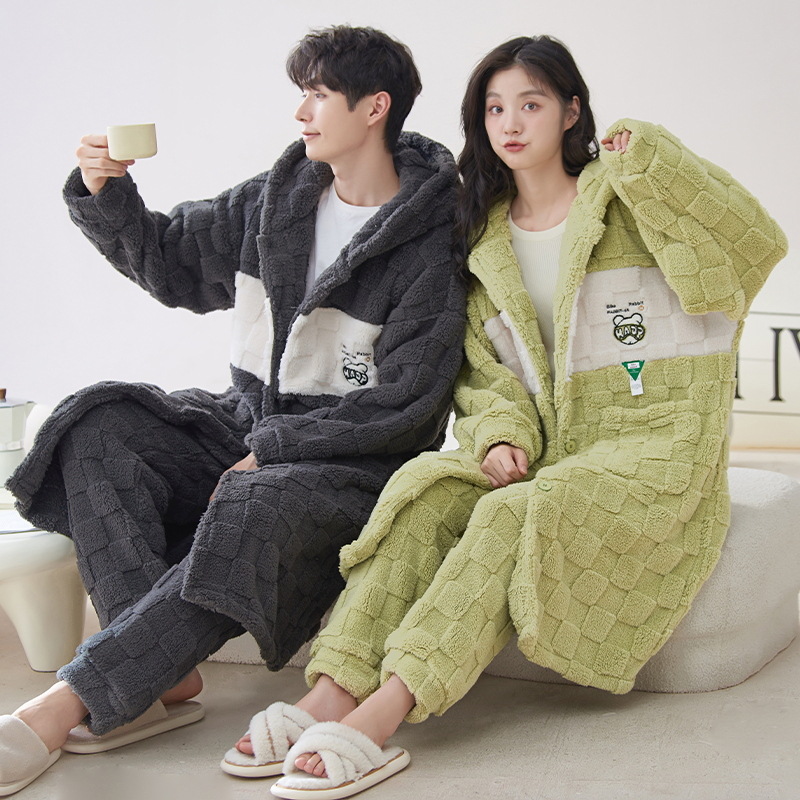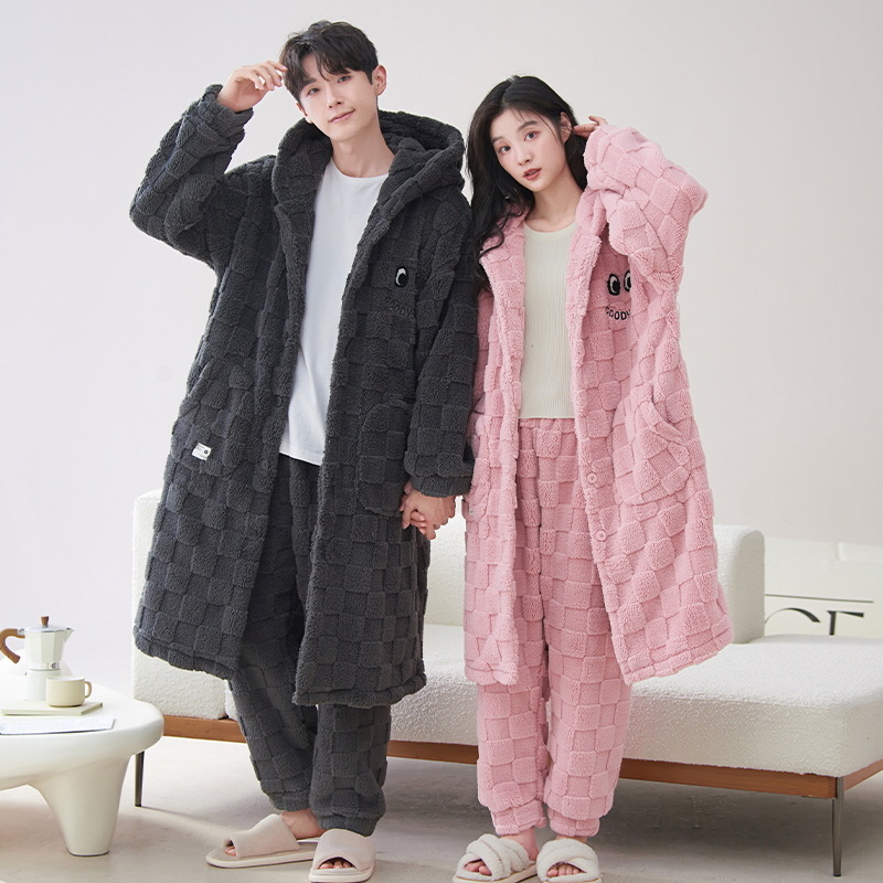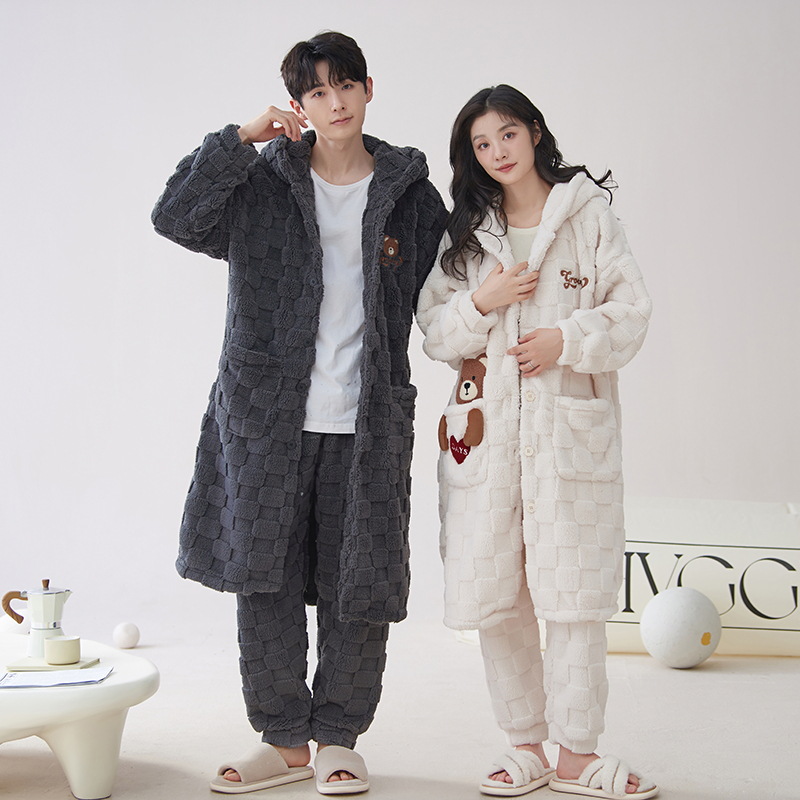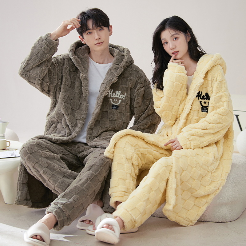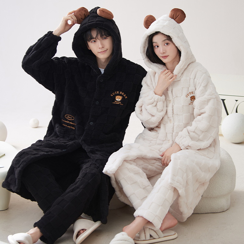 사슴 시간 플란넬 커플 나이트가운 여성의 겨울 산호 양털 파자마 겨울 남자 기모 두꺼운 홈 의류 세트