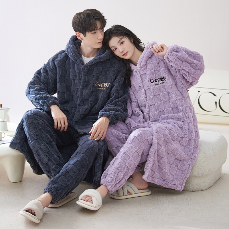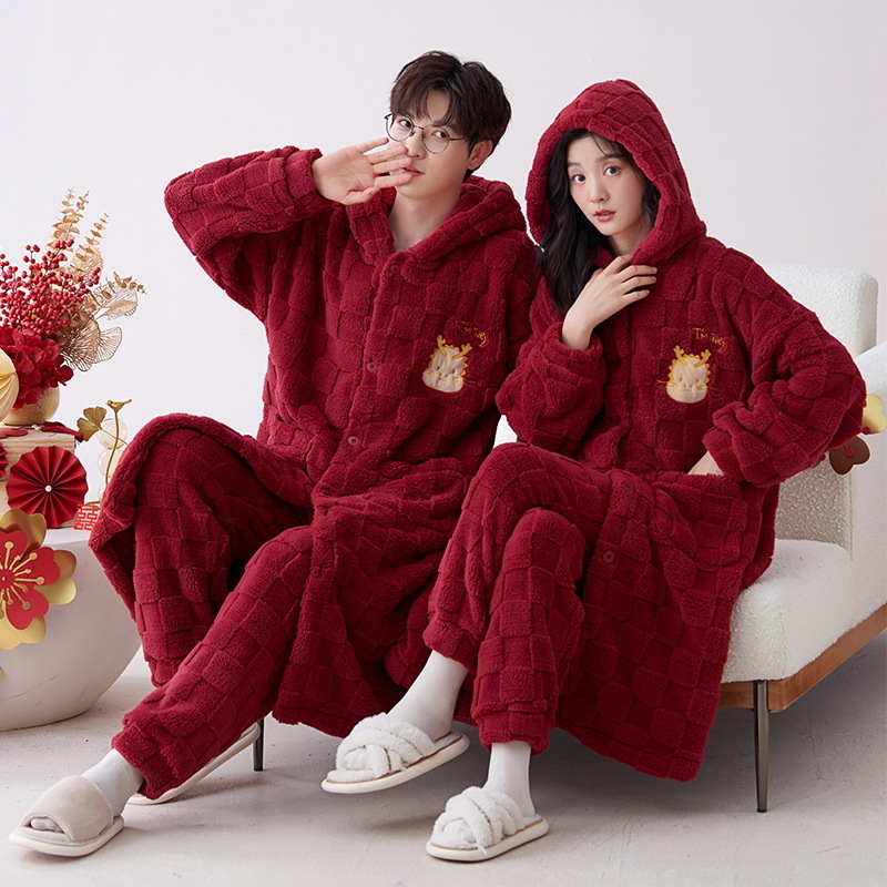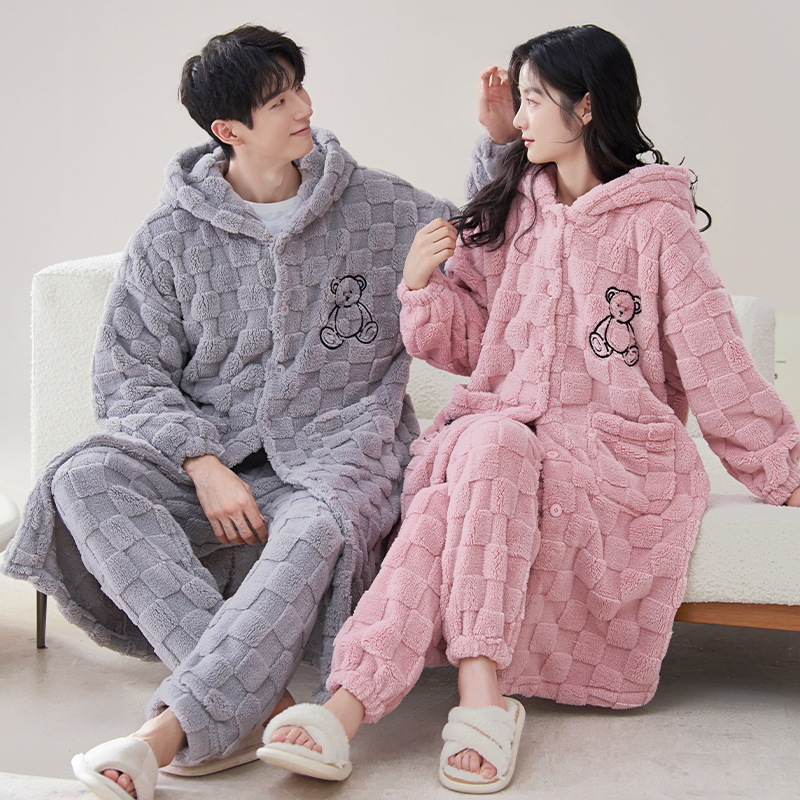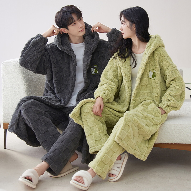 사슴 시간 플란넬 커플 나이트가운 여성의 겨울 산호 양털 파자마 겨울 남자 기모 두꺼운 홈 의류 세트스토어 가기