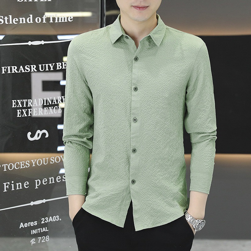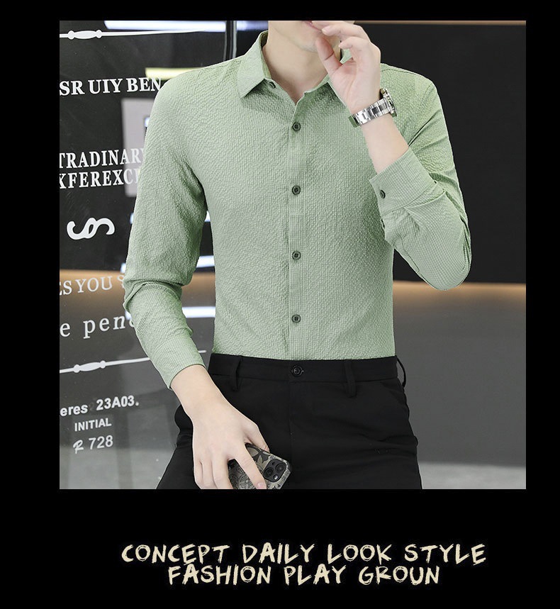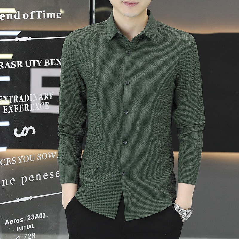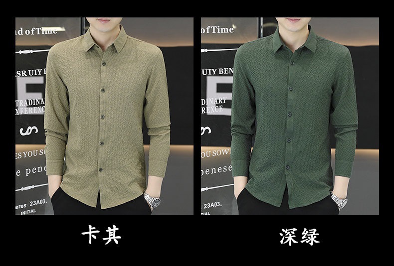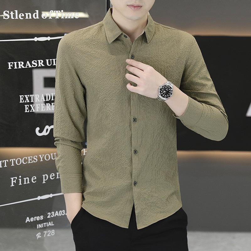 긴팔 셔츠 남자의 가을 패션 슬림 다재다능한 단색 셔츠 2024 새로운 봄과 가을 캐주얼 인치 셔츠 남성스토어 가기