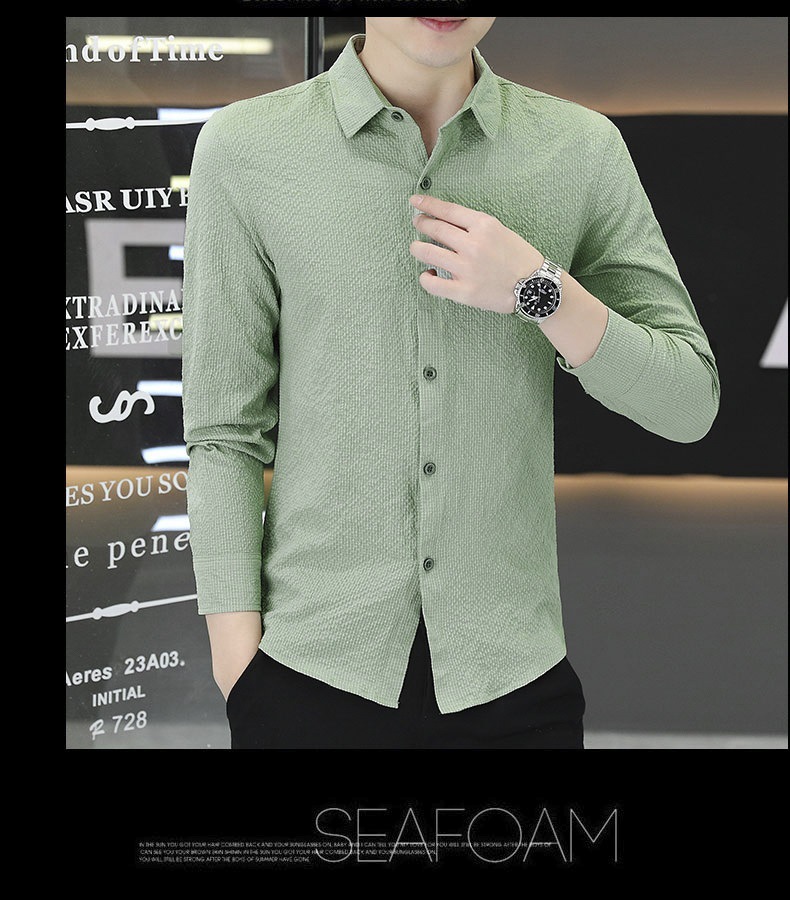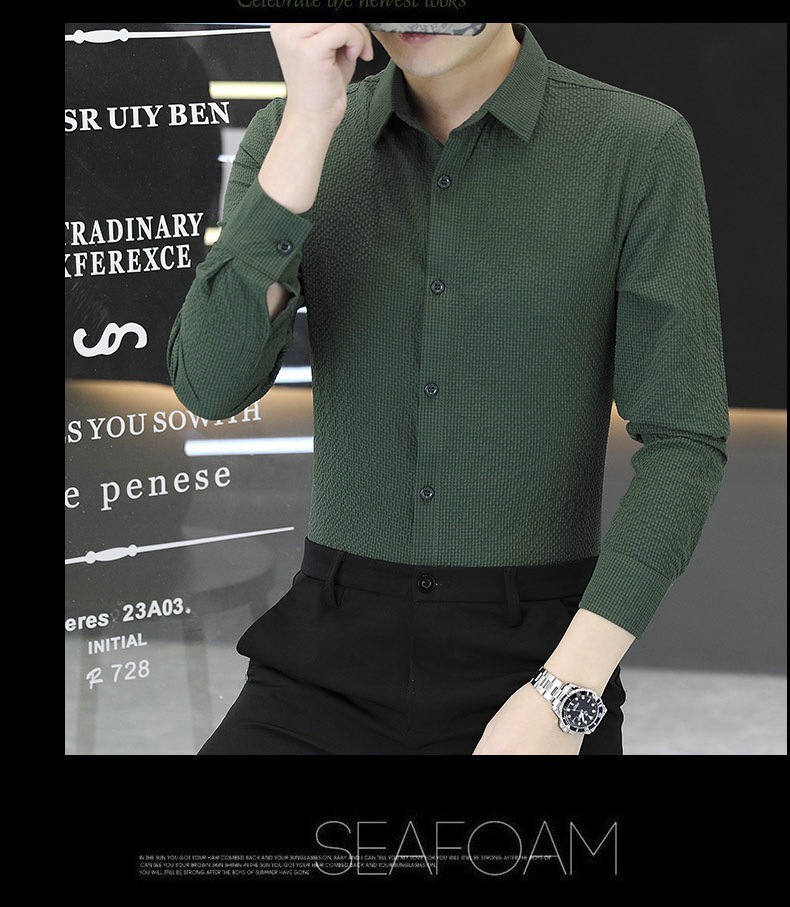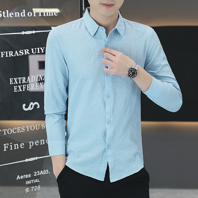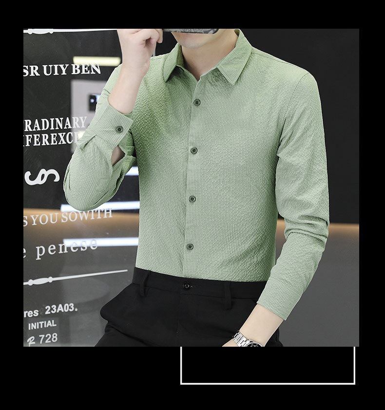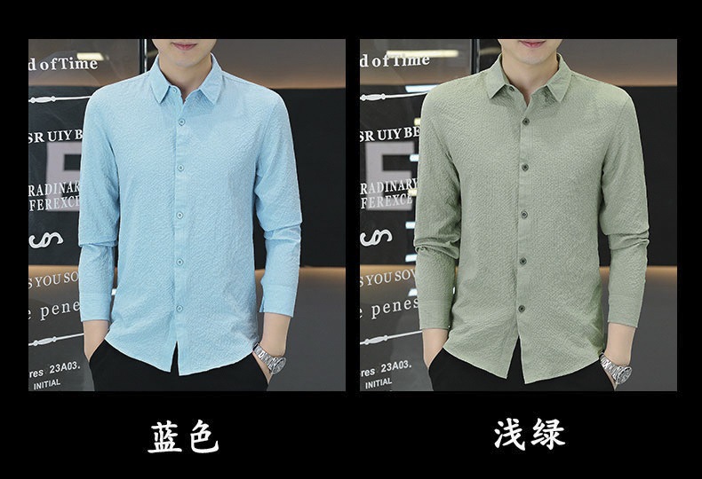 긴팔 셔츠 남자의 가을 패션 슬림 다재다능한 단색 셔츠 2024 새로운 봄과 가을 캐주얼 인치 셔츠 남성스토어 가기