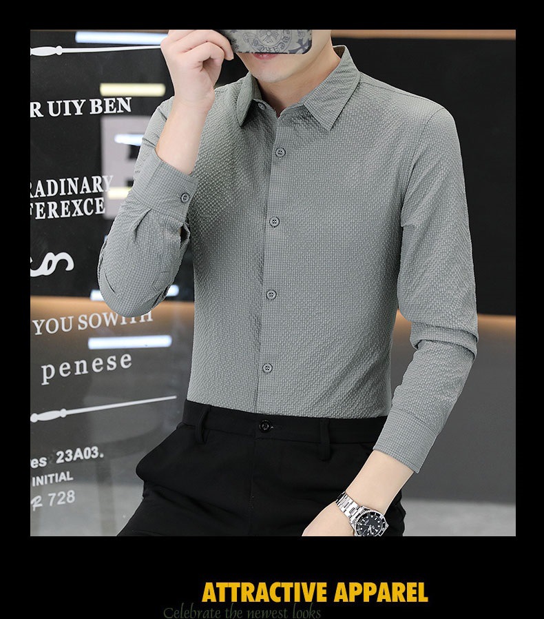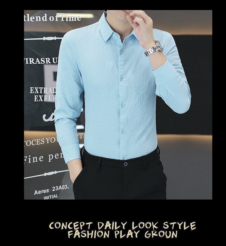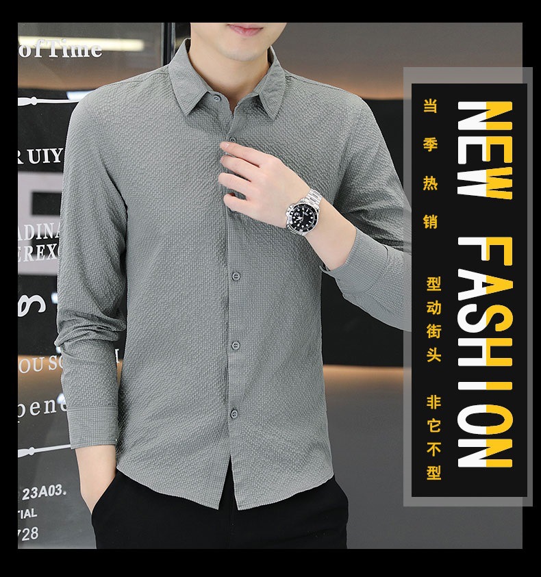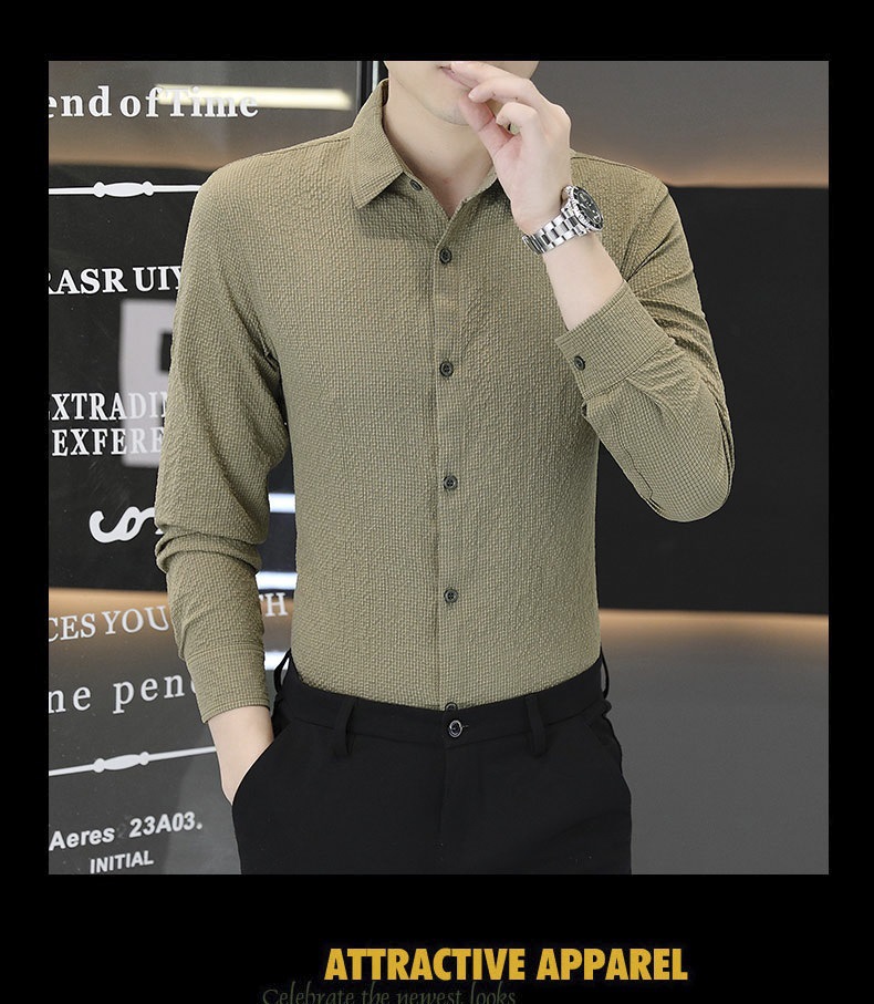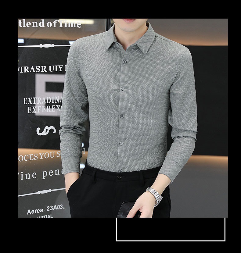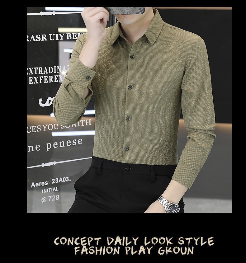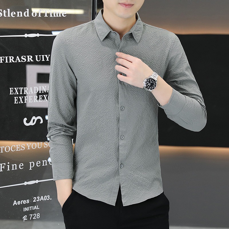 긴팔 셔츠 남자의 가을 패션 슬림 다재다능한 단색 셔츠 2024 새로운 봄과 가을 캐주얼 인치 셔츠 남성