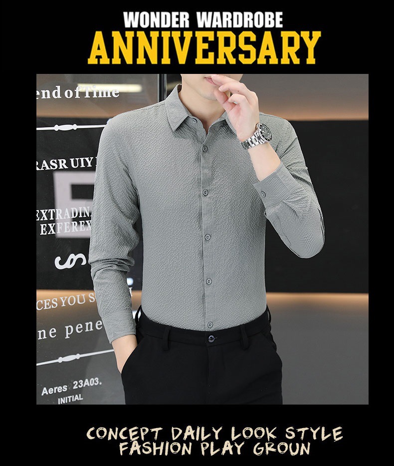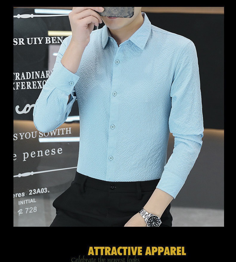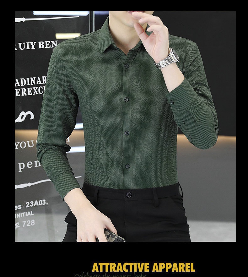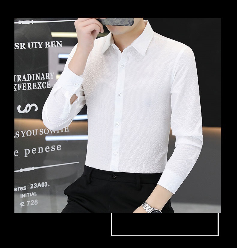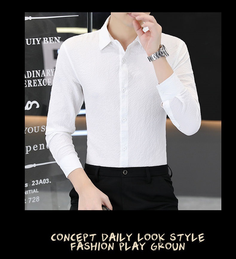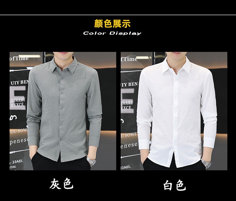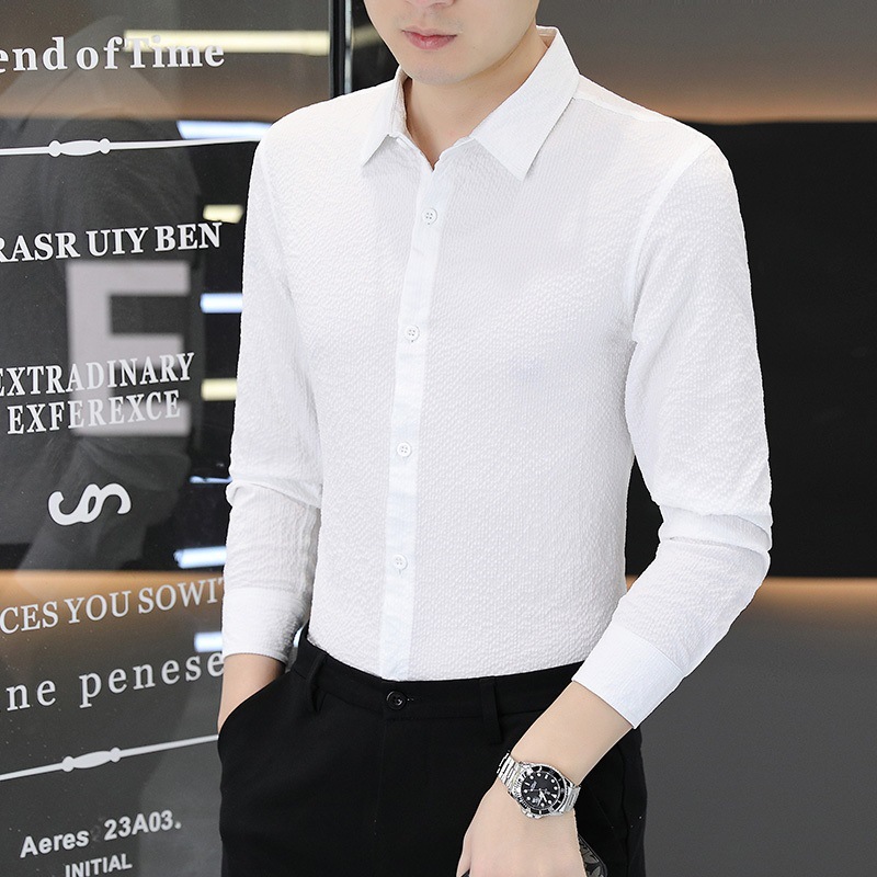 긴팔 셔츠 남자의 가을 패션 슬림 다재다능한 단색 셔츠 2024 새로운 봄과 가을 캐주얼 인치 셔츠 남성