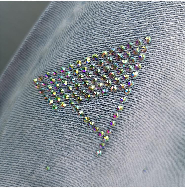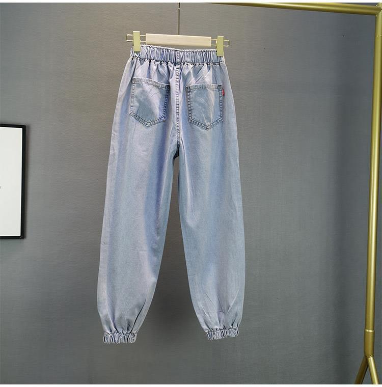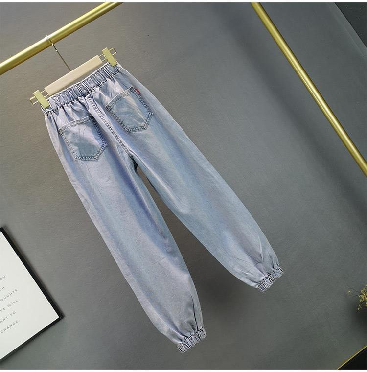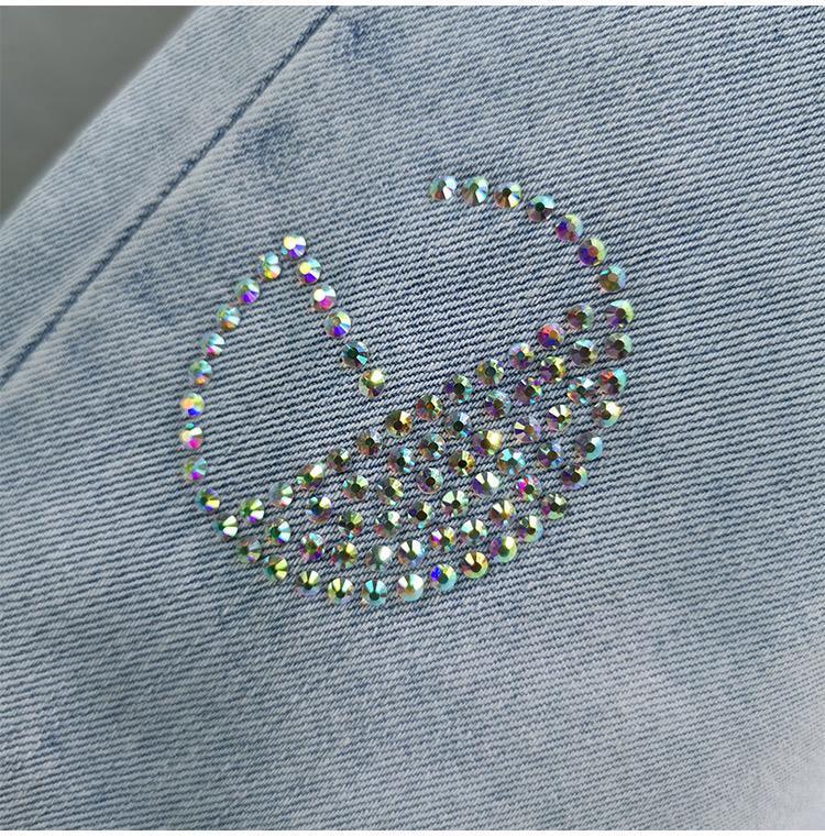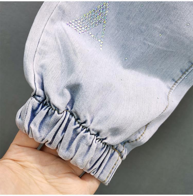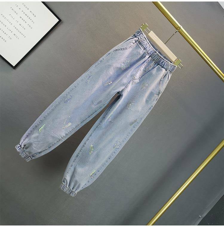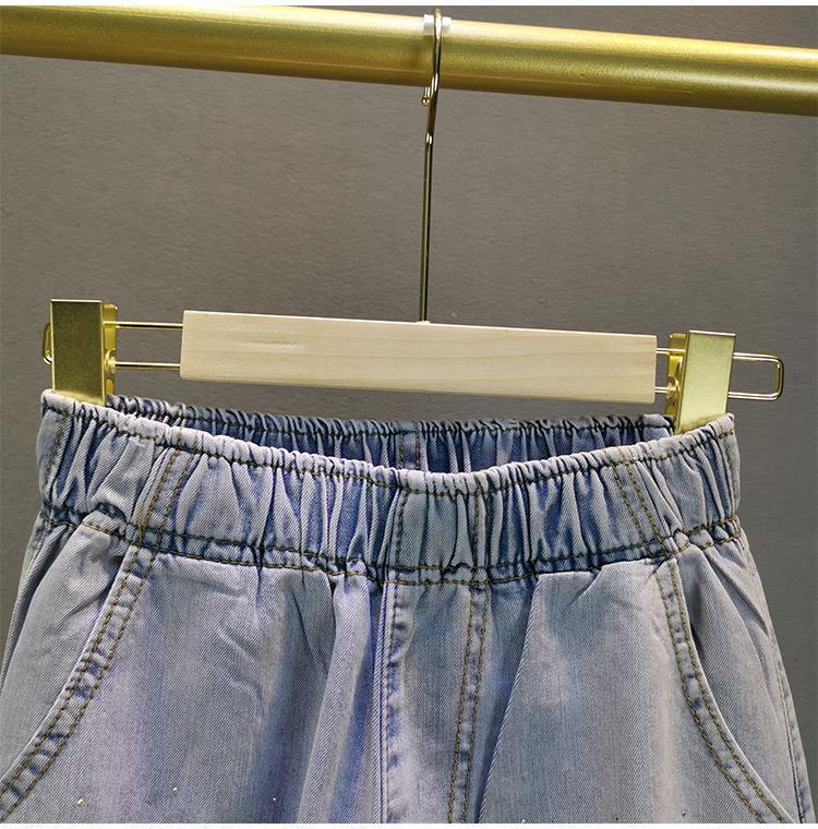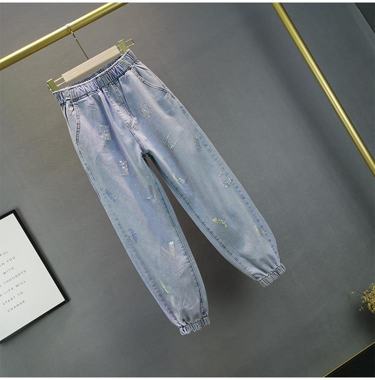 청바지 여성의 트렌디 2024 여름 새로운 도착 플러스 사이즈 유럽 역 느슨한 슬리밍 허리 컬러 핫 라인스톤 터프 바지스토어 가기