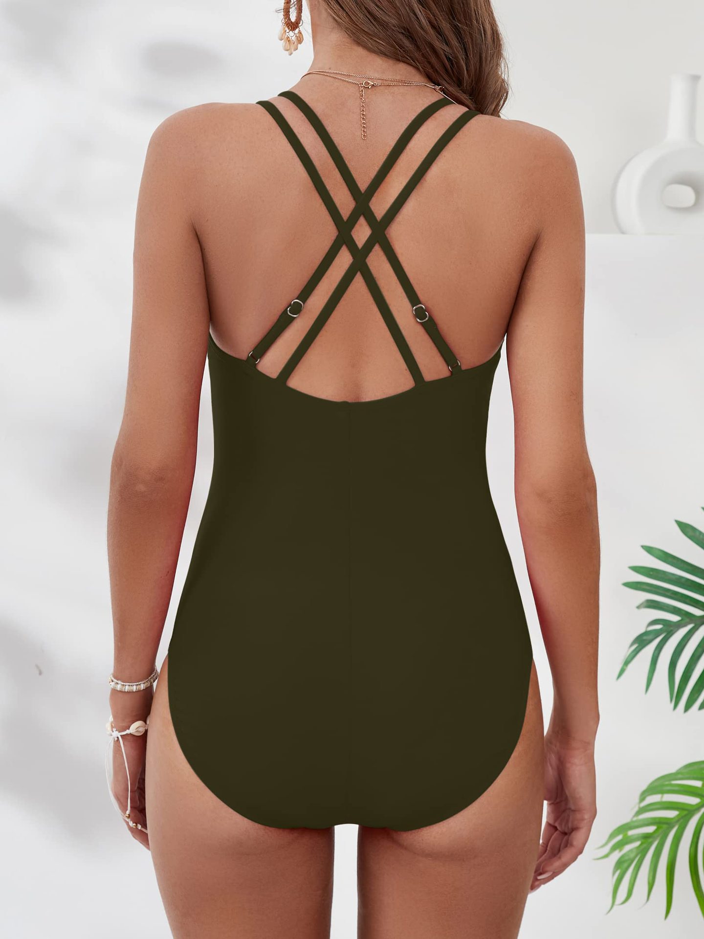 유럽과 미국의 수영복 대외 무역 단색 원피스 수영복 아마존 새로운 2024 배 크로스 스트랩 크로스 보더 수영복스토어 가기